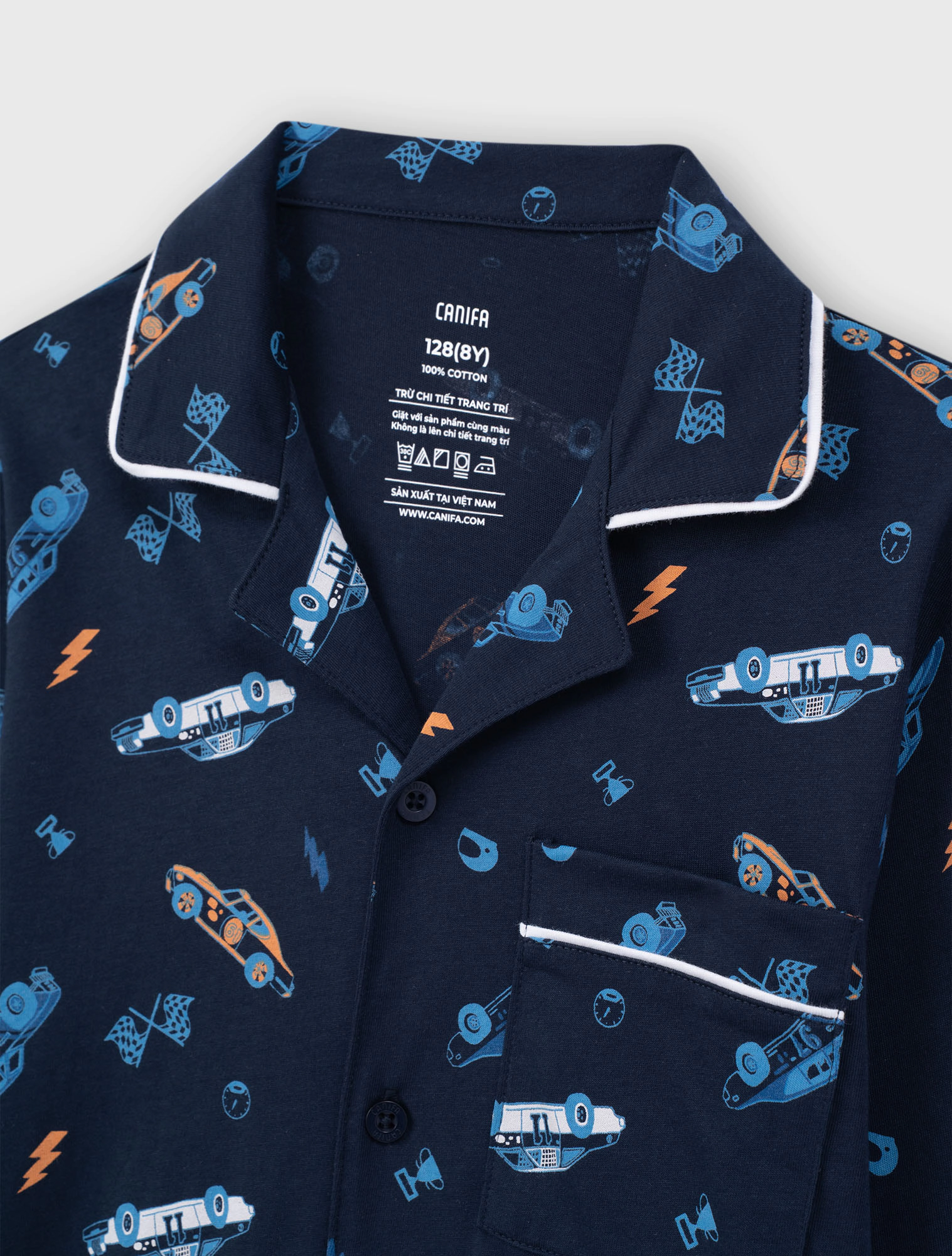 Bộ pyjama bé trai dài tay, phom dáng cơ bản, chất liệu