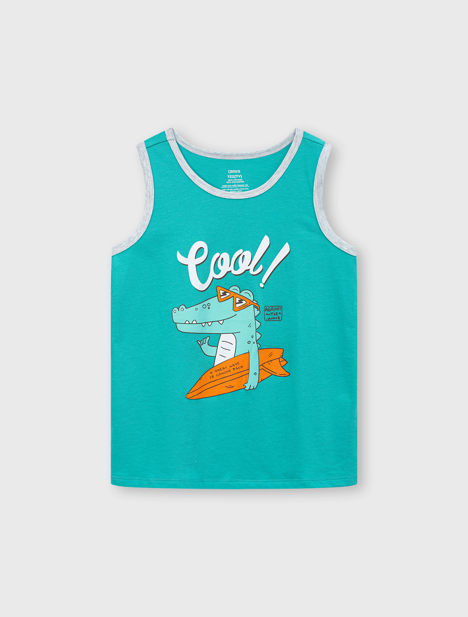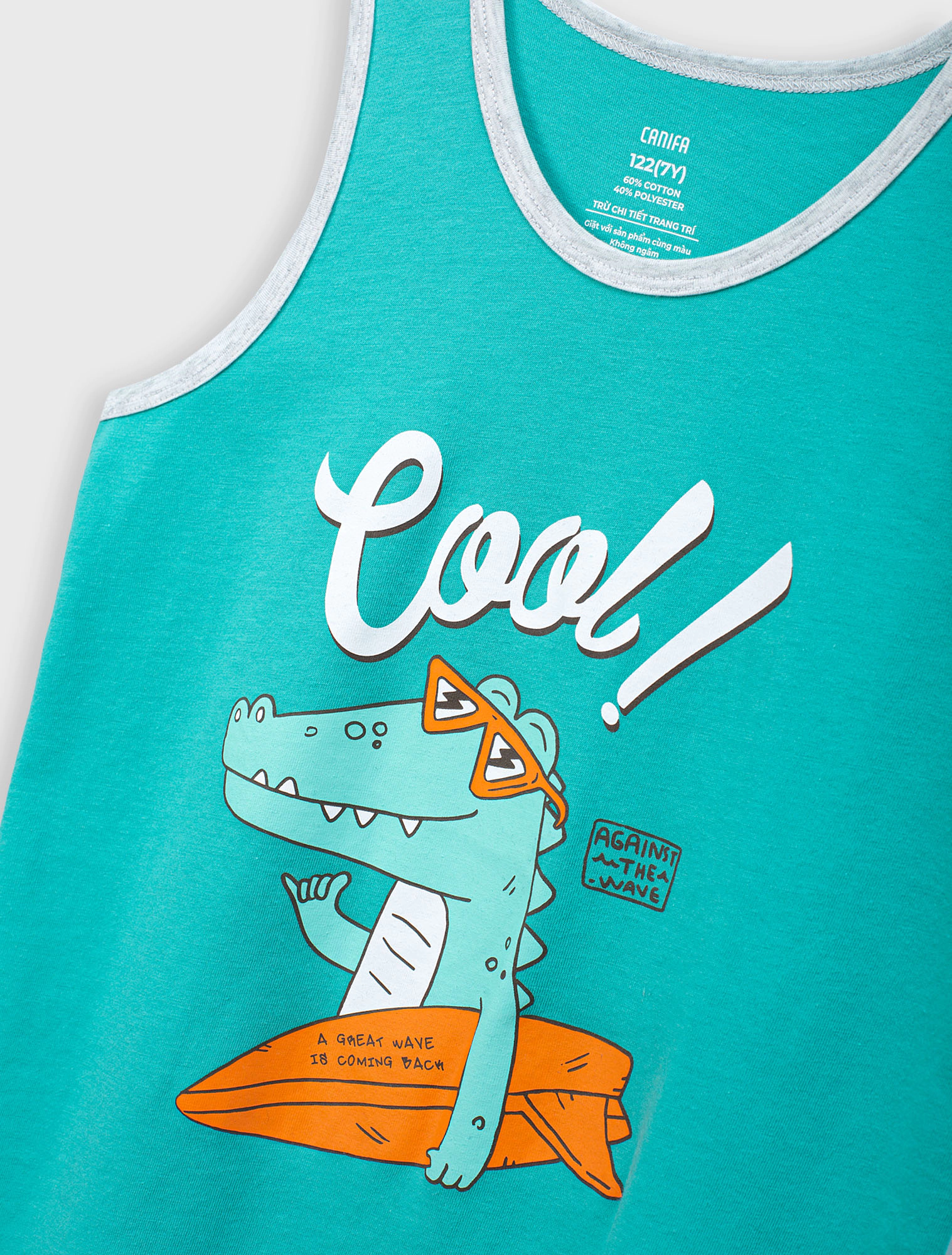 Áo ba lỗ bé trai có hình in, phom dáng basic, chất liệu Cotton pha thoáng mát, hình in đa dạng, phù hợp với sở thích của các bé.