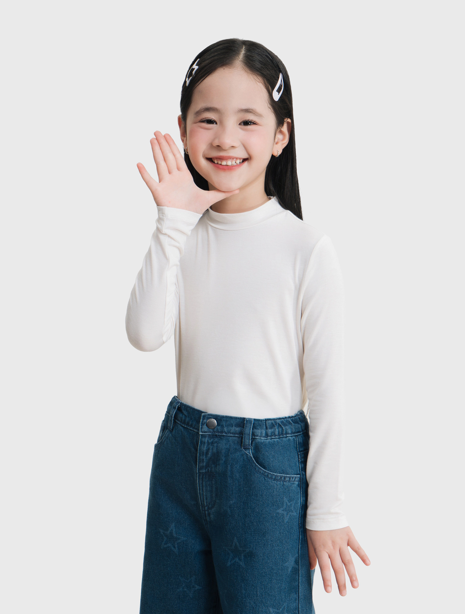 Combo 2 áo giữ nhiệt bé gái, cổ cao 3cm, phom dáng gọn gàng dễ mặc. Chất liệu mềm mại, co giãn tốt, giữ ấm tốt.