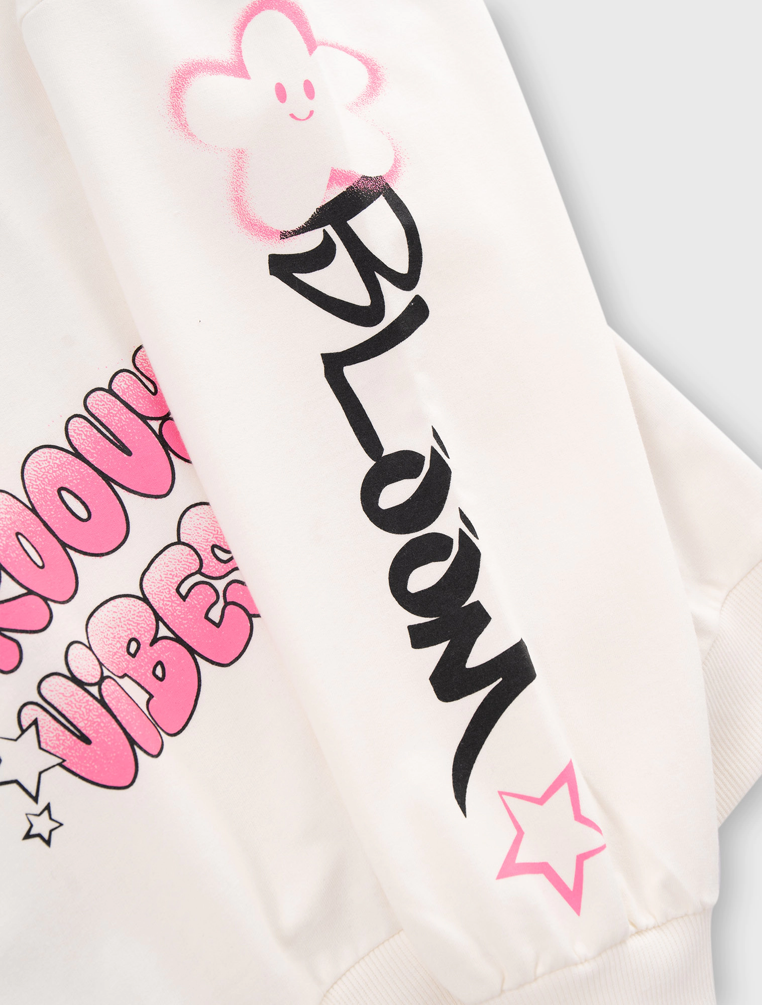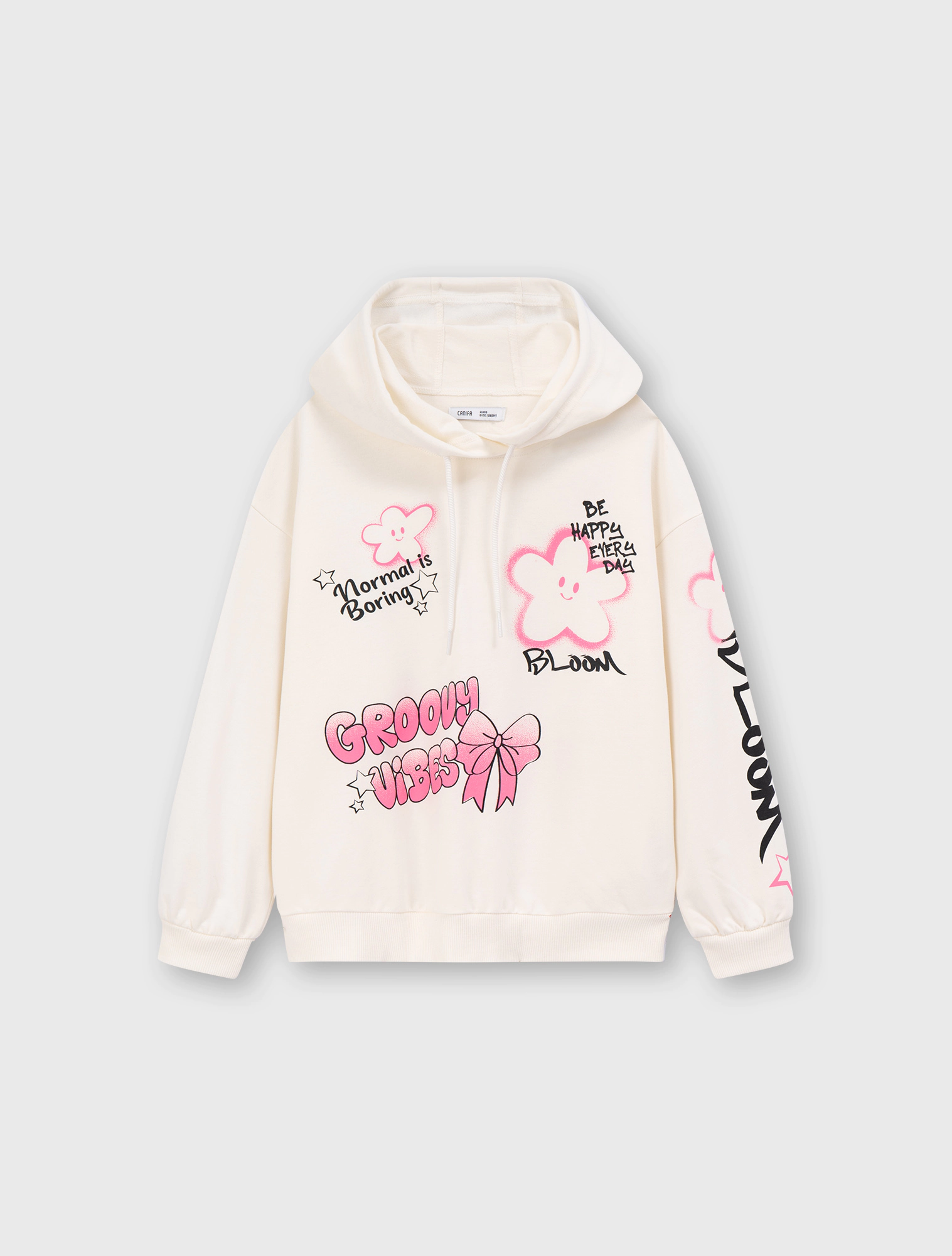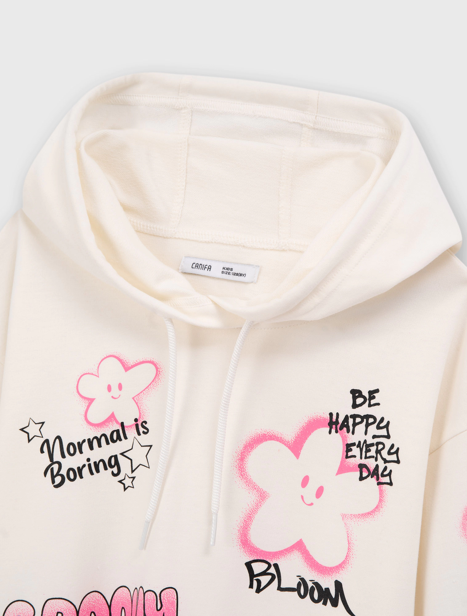 Áo nỉ bé gái có mũ. Phom áo cơ bản dễ mặc. Màu sắc tươi sáng, hình in dễ thương phù hợp bé gái. Chất liệu Cotton pha mềm mại, giữ ấm tốt
