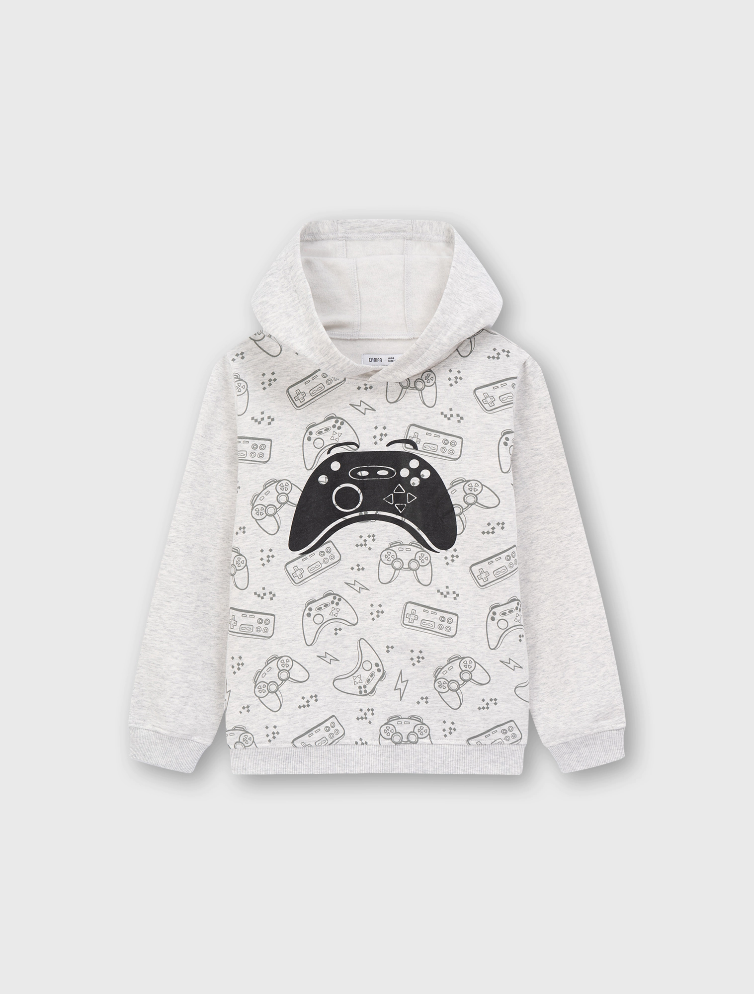 Áo nỉ bé trai có mũ, chất liệu cotton pha, hình in đa dạng phù hợp sở thích của các bé.