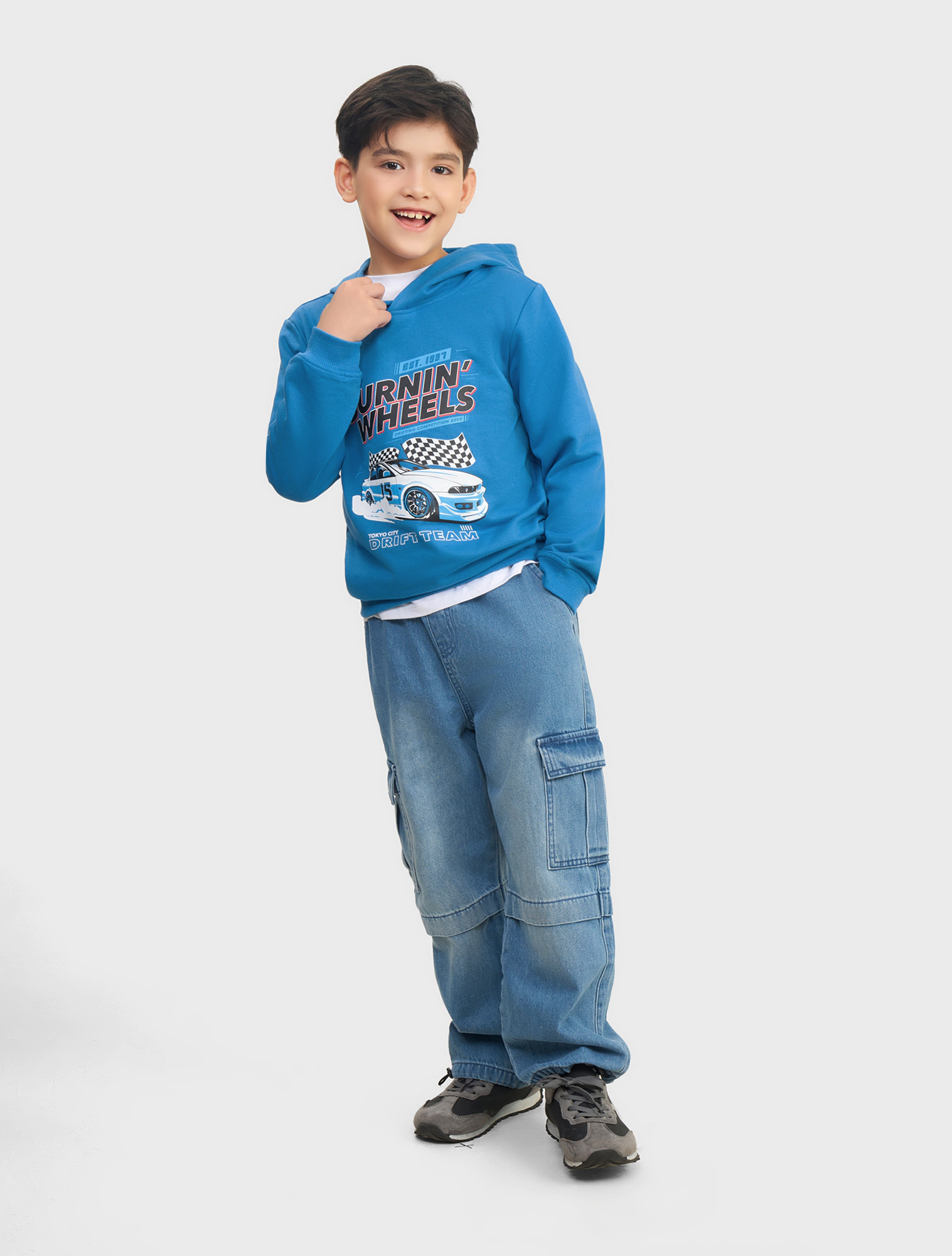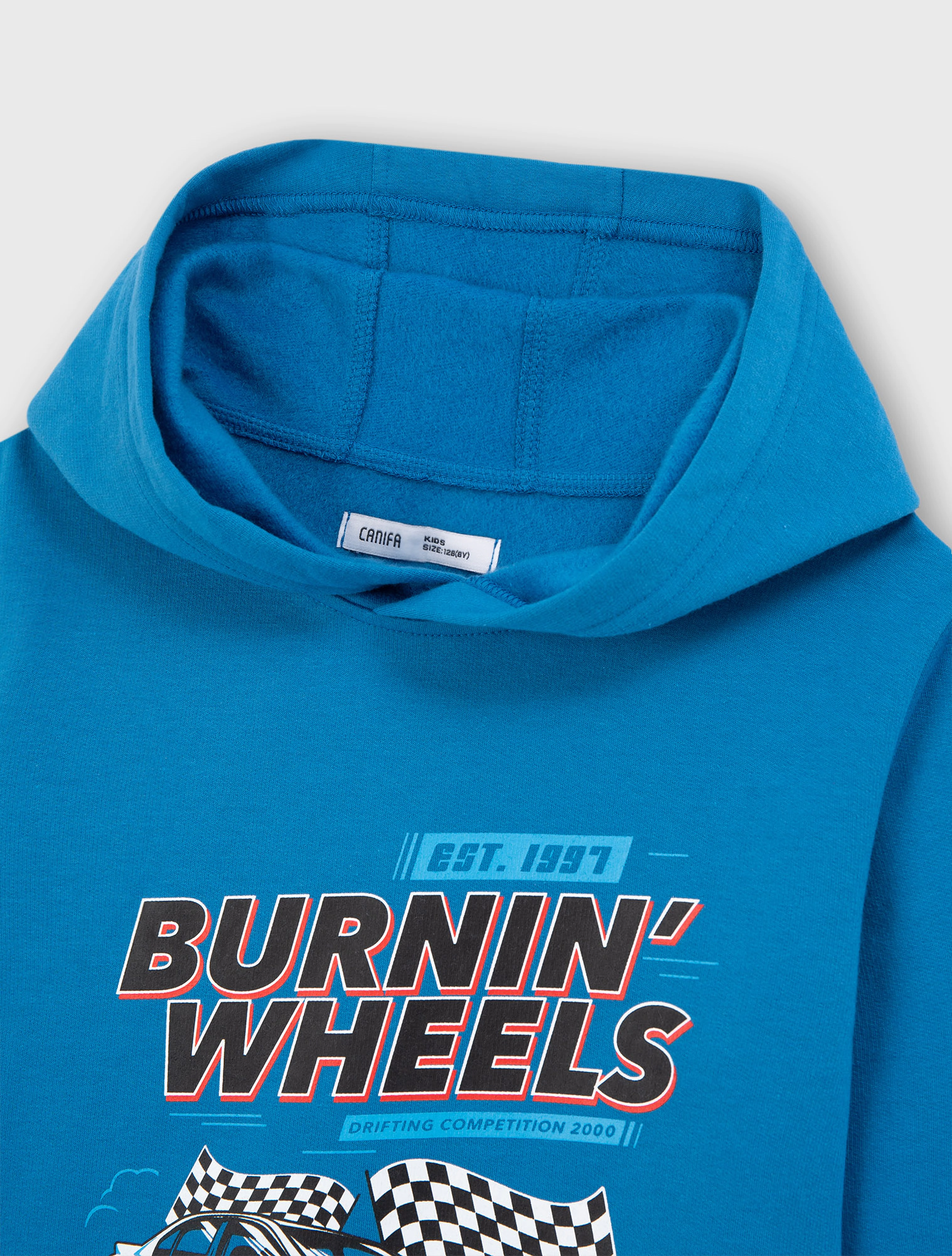 Áo nỉ bé trai có mũ, chất liệu cotton pha, hình in đa dạng phù hợp sở thích của các bé.