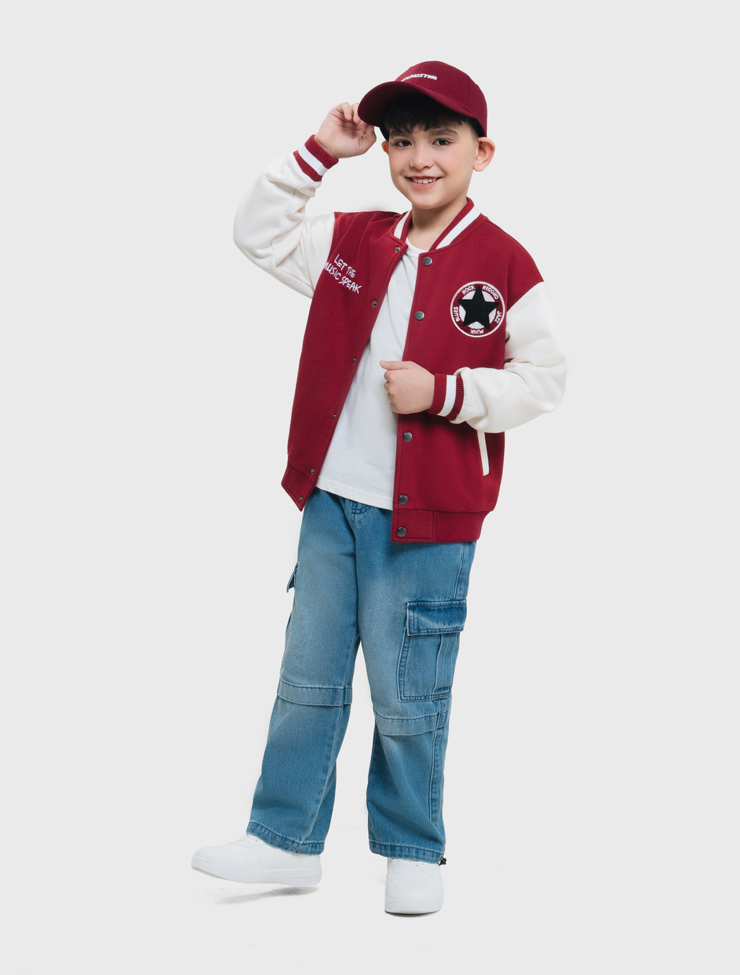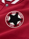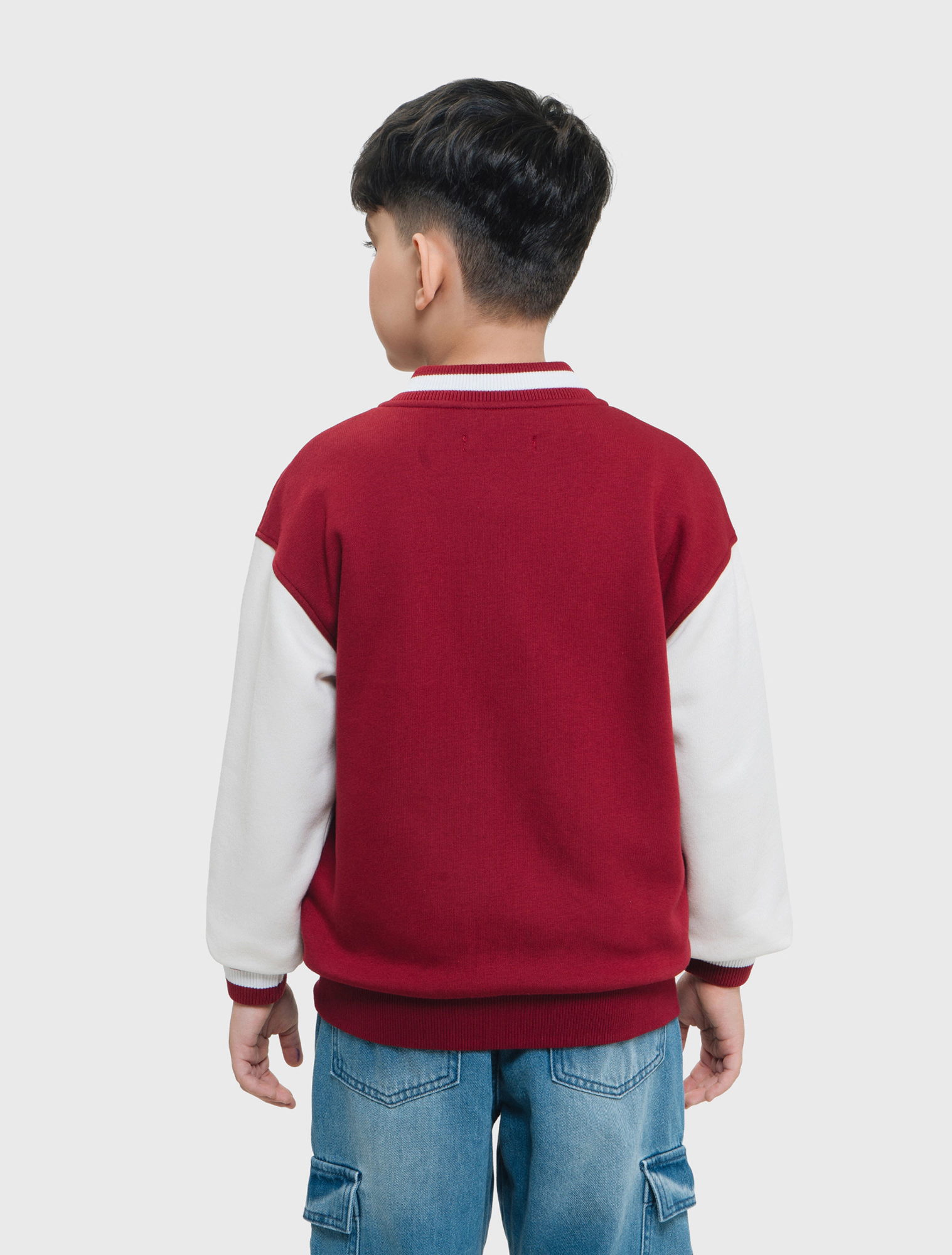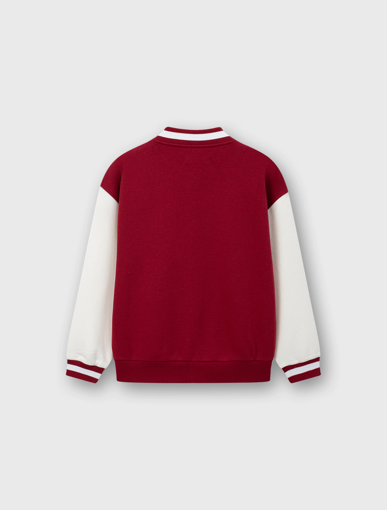 Áo khoác bé trai đính patch trang trí được may bằng chất liệu vải cào bông ấm áp. Cổ, gấu tay bằng bo kẻ. Tay phối màu khỏe khoắn.Túi viền phía trước. Cài khuy bấm phía trước.
