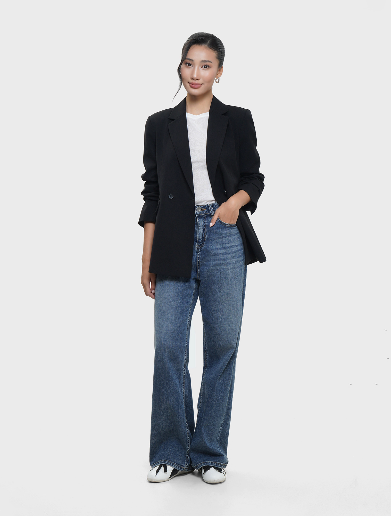 Áo khoác blazer nữ 2 lớp cổ tròn dáng ngắn, rộng vừa. Chất liệu mềm mại, dễ chịu, phù hợp môi trường công sở, dạo phố.