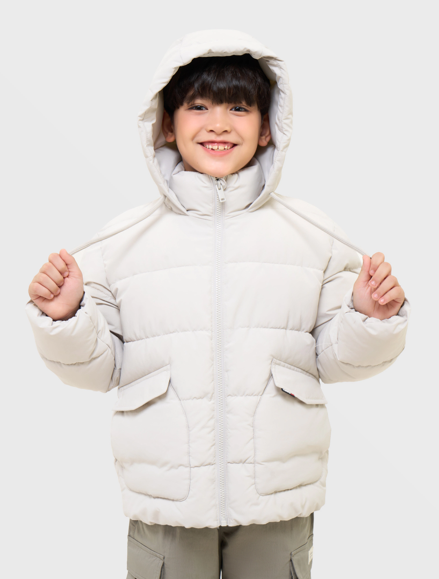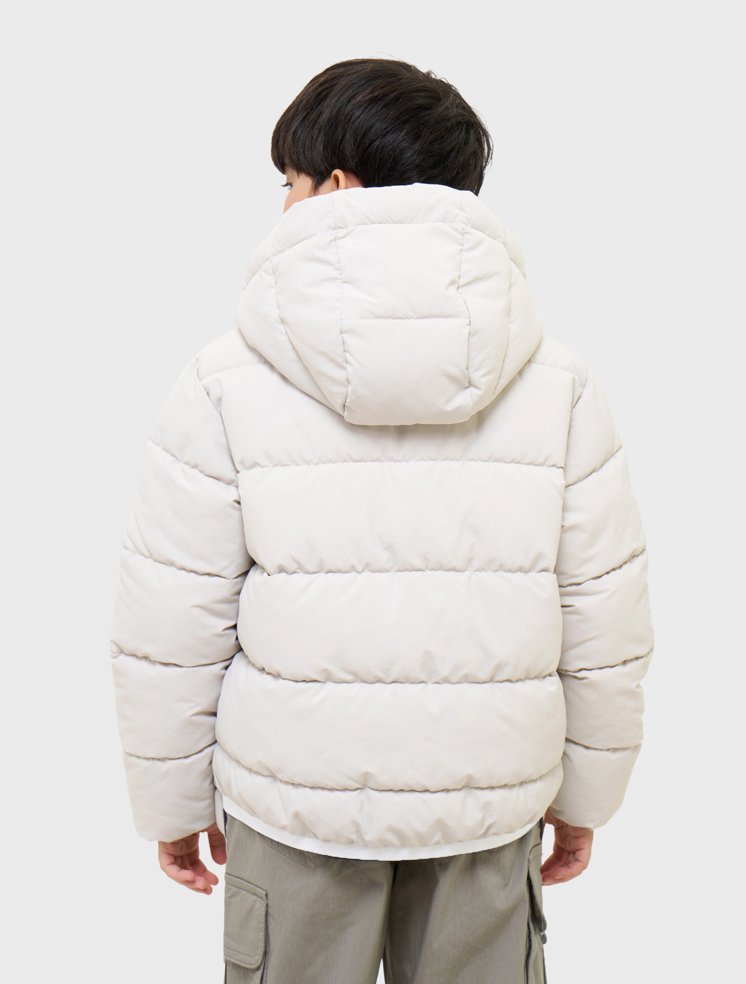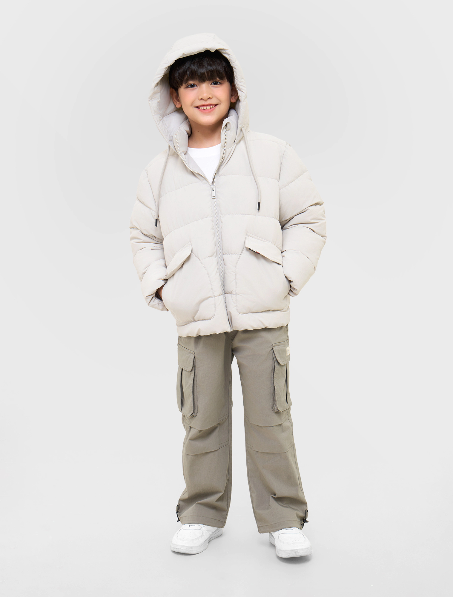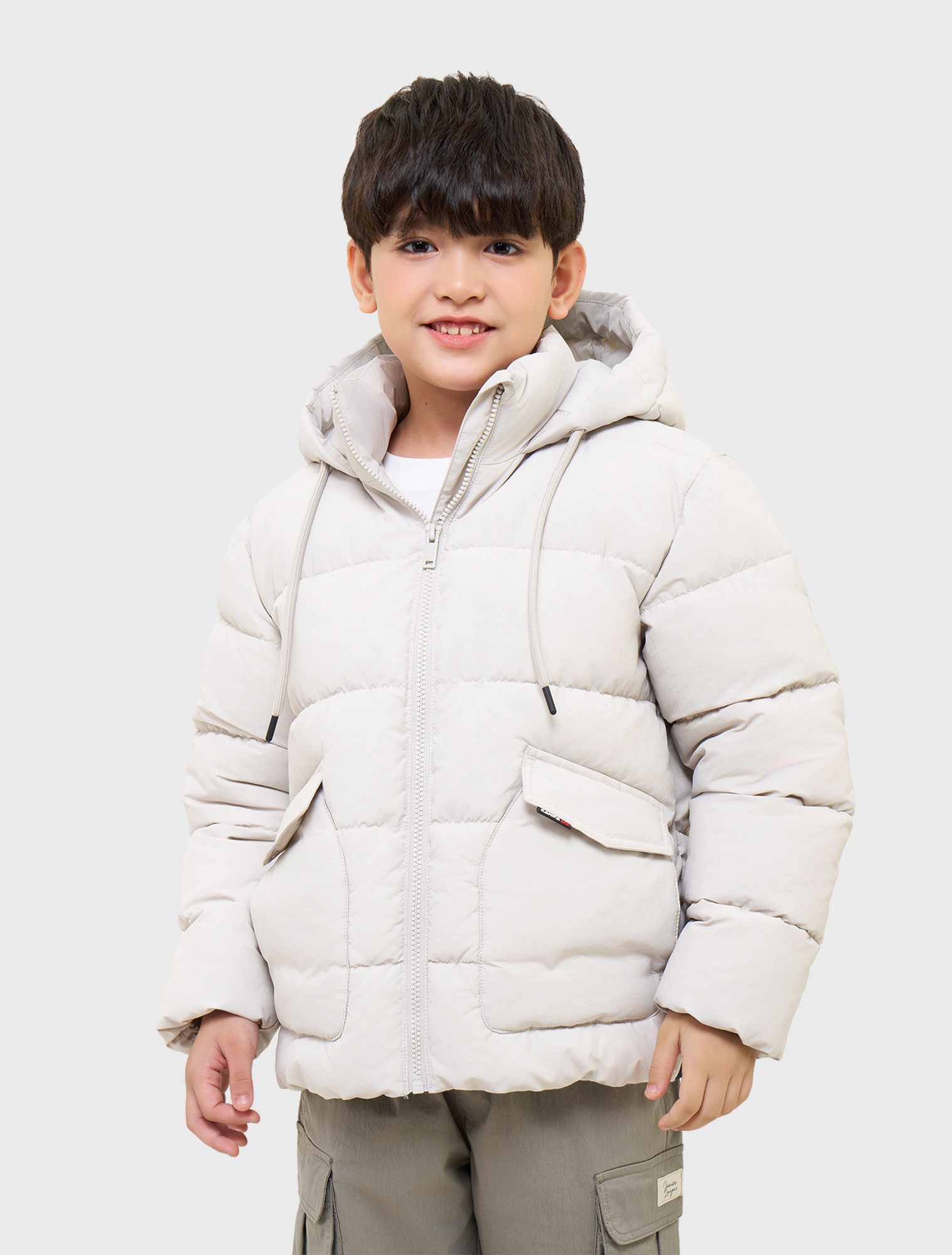 Áo khoác làm từ vải chống thấm nước đặc biệt, cổ cao, có mũ trùm đầu và dài tay. Kéo khóa phía trước. Túi ốp phía trước có nắp. Gắn nhãn trang trí ở túi.