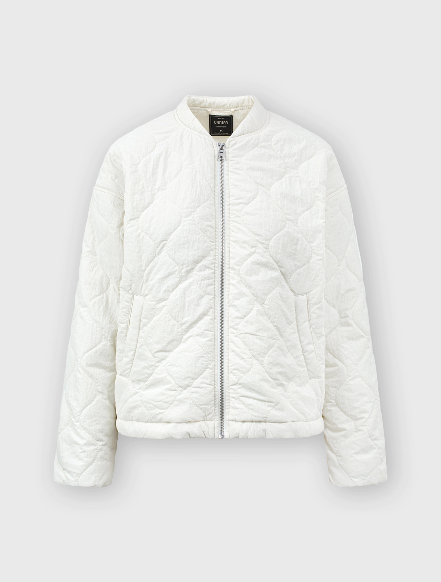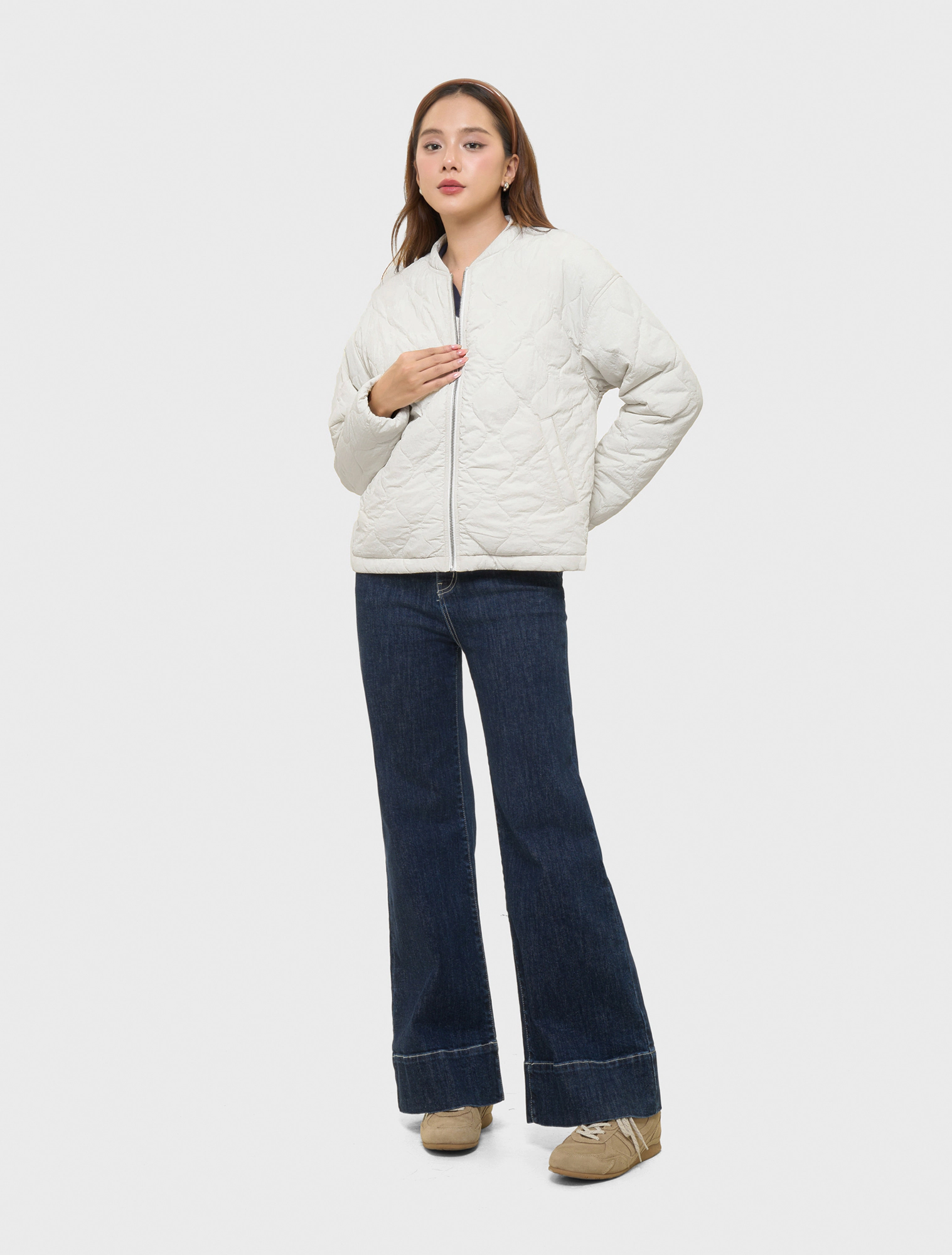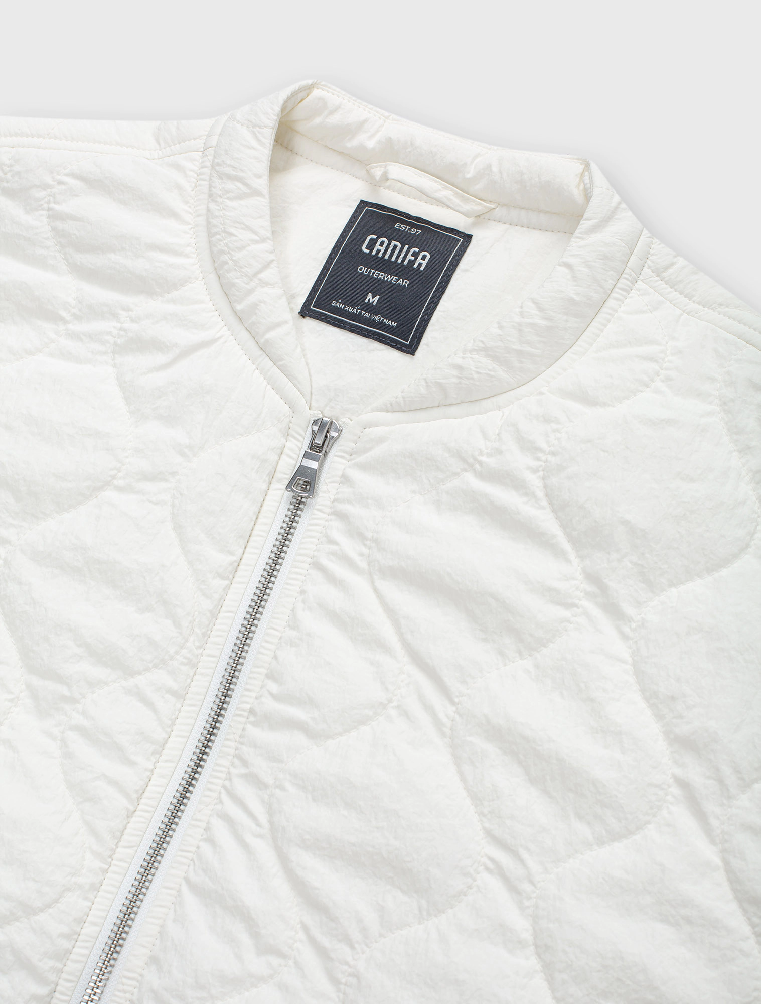 Áo khoác chần bông nữ khóa kéo, cổ tròn tàu. Phom dáng bomber, rộng vừa, thoải mái, phù hợp với thời tiết lạnh, mưa nhẹ.