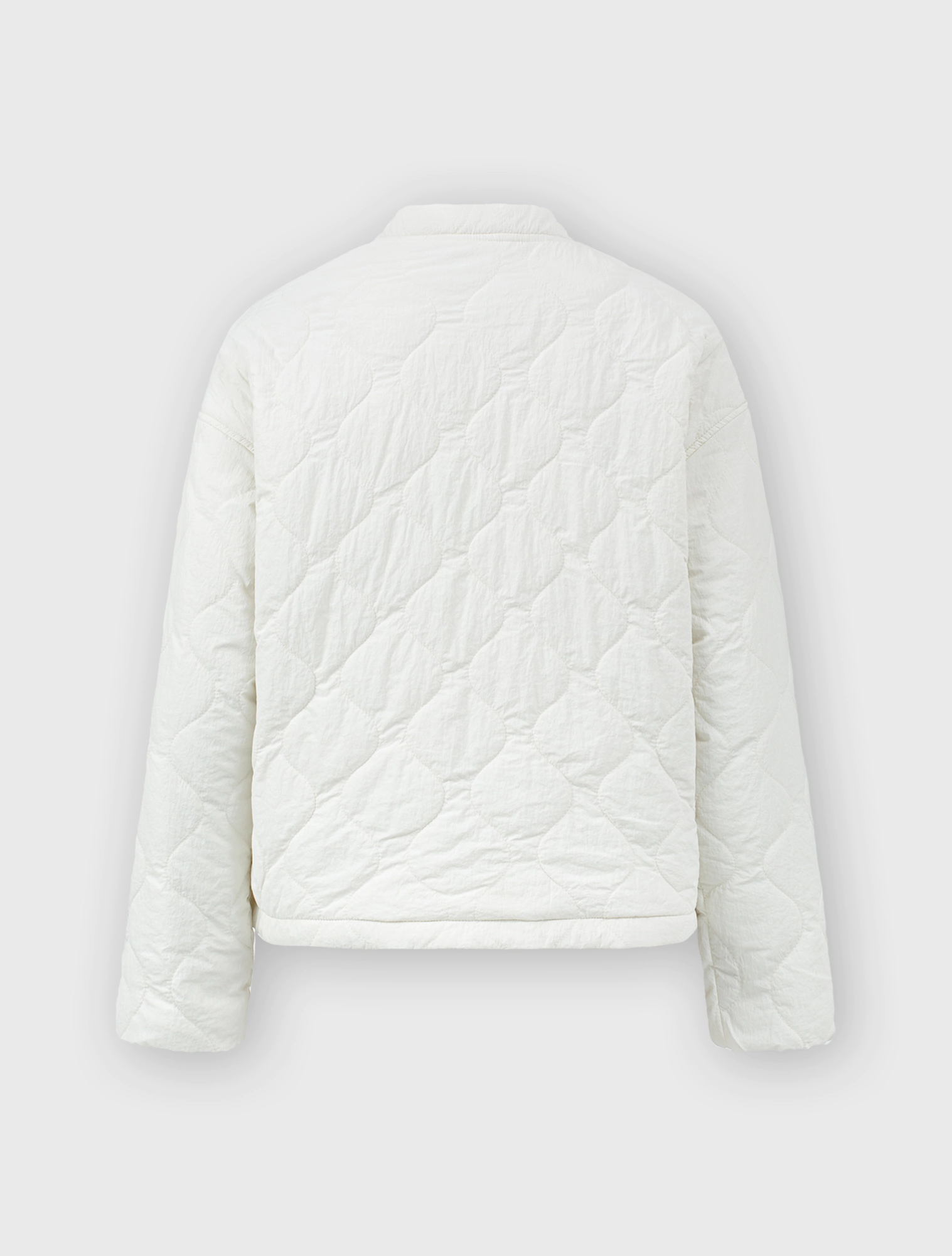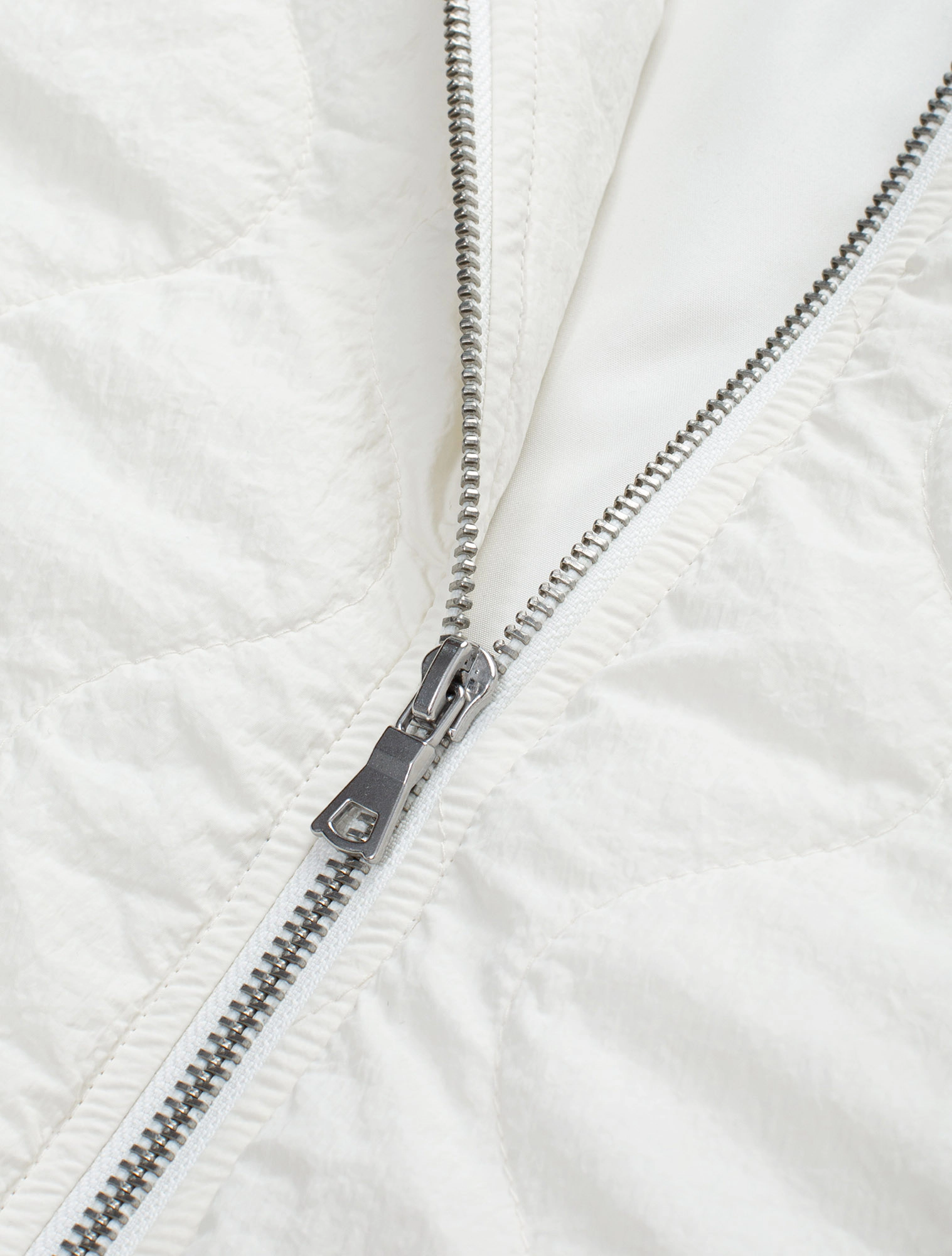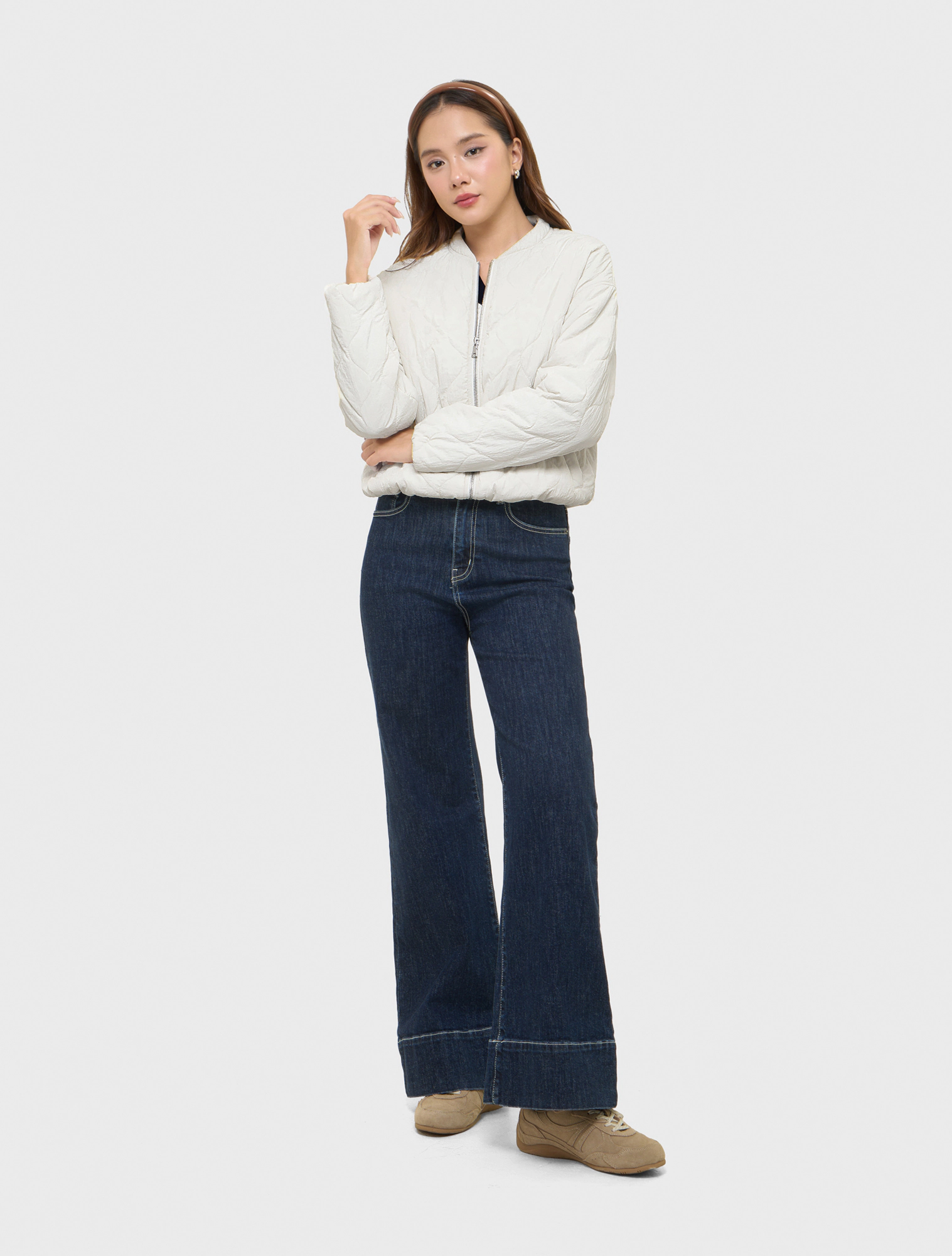 Áo khoác chần bông nữ khóa kéo, cổ tròn tàu. Phom dáng bomber, rộng vừa, thoải mái, phù hợp với thời tiết lạnh, mưa nhẹ.