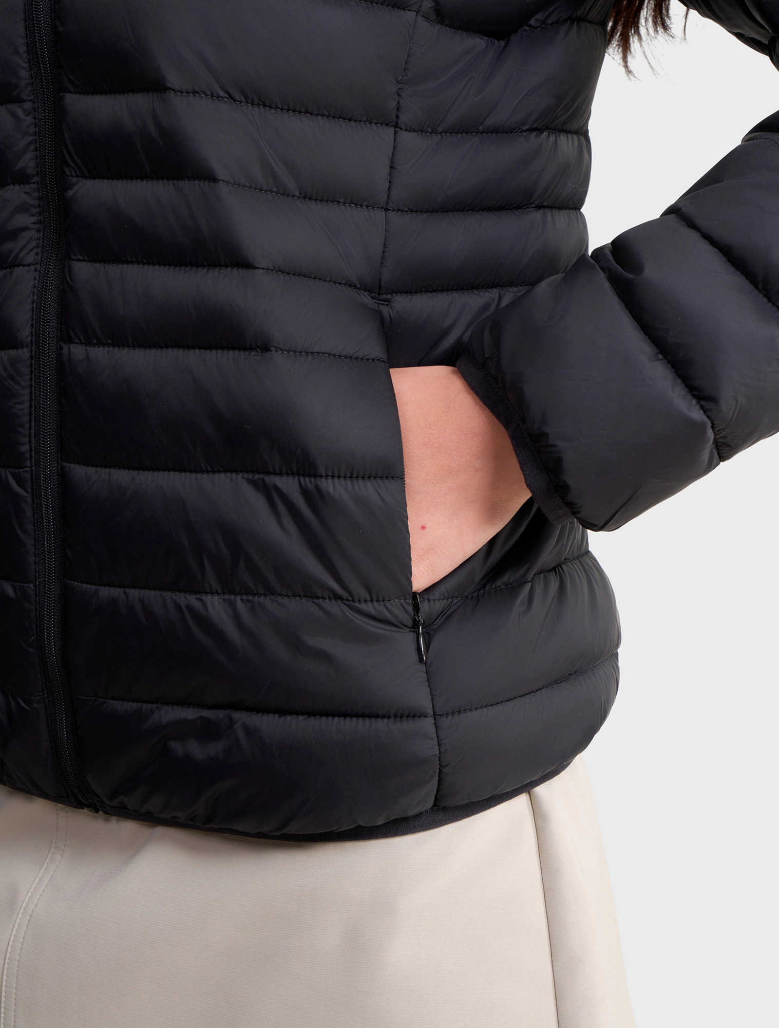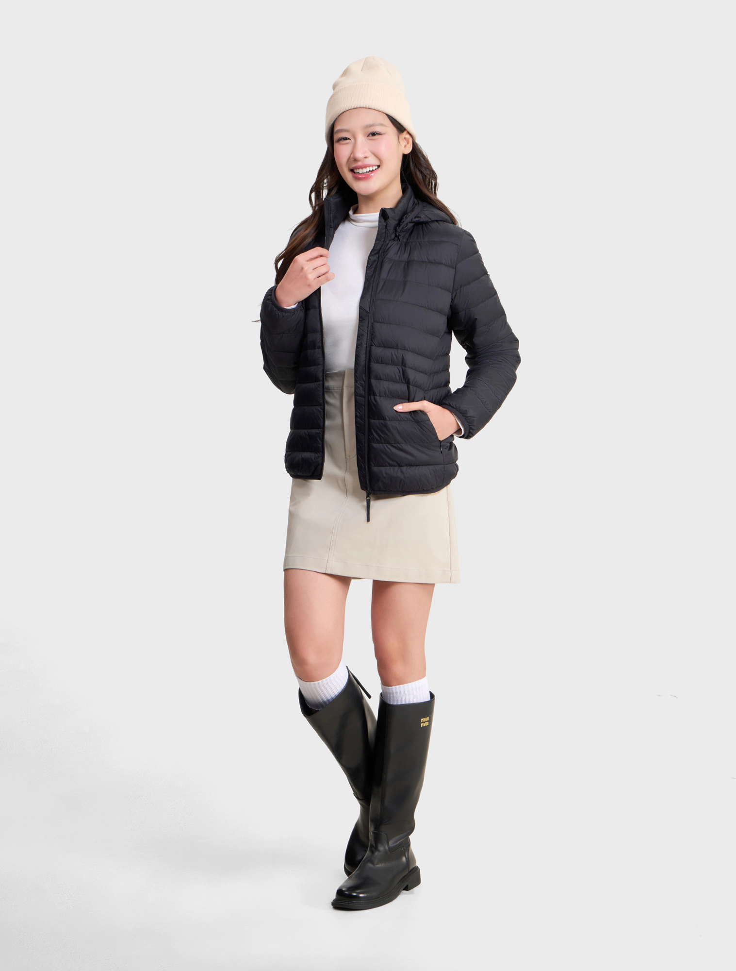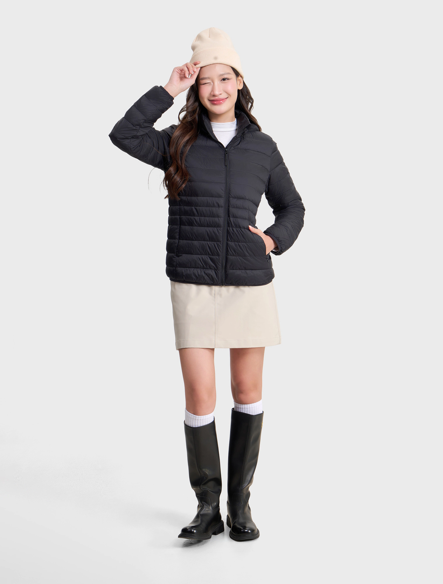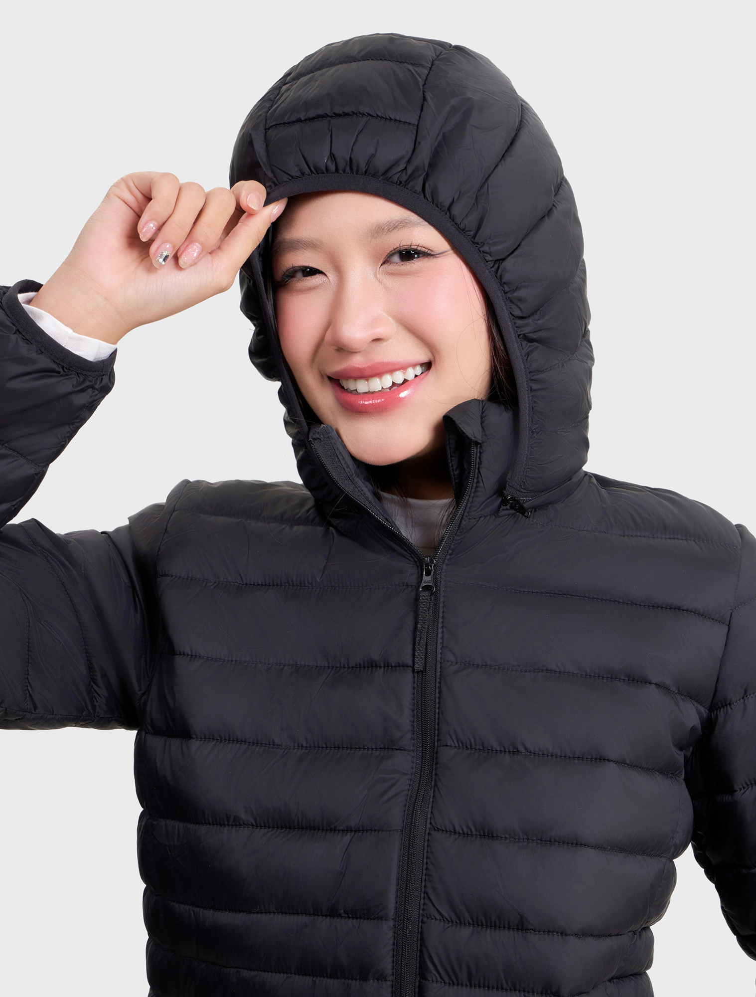 Áo khoác chần bông nữ thiết kế lớp phủ chống bám nước bảo vệ bạn khỏi những cơn mưa nhỏ.