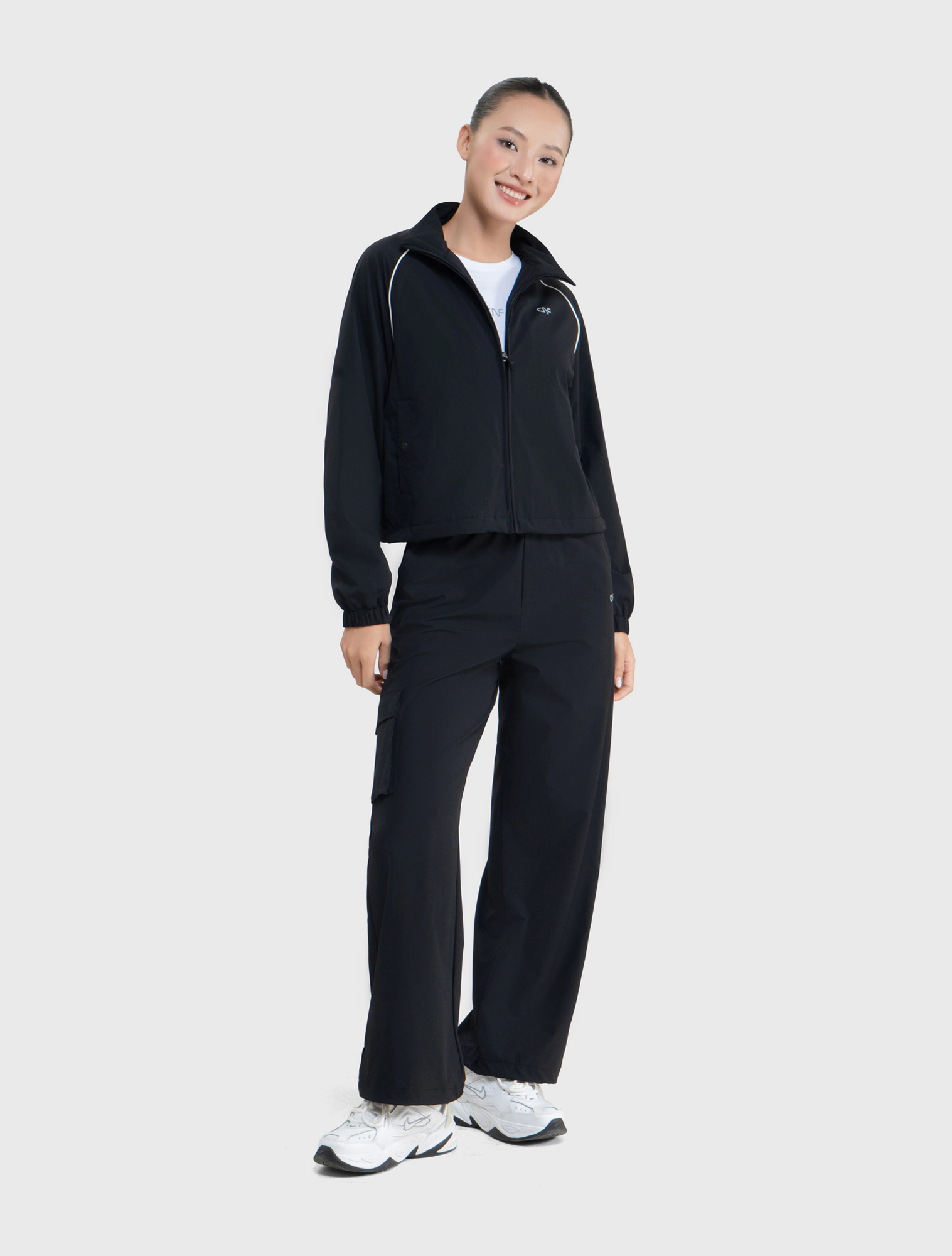 Áo khoác active nữ phom regular. Điểm nhấn đồ họa tinh tế dành riêng cho đồ active. Vải có tính năng cản gió nên phù hợp với nhiều hoàn cảnh sử dụng ngoài trời trong thời tiết lạnh