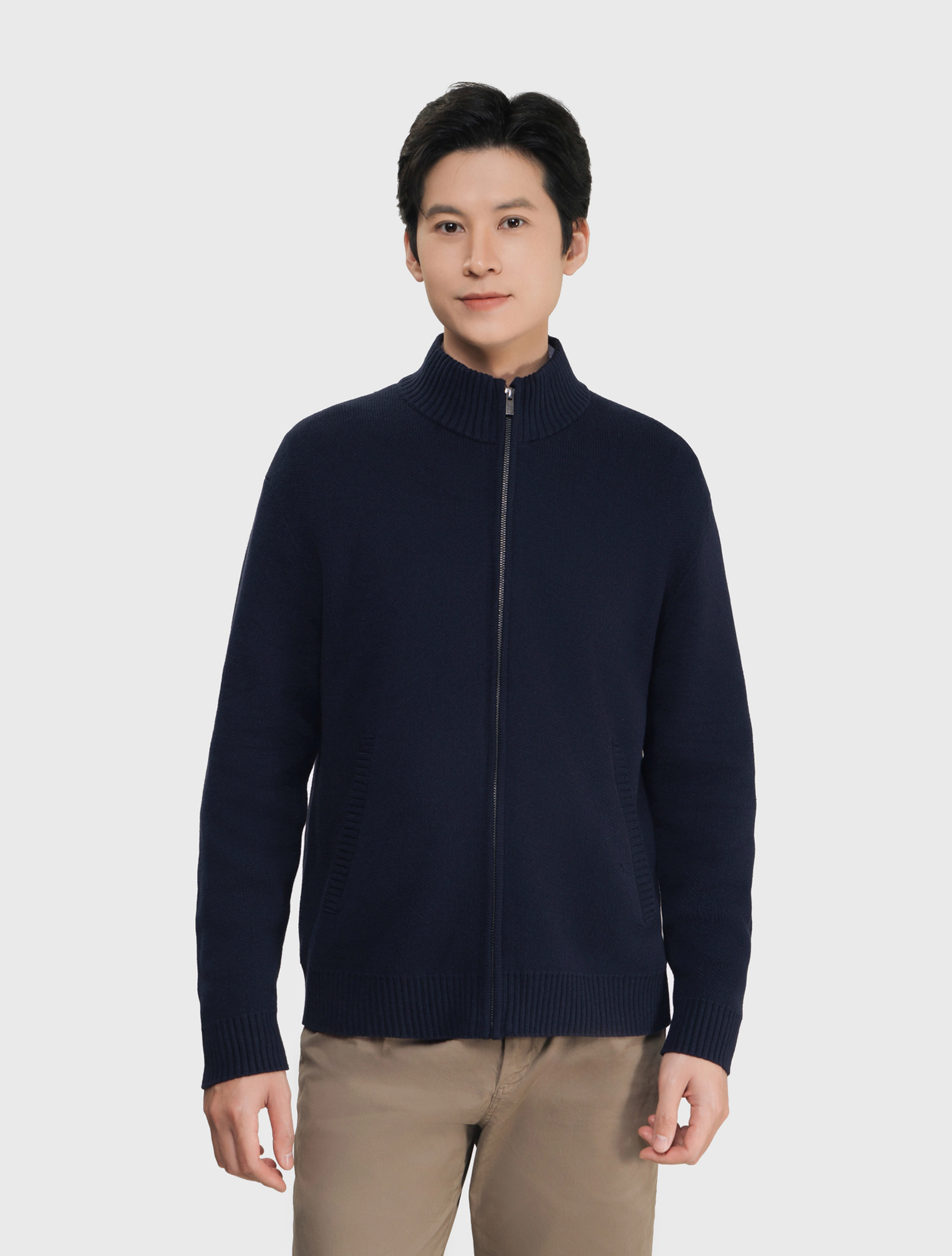 Áo khoác len nam với chất liệu dày dặn, đàn hồi tốt và mềm mịn. Bề mặt dệt chắc chắn giúp giữ ấm hiệu quả, form rộng dễ mặc. Thiết kế đơn giản, hiện đại, mang lại cảm giác thoải mái cho người mặc.