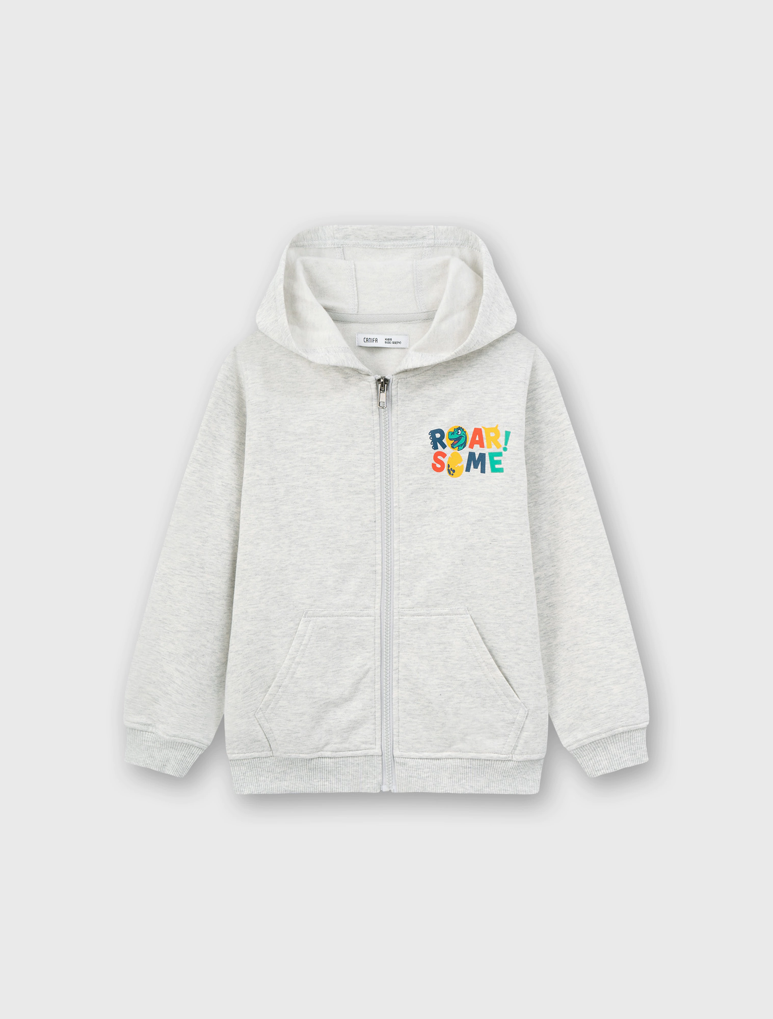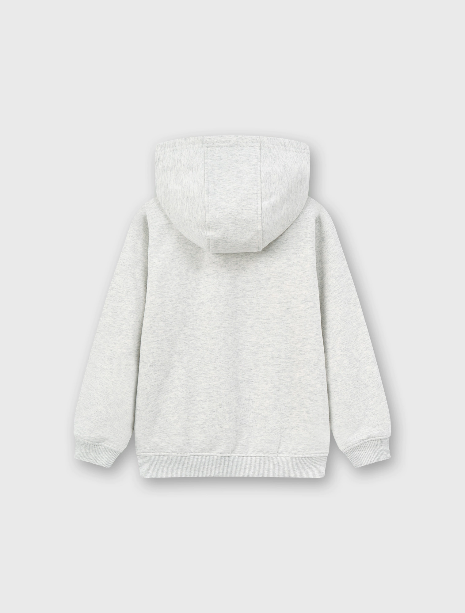 Áo khoác nỉ bé trai cào bông có mũ. Thân trước có túi.