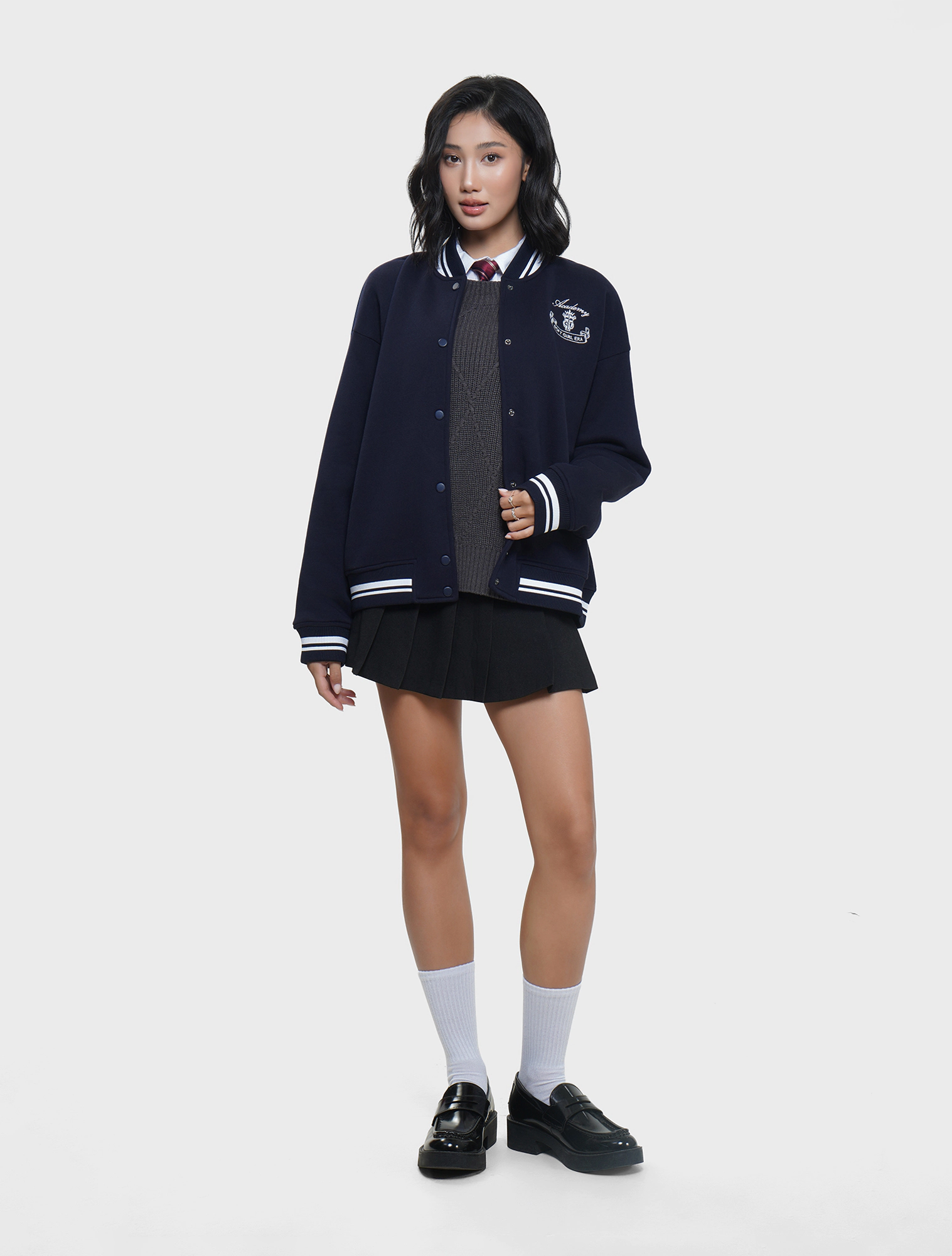 Áo khoác nỉ nữ dáng bomber, chất liệu vải cào bông dày dặn ấm áp, các chi tiết thiết kế khoẻ mạnh với bo rib dệt kẻ, hình đồ hoạ ấn tượng trẻ trung tạo nên 1 sản phẩm thời trang, cá tính và trẻ trung.