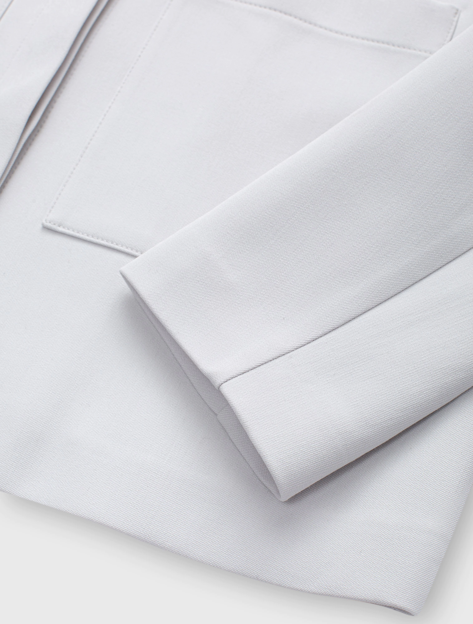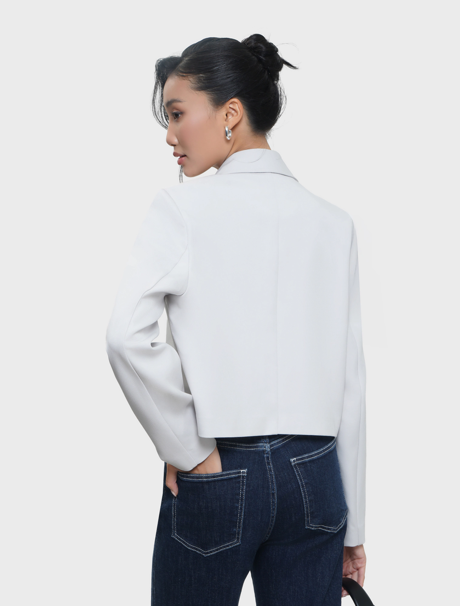 Áo khoác nữ 2 lớp cổ bẻ dáng ngắn, rộng vừa. Chất liệu mềm mại, dễ chịu, phù hợp môi trường công sở, dạo phố.