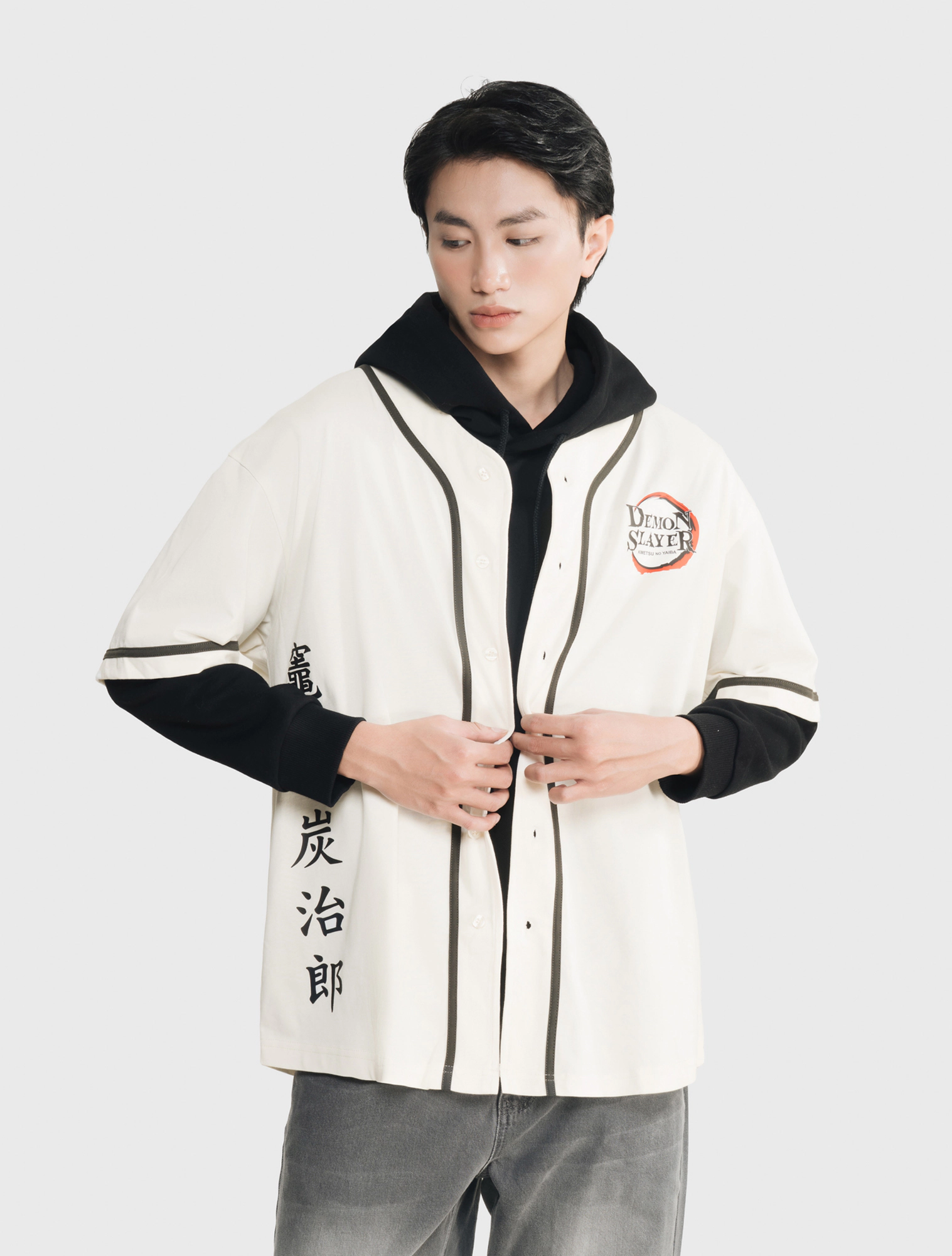 Áo khoác unisex ngời lớn. Áo kiểu bóng chày ngắn tay thời trang. Thân trước có viền dây phối màu, hình in Demon Slayer cả thân trước và sau. Chất liệu 100% Cotton mềm mại.