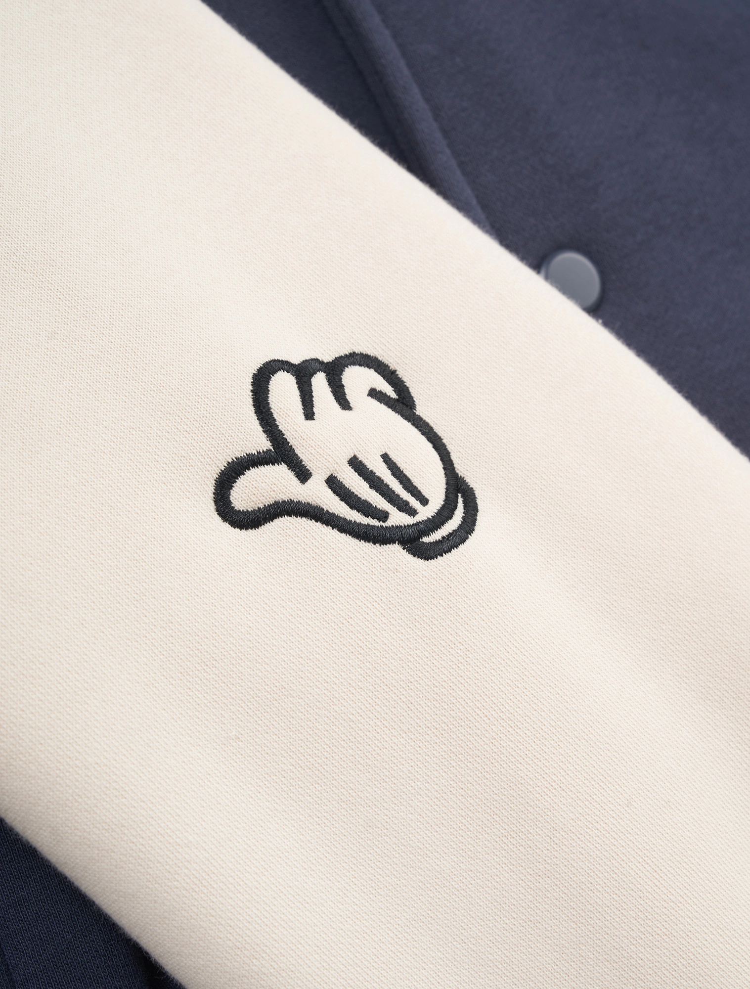 Áo khoác nỉ cào lông unisex người lớn. Dáng áo bomber hiện đại. Áo phối tay khác màu thân áo, bo rib kẻ thời trang.Màu sắc và hình in Mickey phù hợp cả nam và nữ. Chất liệu Cotton pha mềm mại, mặt trong cào bông dày dặn giữ ấm tốt.