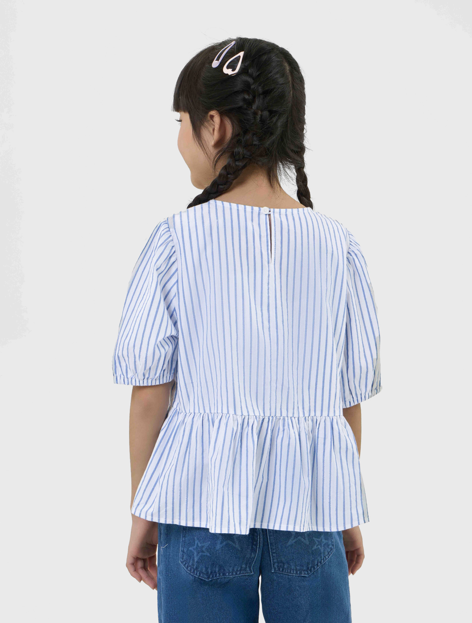 Áo kiểu bé gái đính nơ, có chi tiết nơ ở ngực mang đến sự nữ tính.