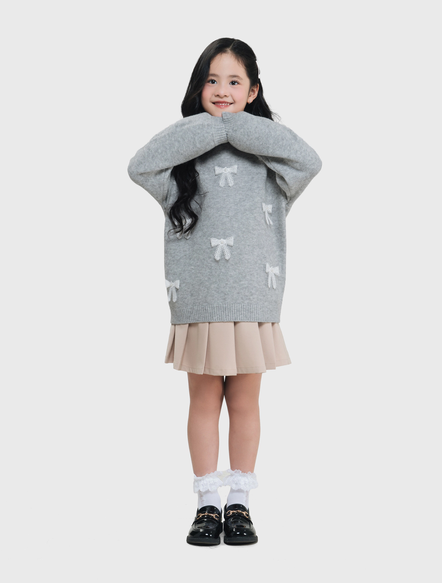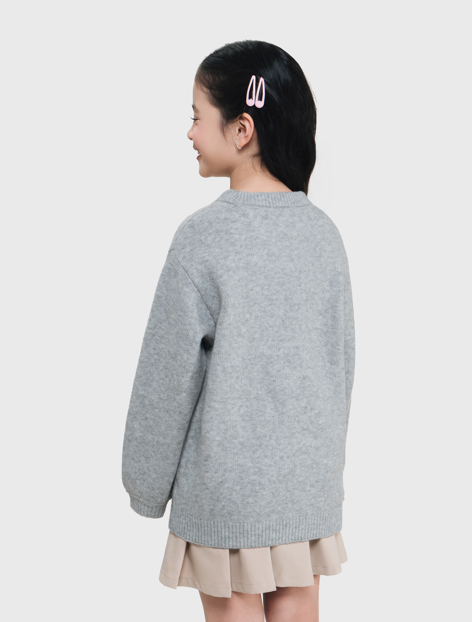 Áo len bé gái. Đính trang trí trên thân áo, có thể phối linh hoạt với các trang phục khác. Sợi len mềm mại, dễ chịu giúp các bé giữ ấm và năng động.