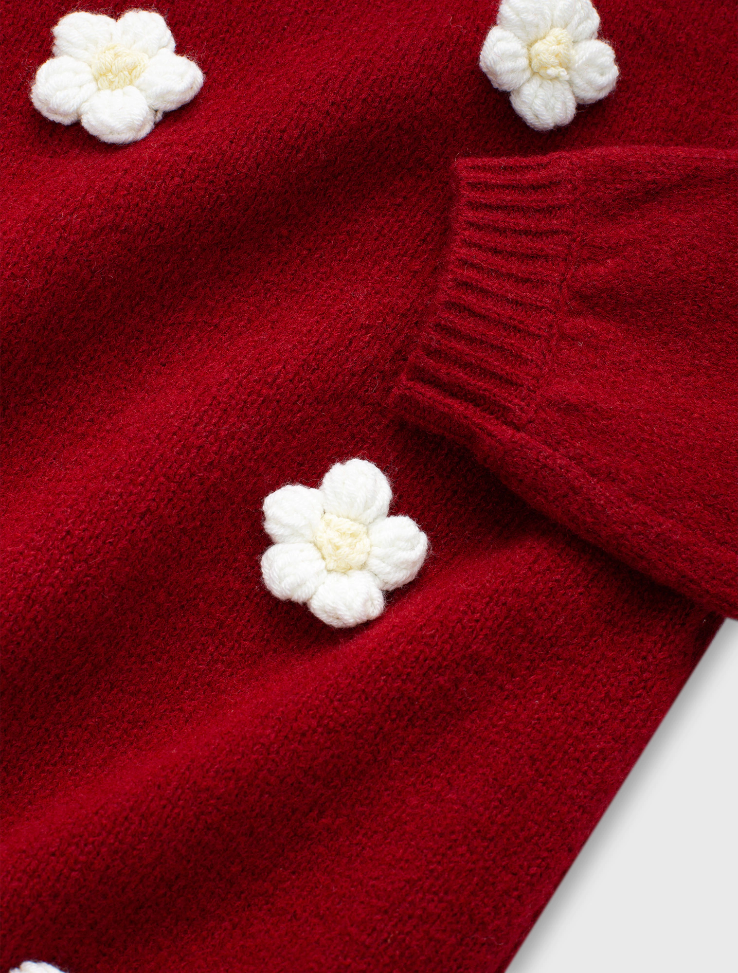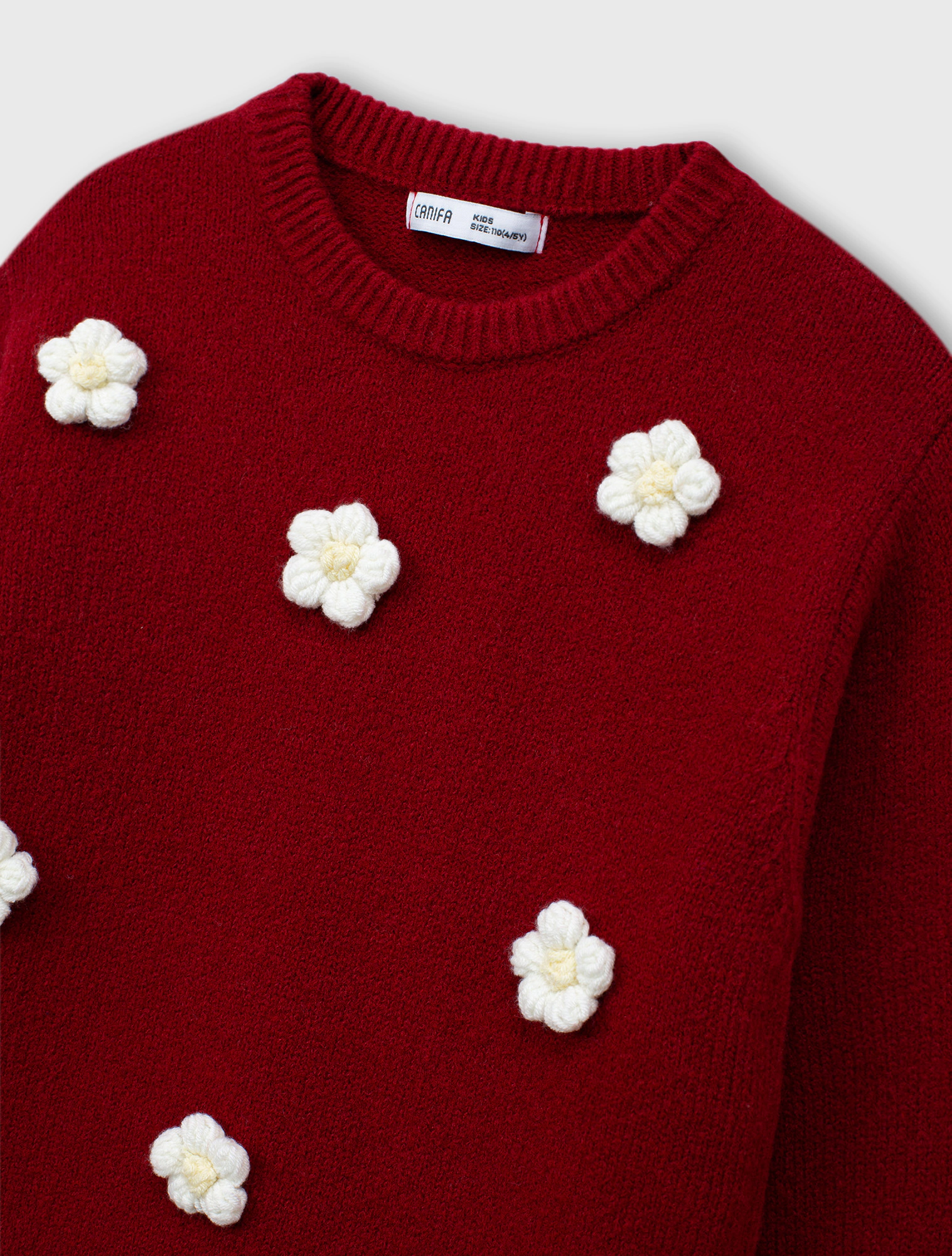 Áo len bé gái. Đính trang trí trên thân áo, có thể phối linh hoạt với các trang phục khác. Sợi len mềm mại, dễ chịu giúp các bé giữ ấm và năng động.