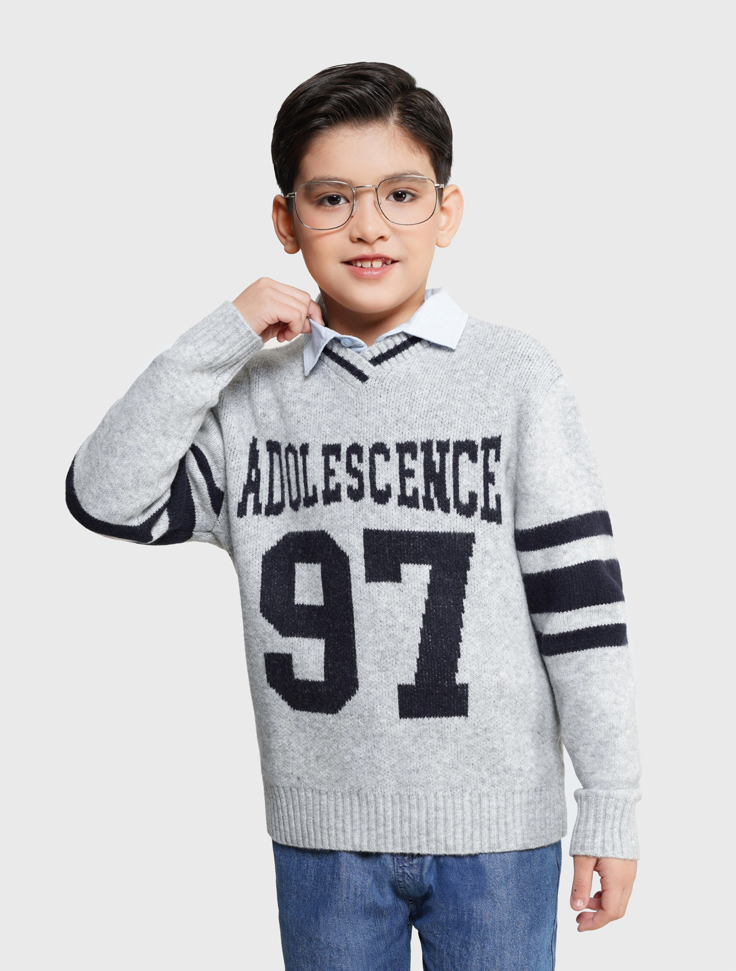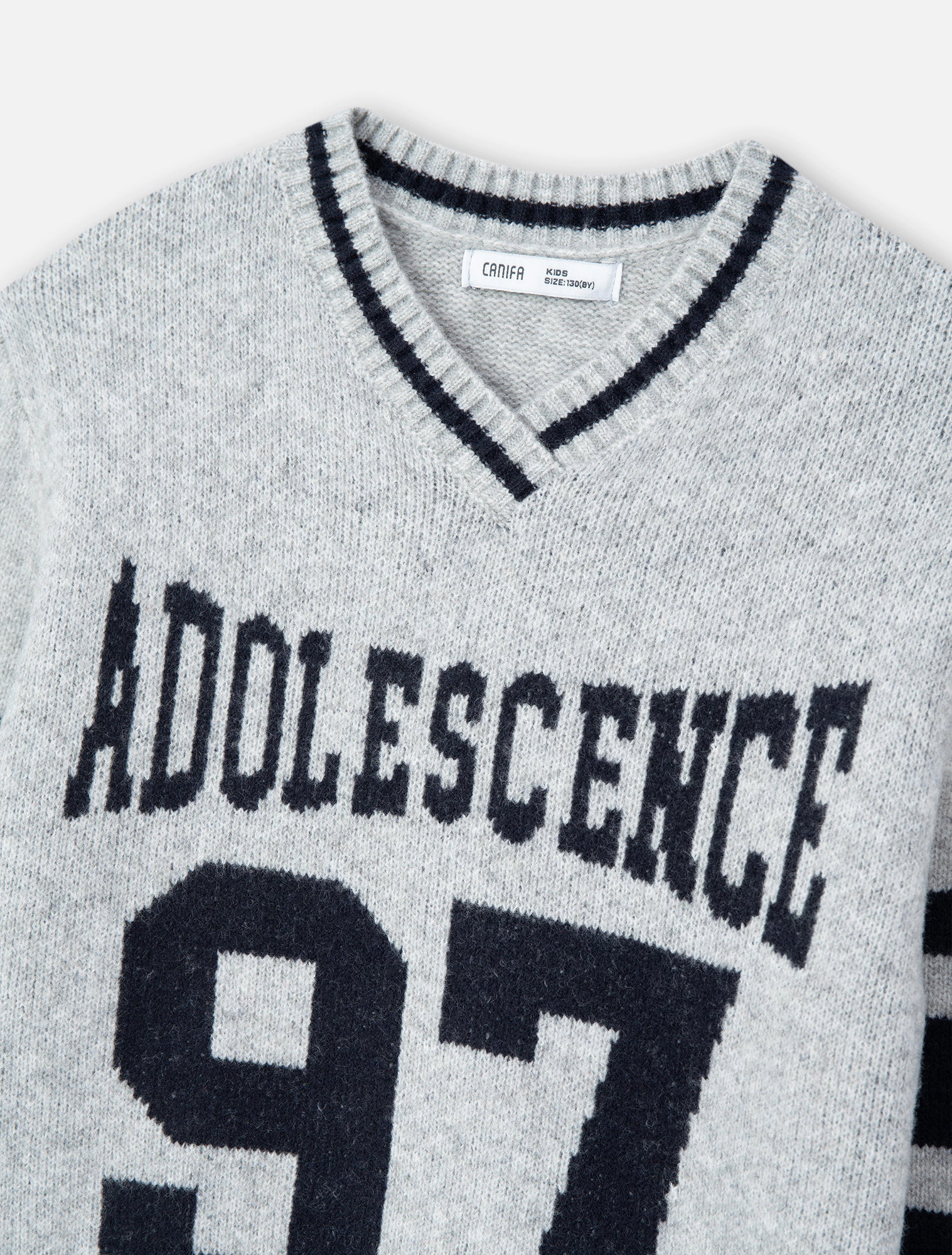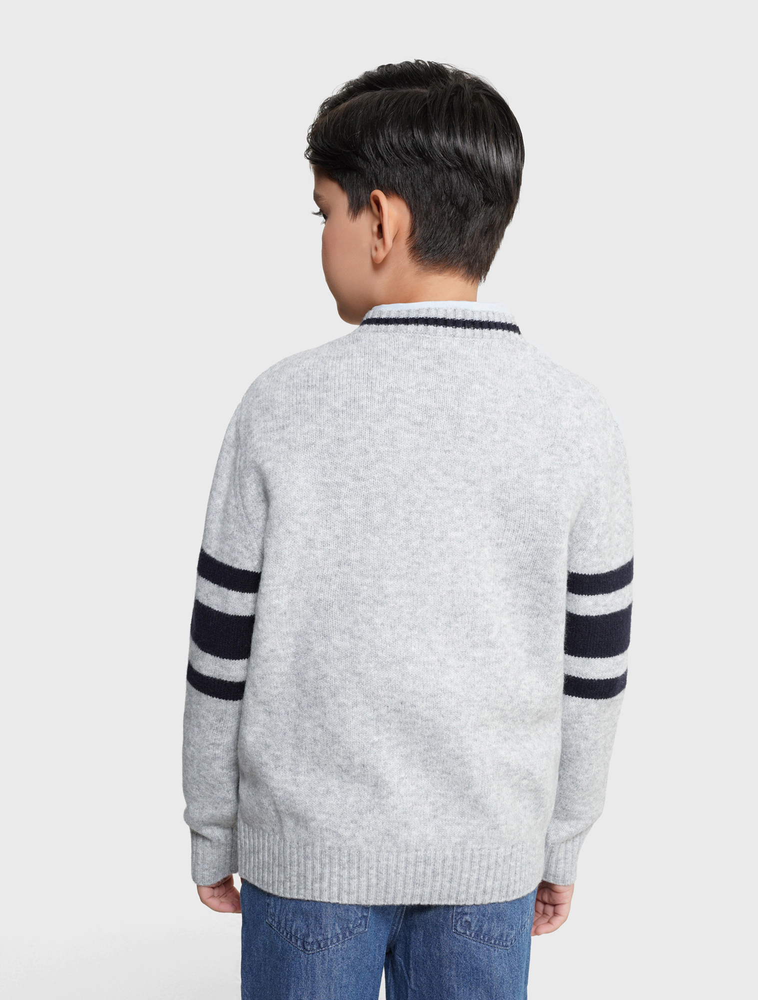 Áo len bé trai, phong cách sport mix màu khỏe khoắn năng động, cổ tim phối kẻ tạo sự mới mẻ cho các bạn trẻ.