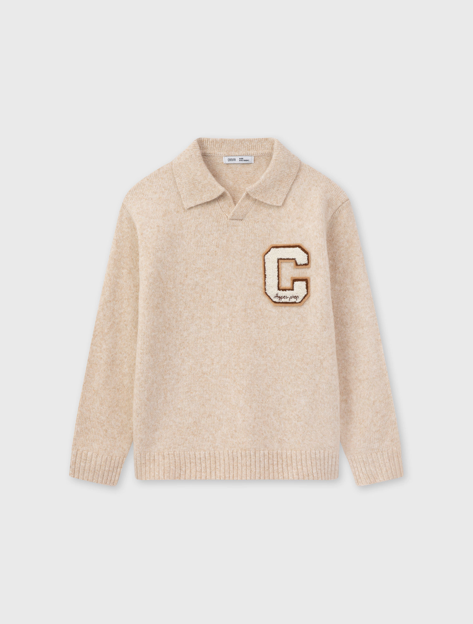Áo len cổ bẻ dài tay, phom dáng regular.