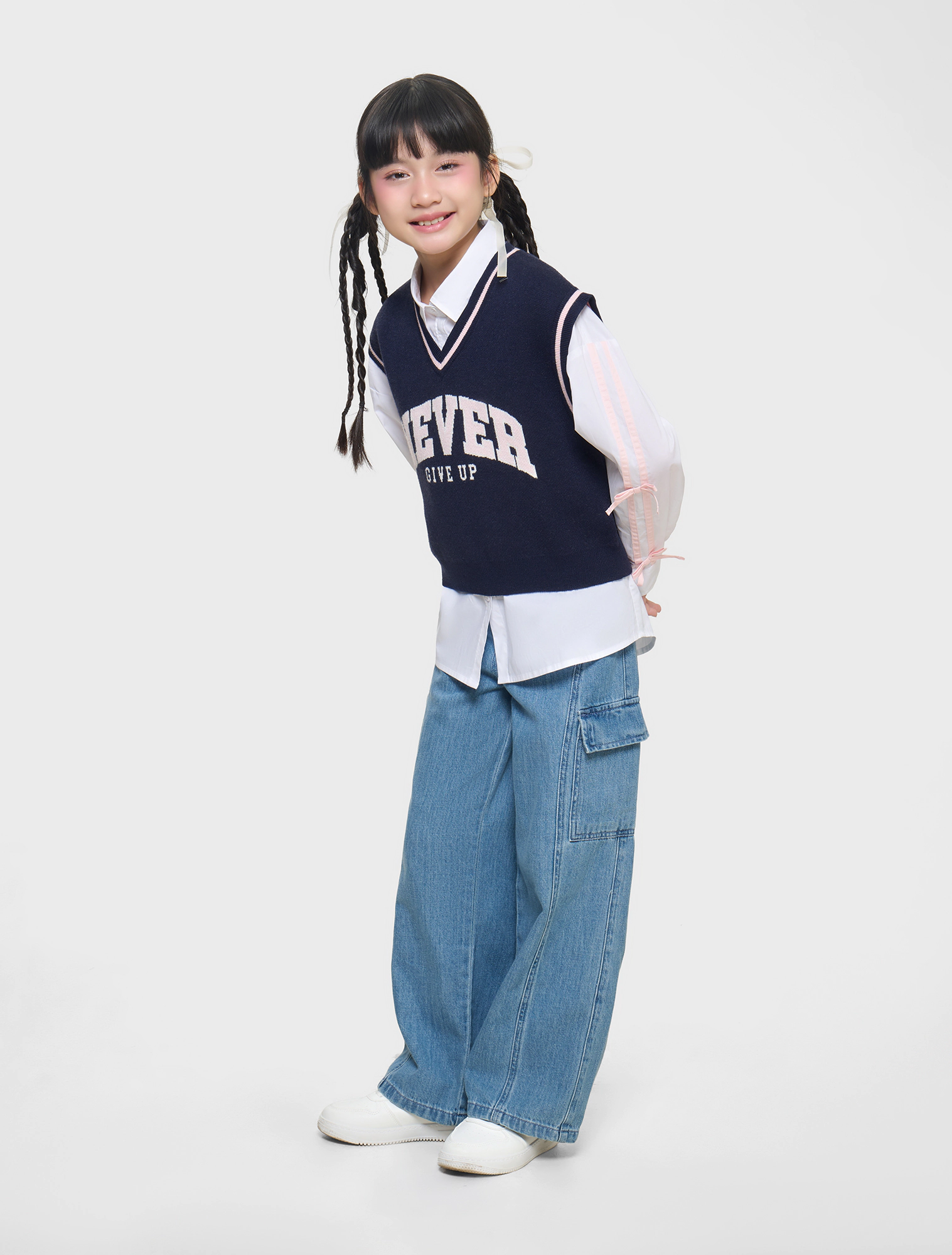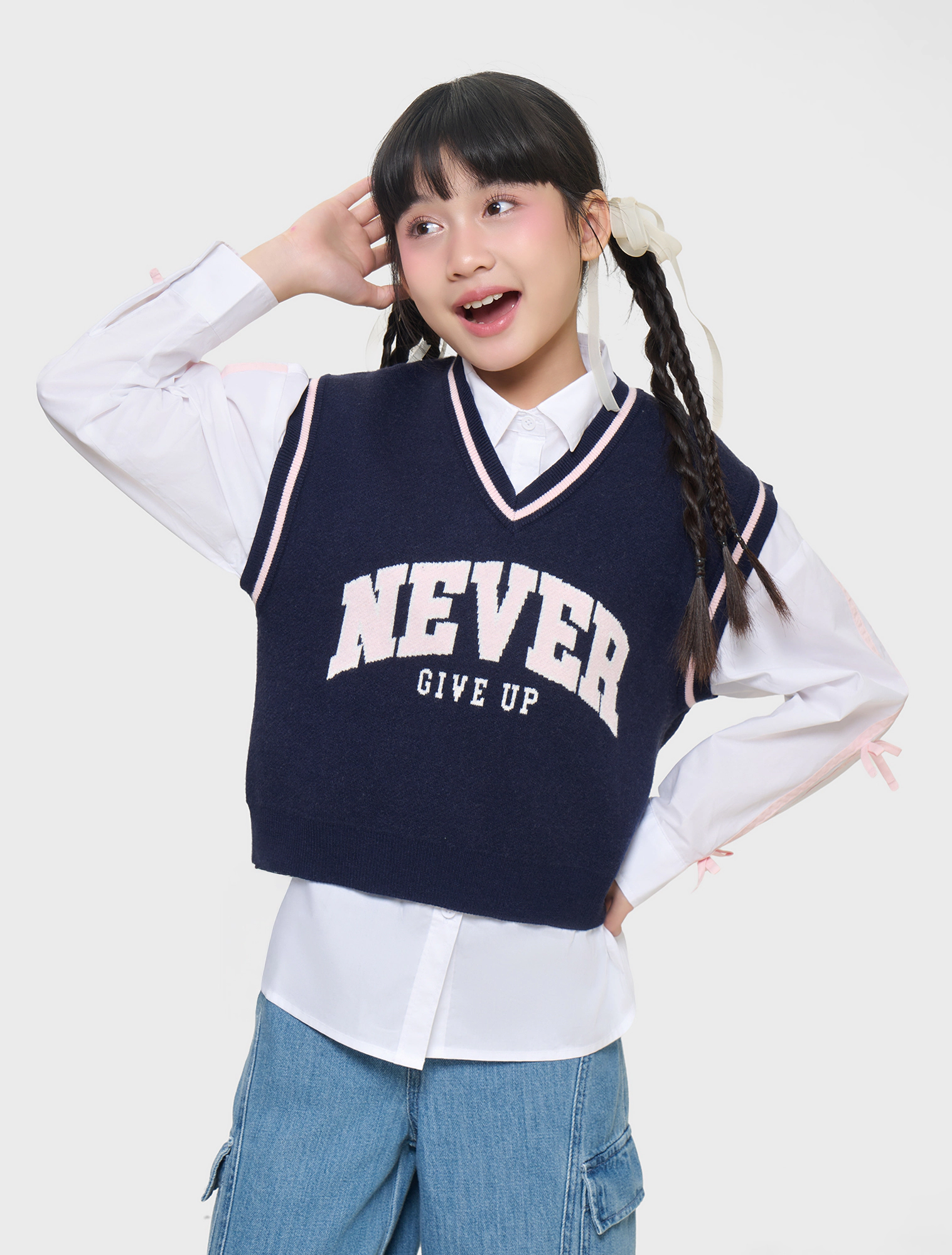 Áo len gilet bé gái. Sản phẩm phối màu tạo cảm giác khỏe khoắn, ấm áp phù hợp với thời tiết chuyển lạnh