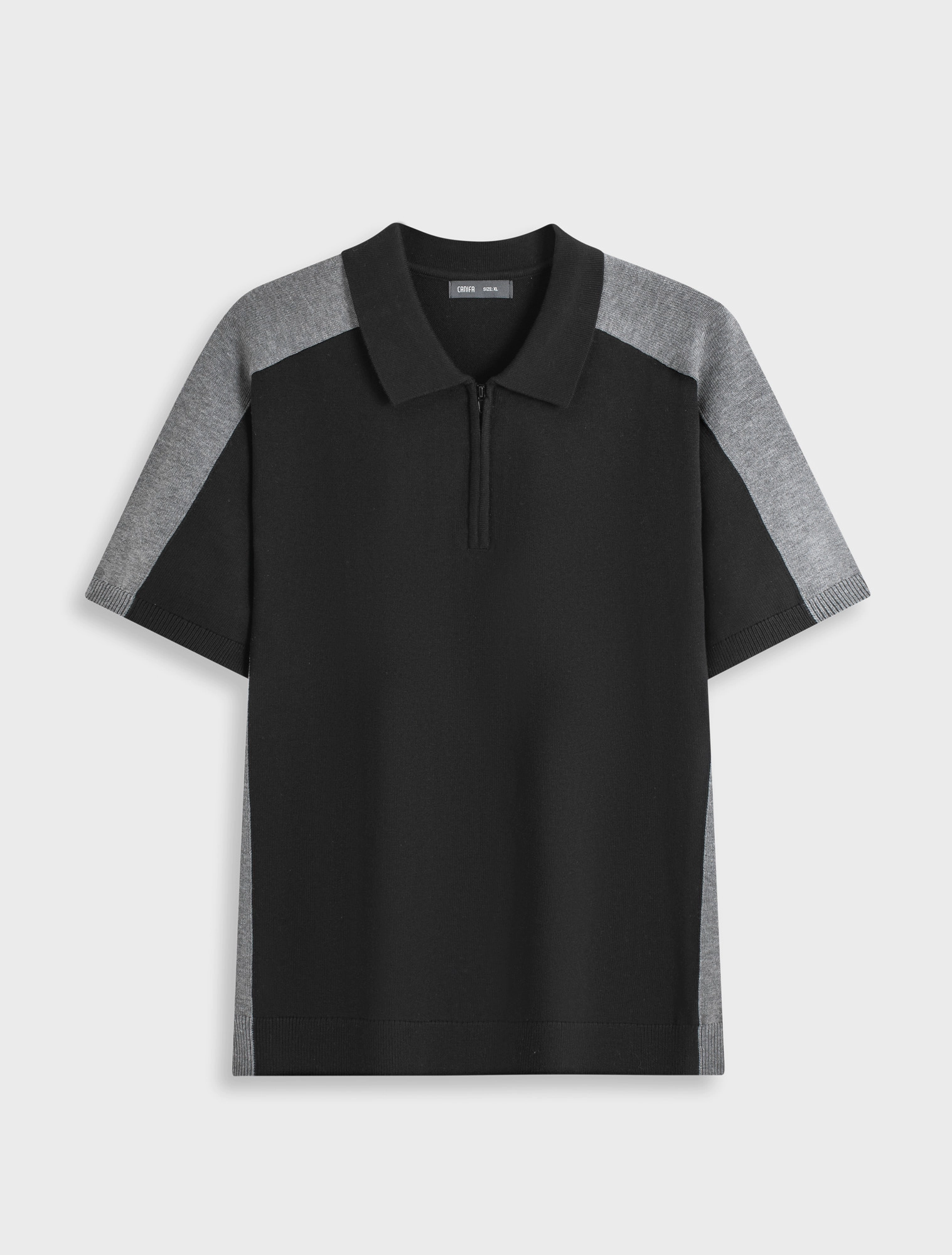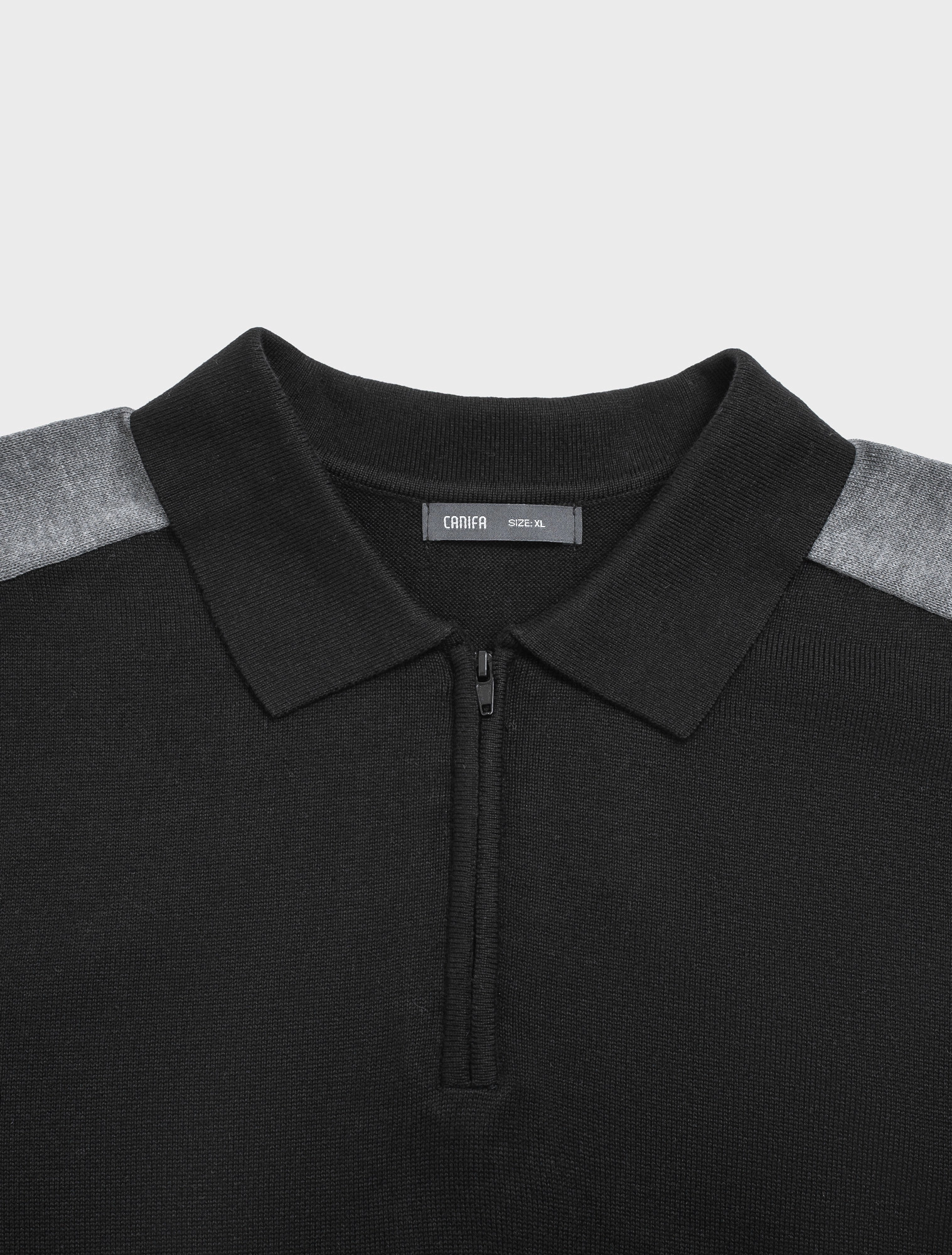 Áo len polo nam phối màu dọc sườn và tay áo được dệt từ sợi cotton acrylic với kiểu dáng suông cộc tay, dáng regular, đặc điểm là phần vai, thân áo và tay áo vừa vặn vào cơ thể nhưng không gây cảm giác bó sát hay khó chịu. Sử dụng chất liệu kết hợp giữa sợi len nhân tạo acrylic và cotton giúp sản phẩm trở nên mềm mại, nhẹ nhàng và thoáng khí.