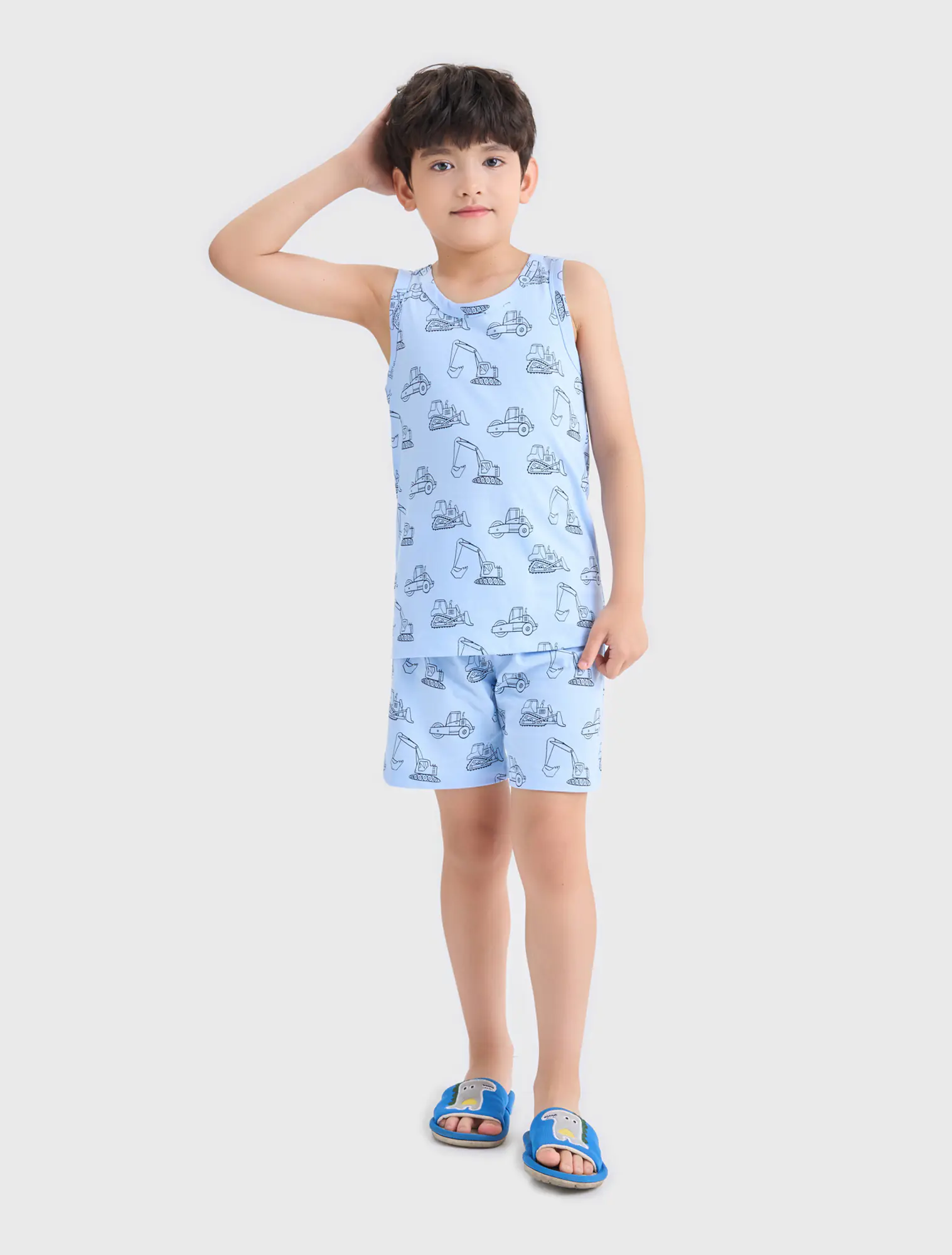 Combo mặc nhà 2 áo ba lỗ bé trai. Phom dáng cơ bản dễ mặc, màu sắc và hình in nam tính, phù hợp bé trai.