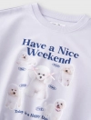 Áo nỉ bé gái có hình in, gấu áo bo chun gọn gàng.