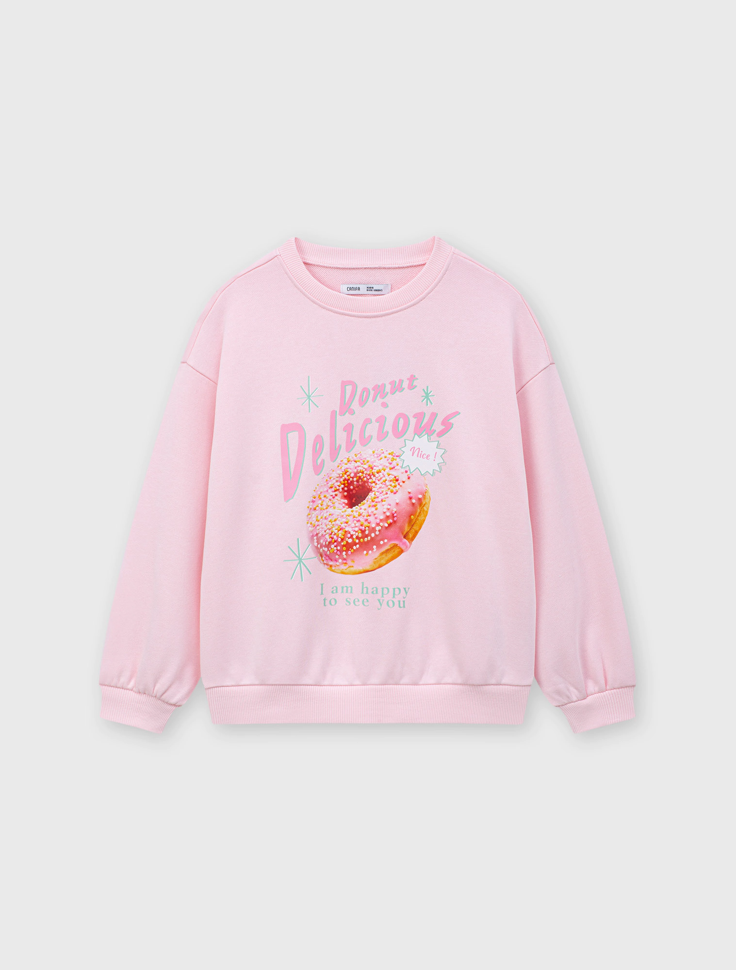 Áo nỉ bé gái. Phom áo cơ bản, cổ tròn dễ mặc. Màu sắc tươi sáng, hình in dễ thương phù hợp bé gái. Chất liệu Cotton pha mềm mại, giữ ấm tốt