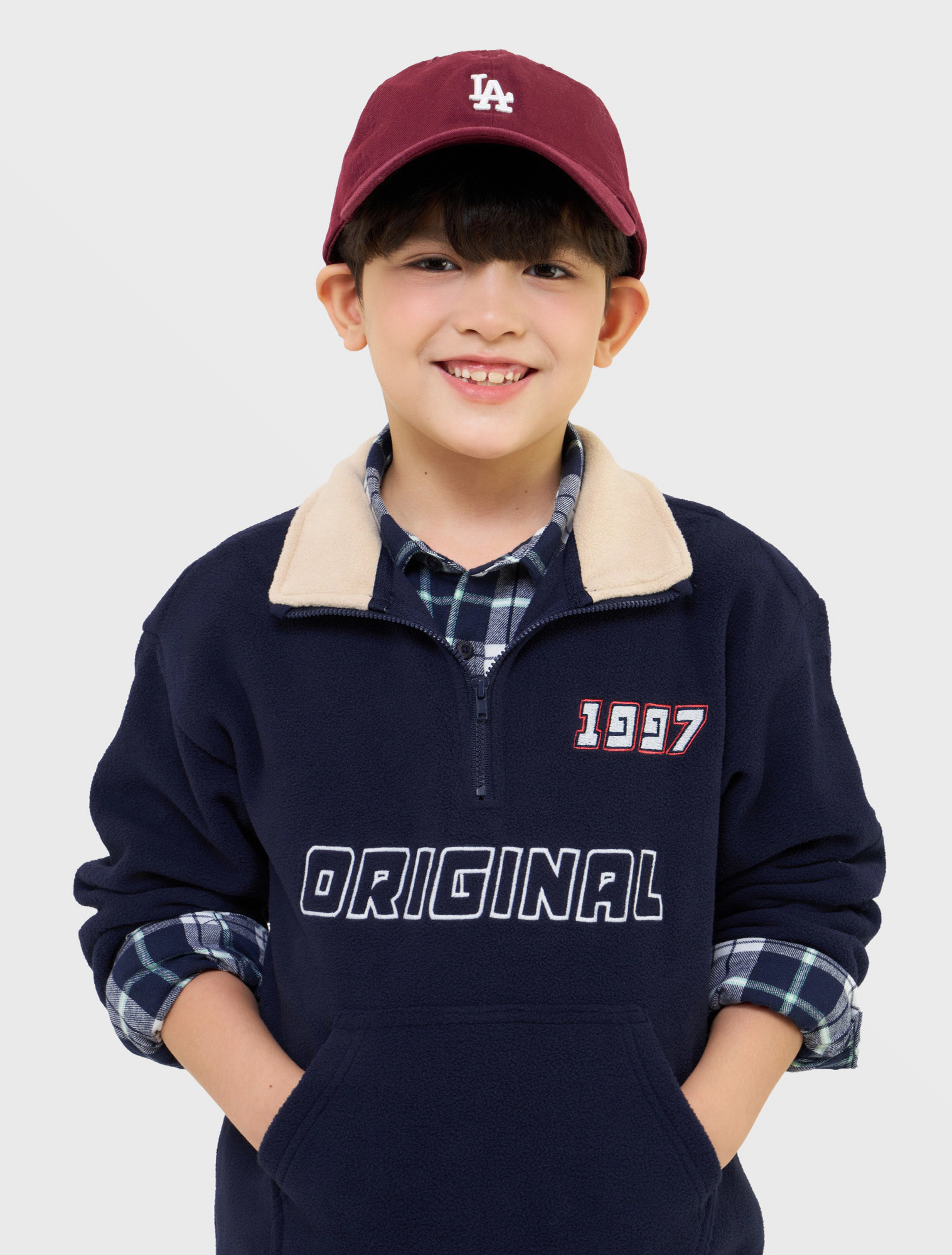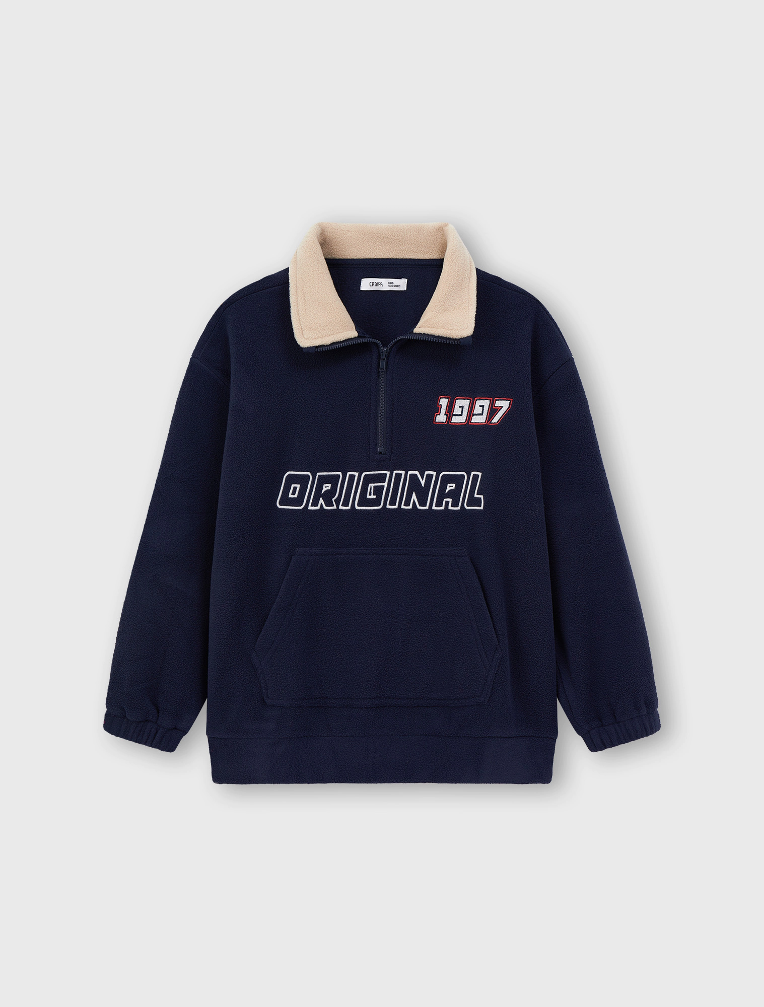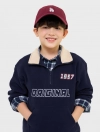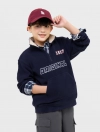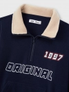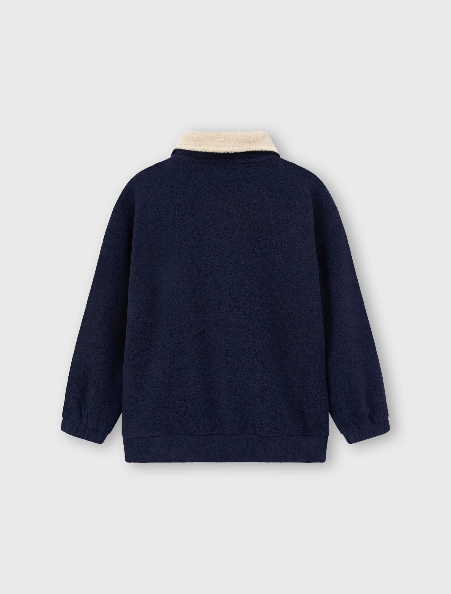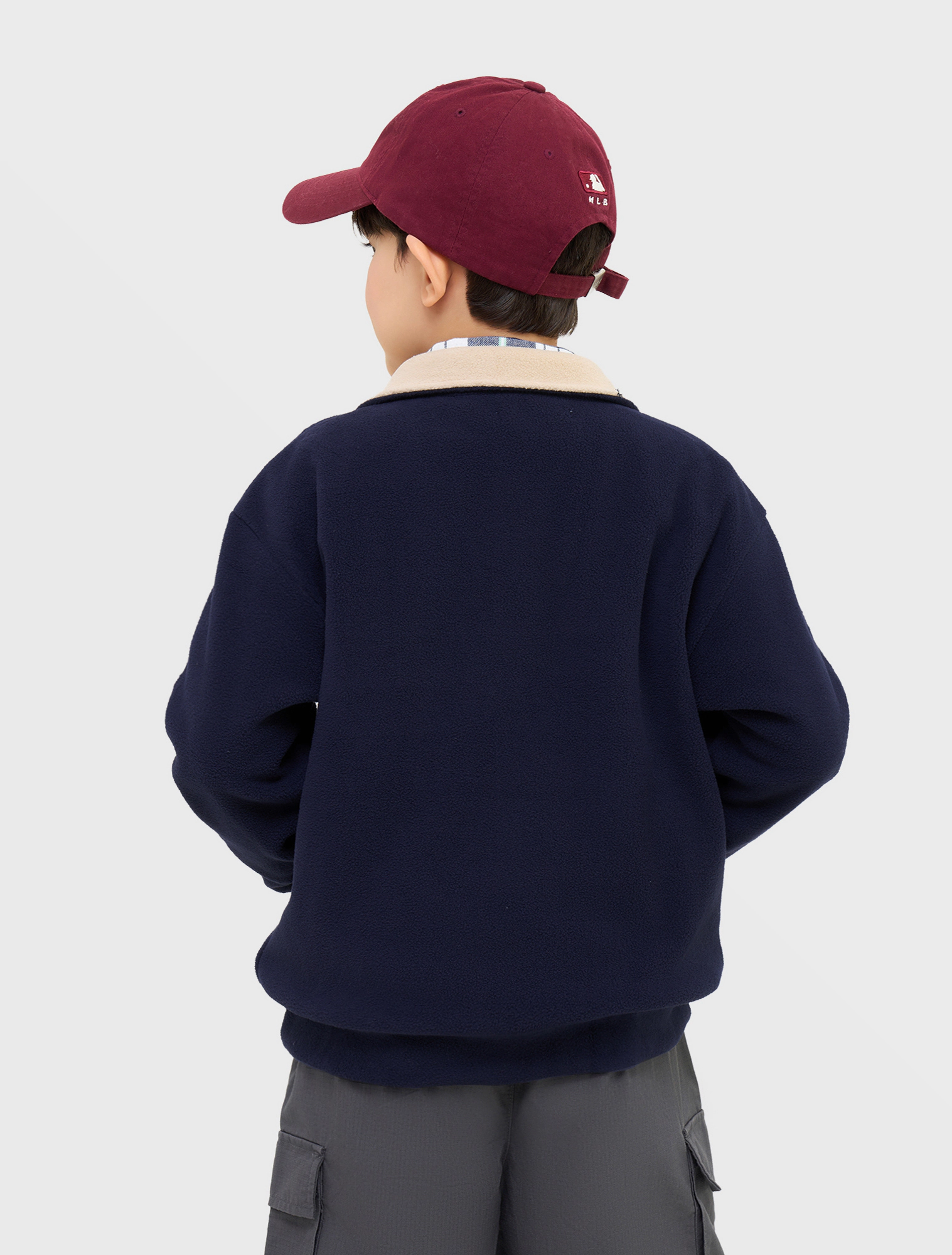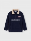 Áo nỉ bé trai cổ bẻ phối màu, chất liệu ấm áp mềm mại, màu sắc ấm áp phù hợp cho mùa đông, hình thêu tinh tế nhẹ nhàng, phù hợp cho các bé sử dụng trong nhiều hoàn cảnh.