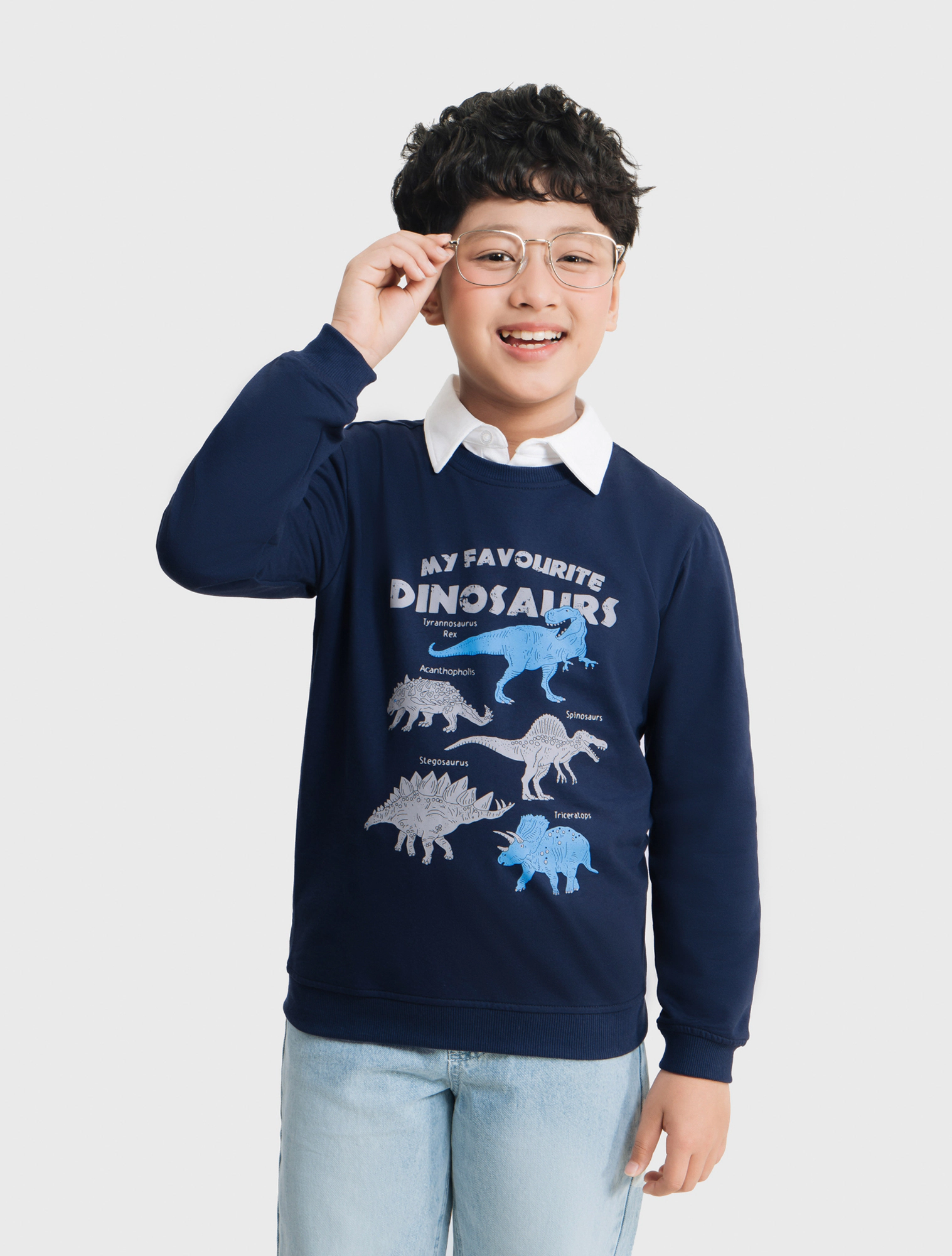 Áo nỉ dài tay chất liệu vảy cá độ dày vừa phải, phom dáng basic, hình in khỏe khoắn năng động, phù hợp cho thời tiết giao mùa.