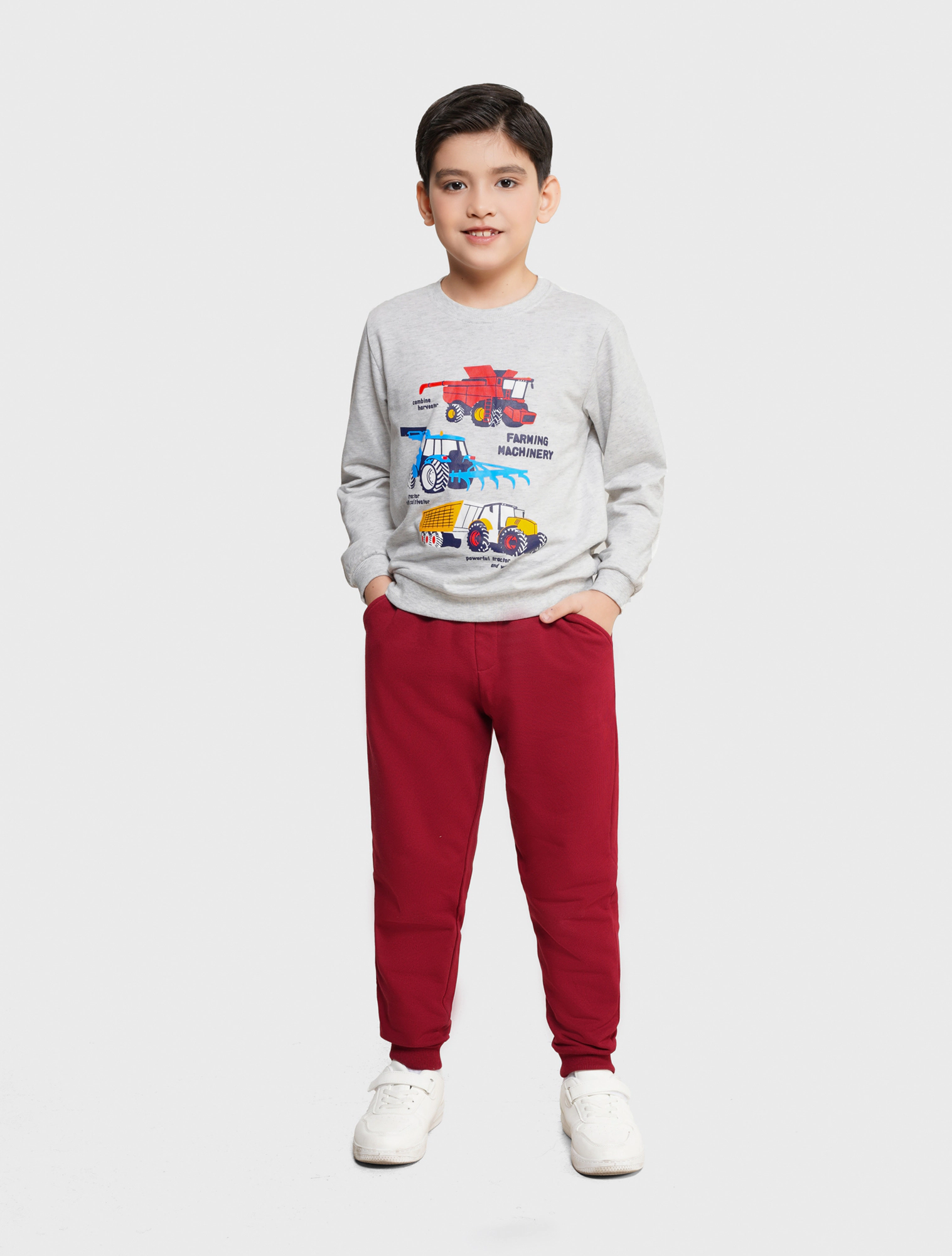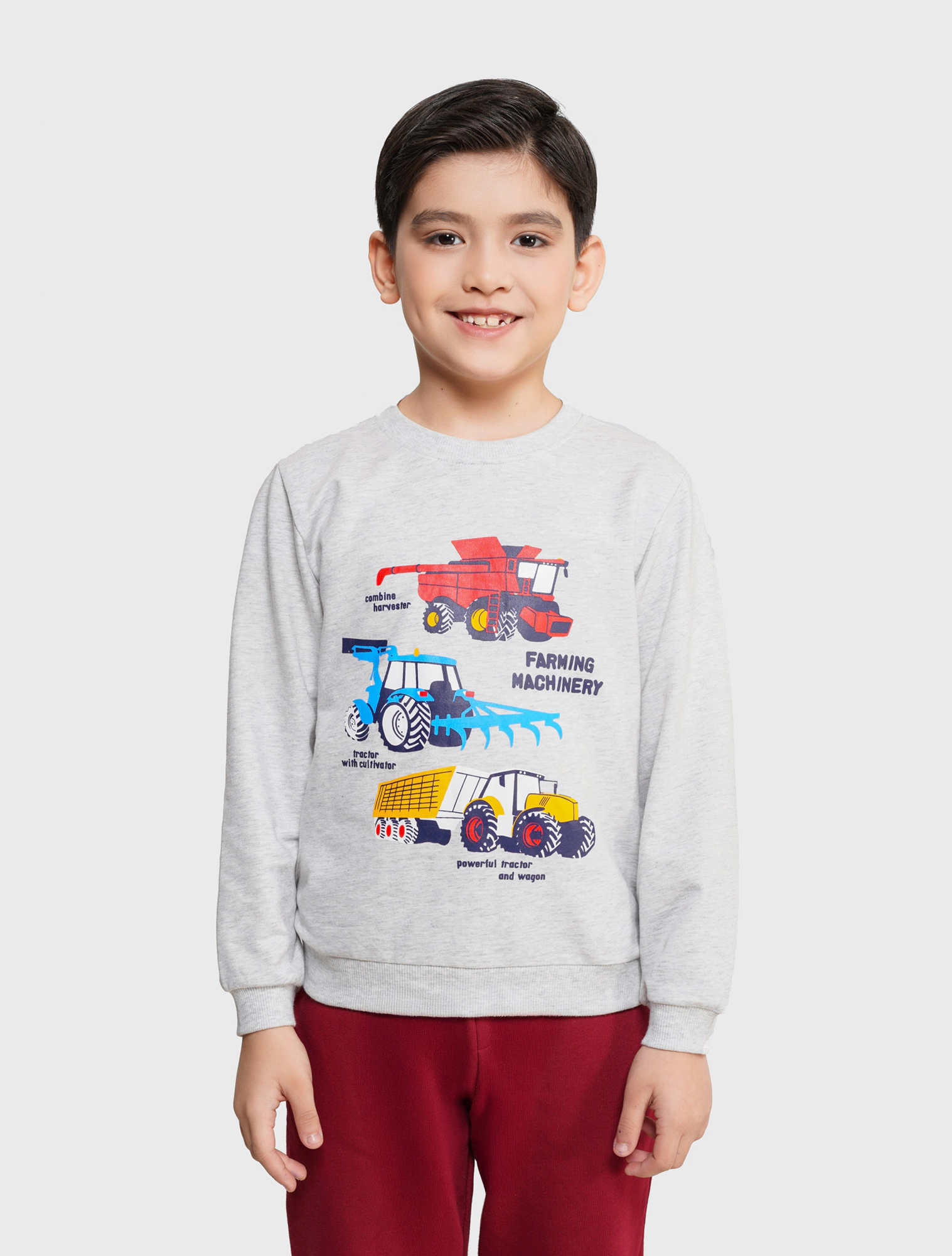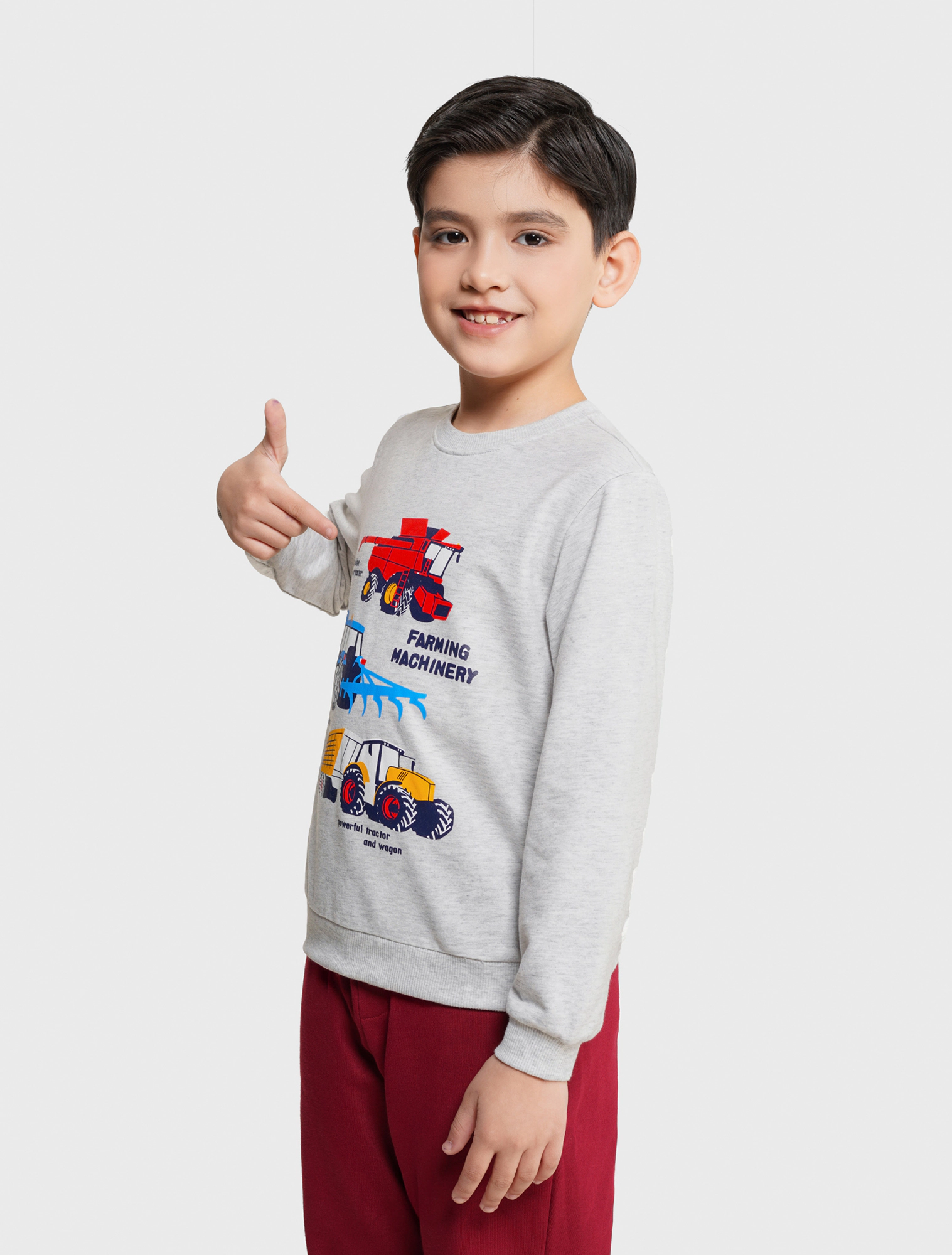 Áo nỉ dài tay chất liệu vảy cá độ dày vừa phải, phom dáng basic, hình in nhóm nhỏ đáng yêu ngộ nghĩnh, phù hợp cho các bạn nhỏ ở thời tiết giao mùa.