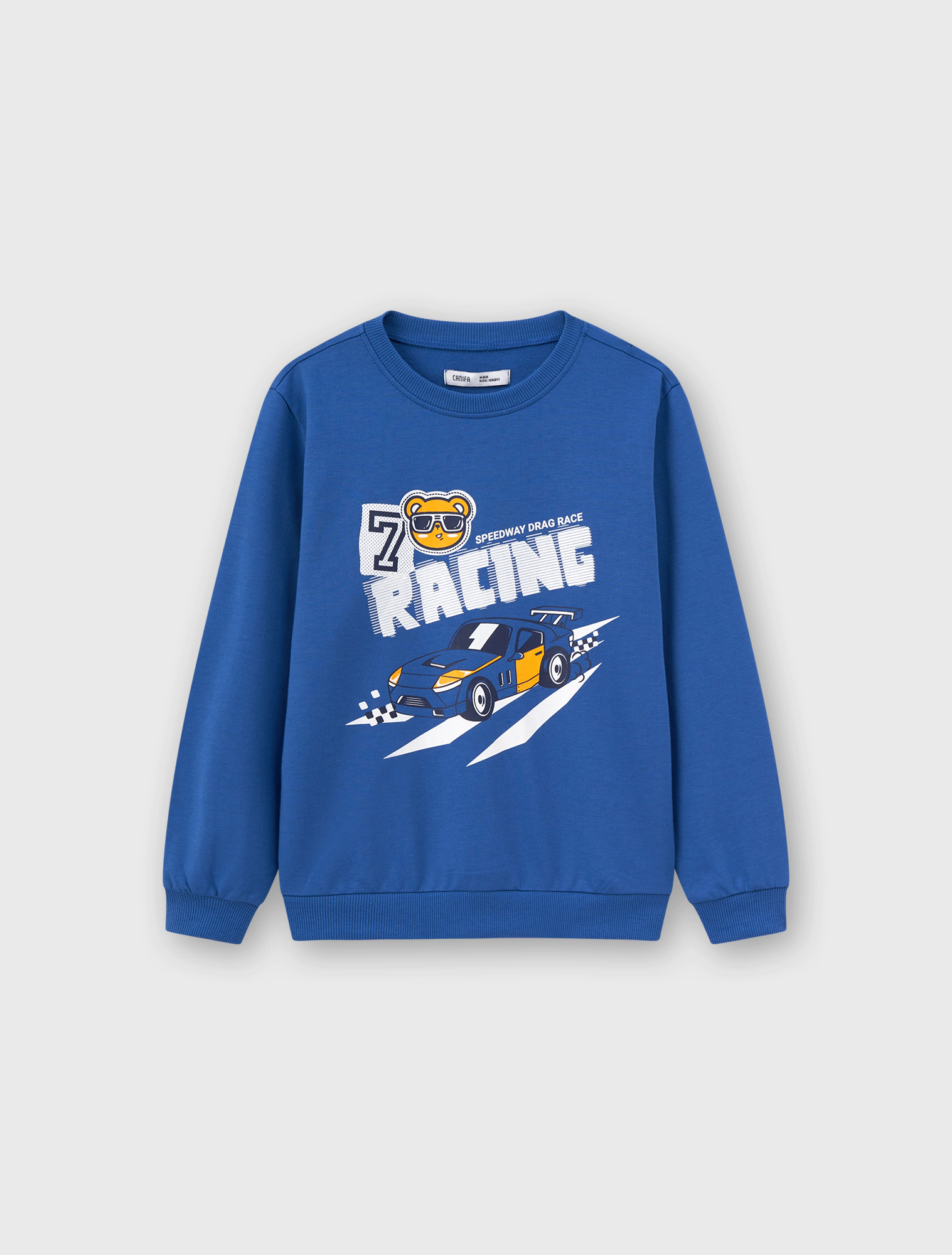 Áo nỉ dài tay chất liệu vảy cá độ dày vừa phải, phom dáng basic, hình in nhóm nhỏ đáng yêu ngộ nghĩnh, phù hợp cho các bạn nhỏ ở thời tiết giao mùa.