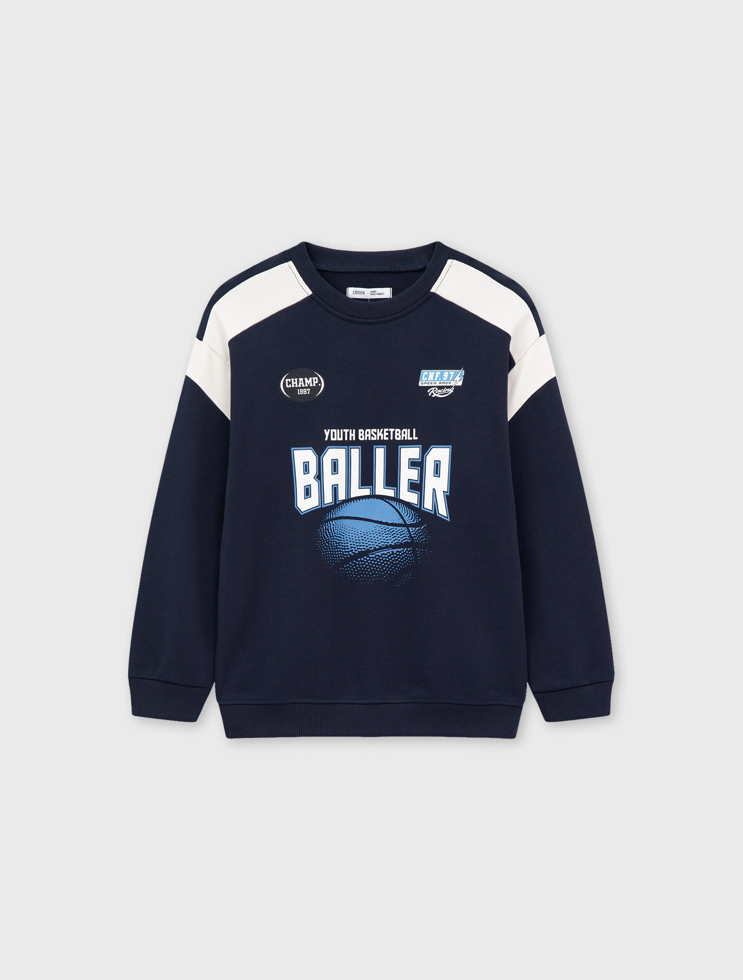 Áo nỉ bé trai mix màu can phối vai, phom dáng relax, màu sắc đa dạng, hình in sport khỏe khoắn có nhiều lựa chọn cho các bé.