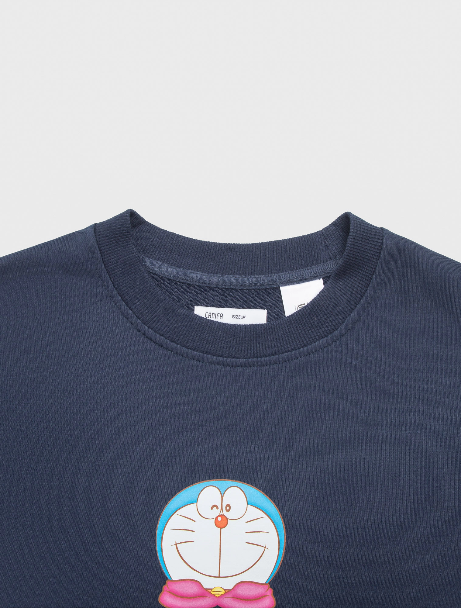 Áo nỉ vòng lông unisex người lớn. Phom dáng cơ bản dễ mặc, màu sắc trung tính phù hợp cả nam và nữ. Hình in Doraemon hiện đại. Tay áo có may mác trang trí. Chất liệu cotton pha mềm mại giữ ấm tốt.