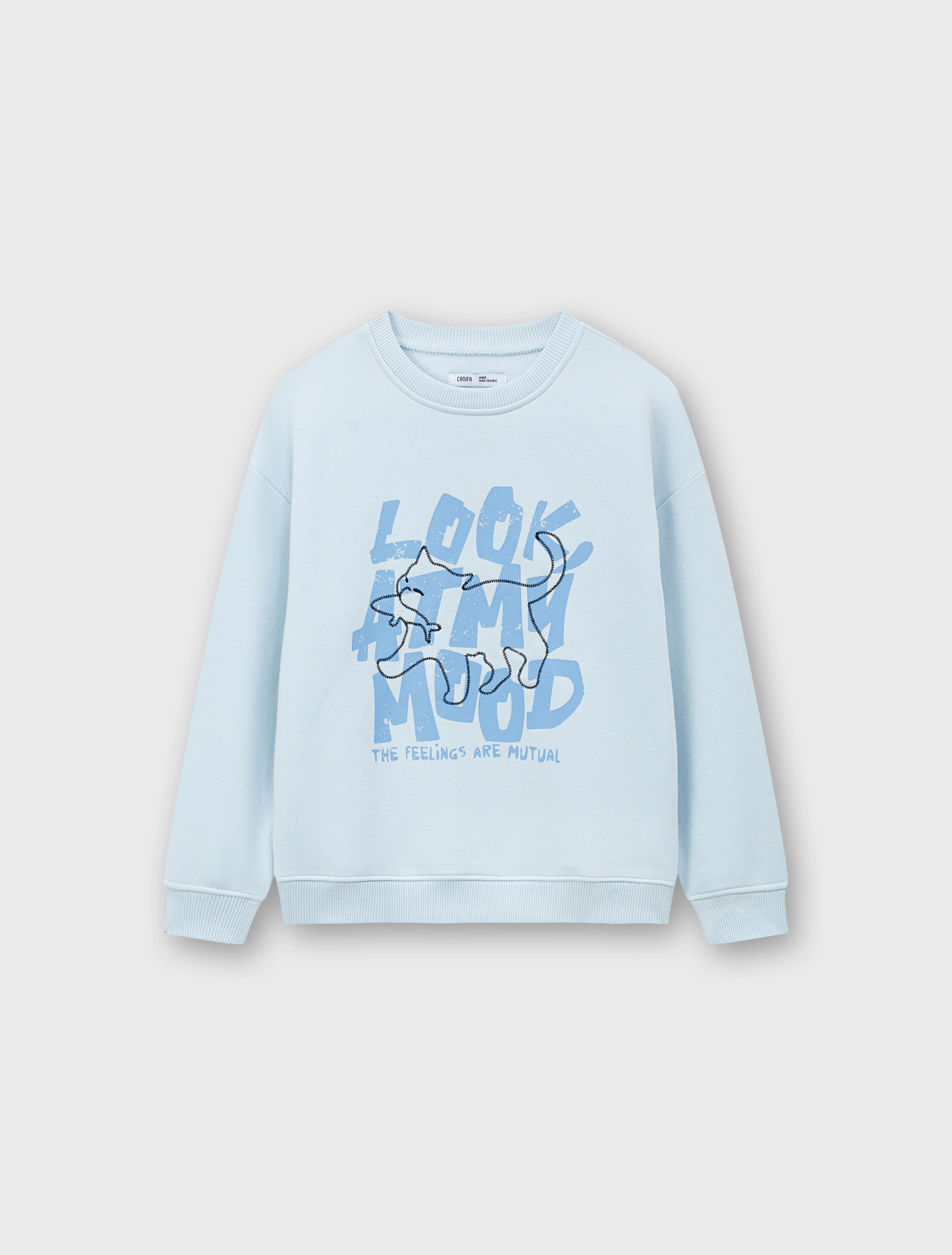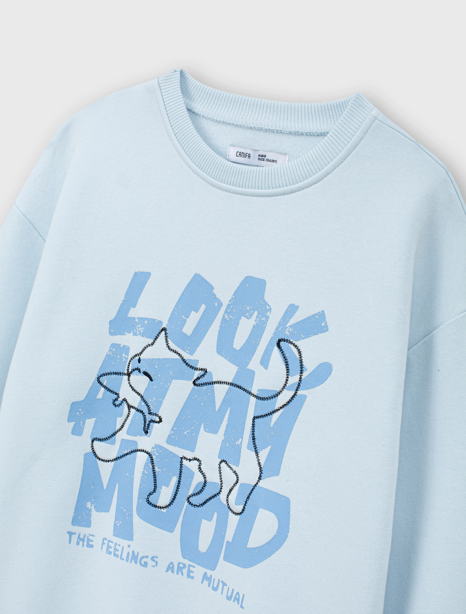 Áo nỉ unisex chất liệu cào bông, hình in to khỏe khoắn tạo sự năng động cho trẻ.