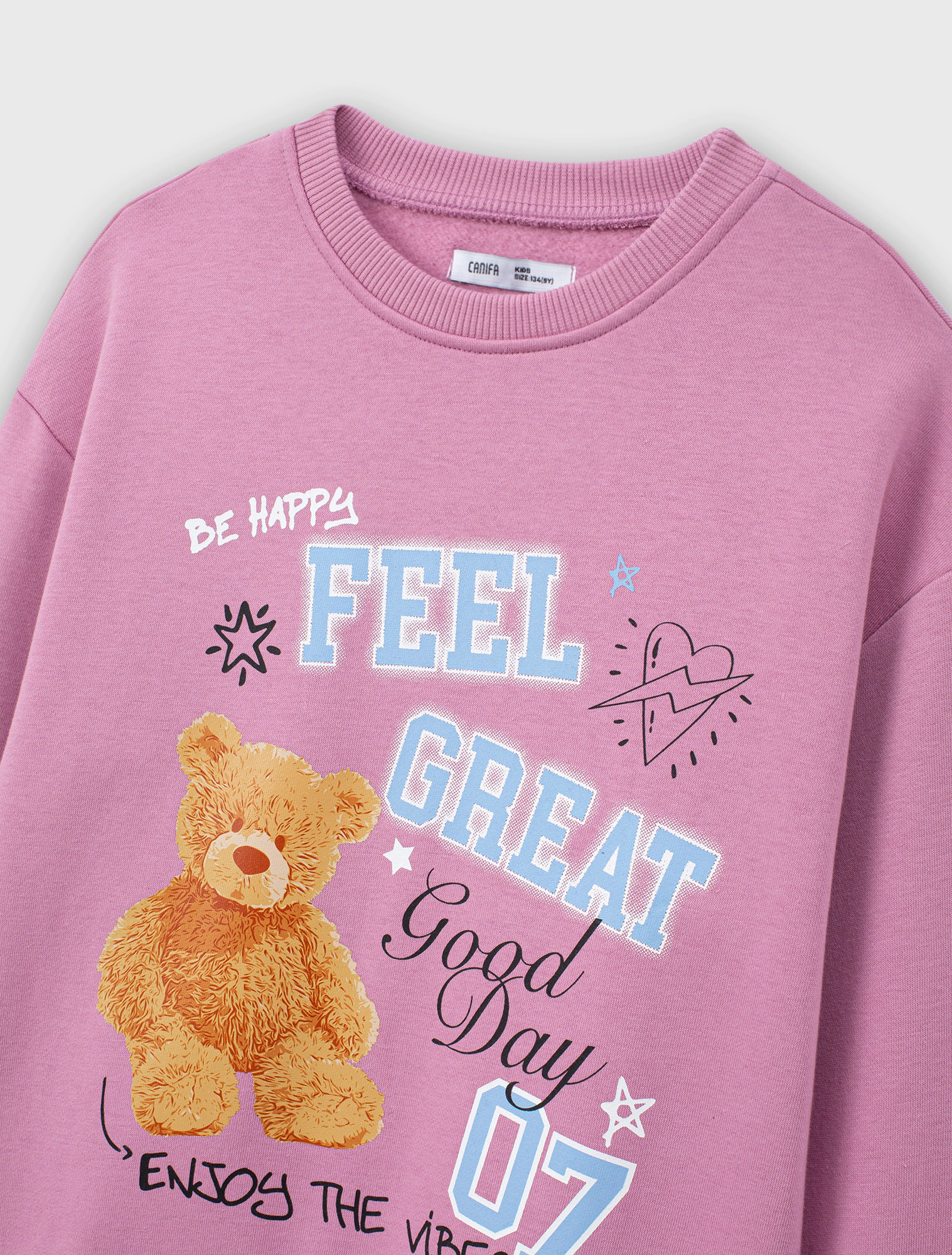 Áo nỉ unisex chất liệu cào bông, hình in to khỏe khoắn tạo sự năng động cho trẻ.