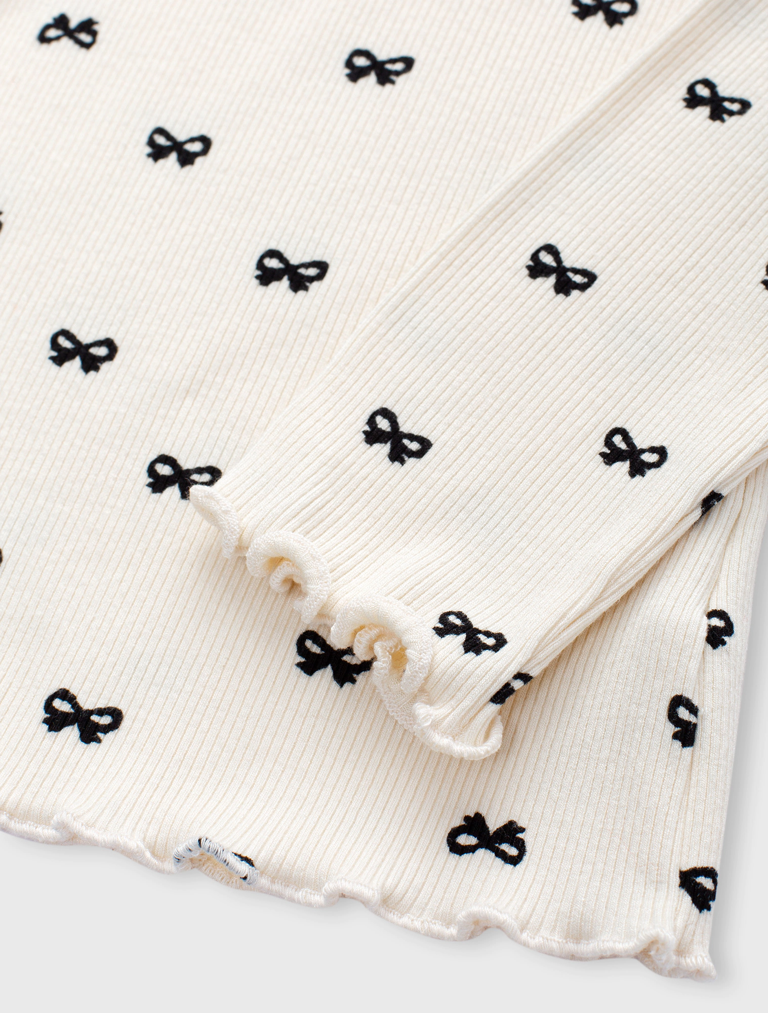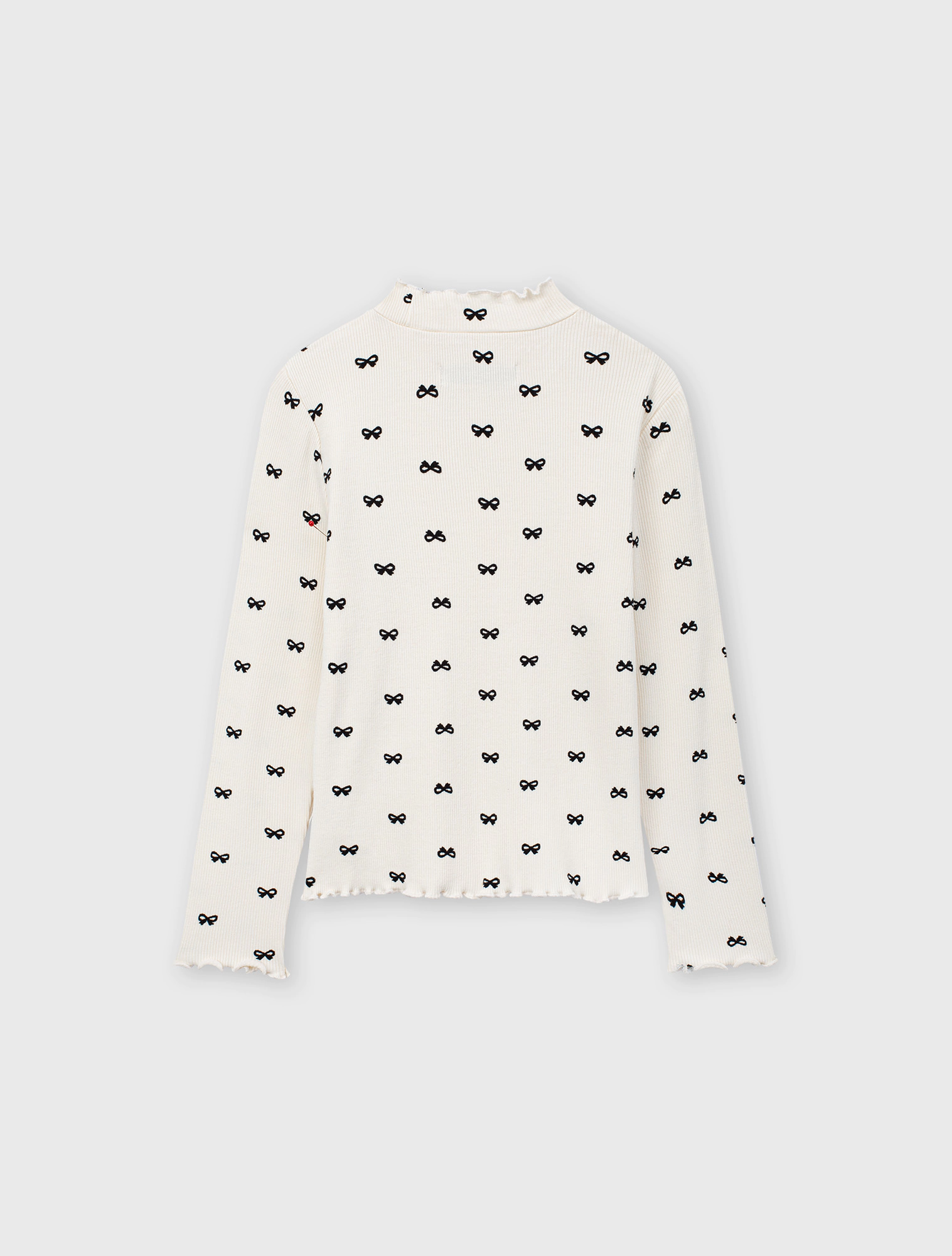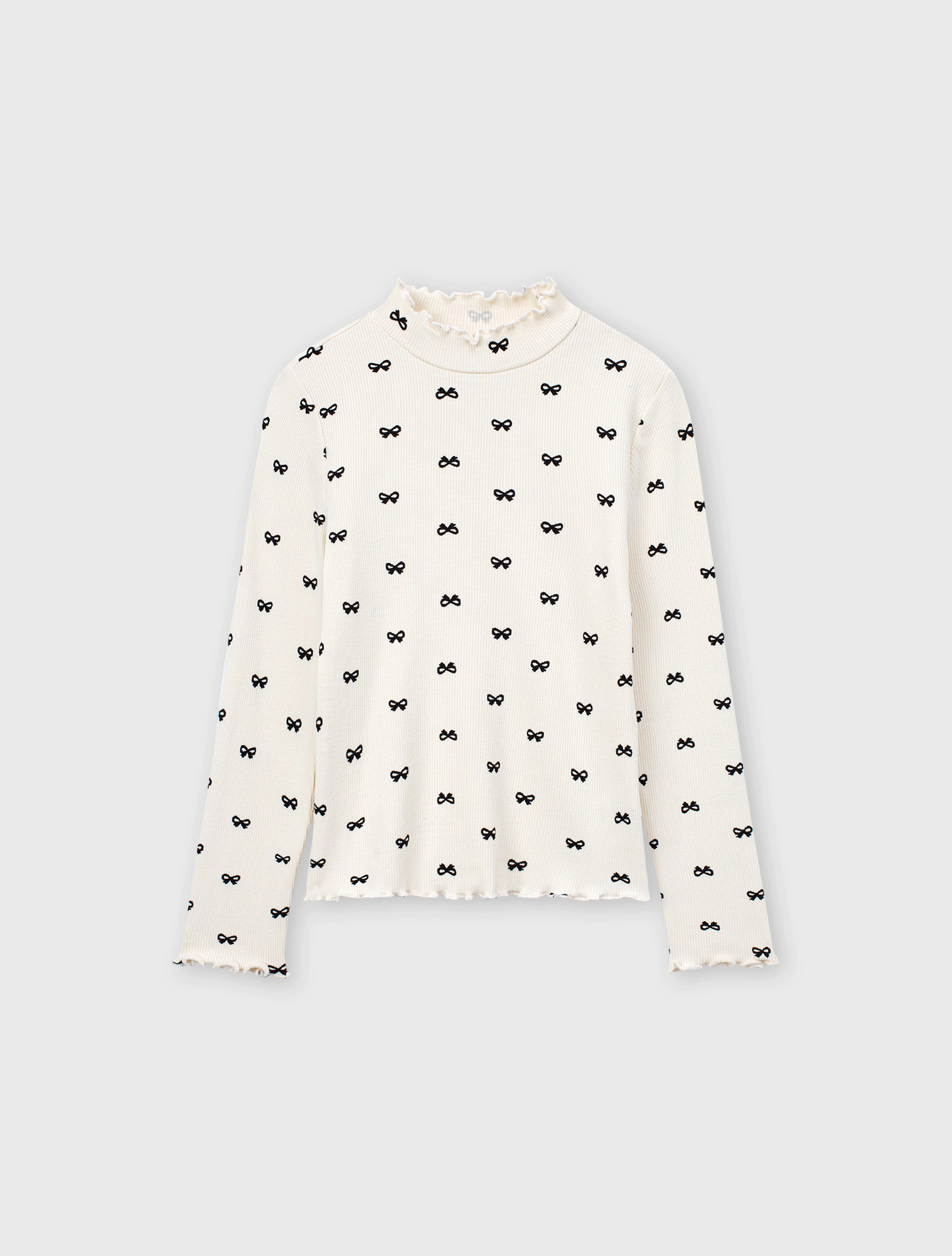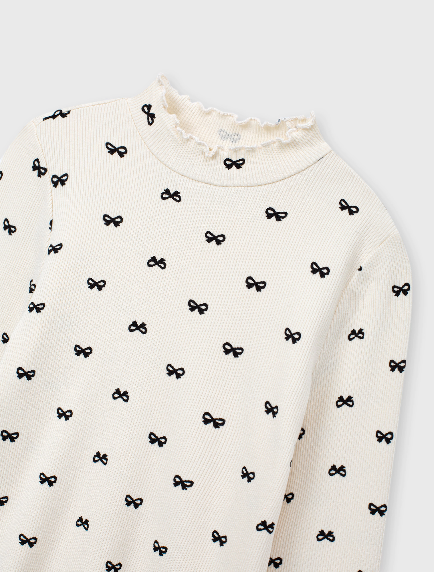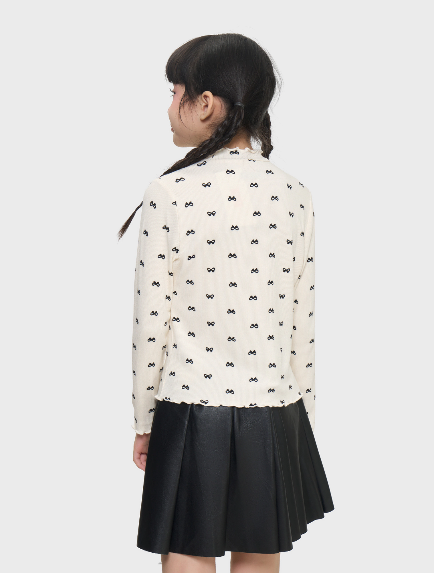 Áo phông dài tay bé gái với thiết kế phom dáng ôm gọn gàng, cổ cao 3cm dễ mặc.