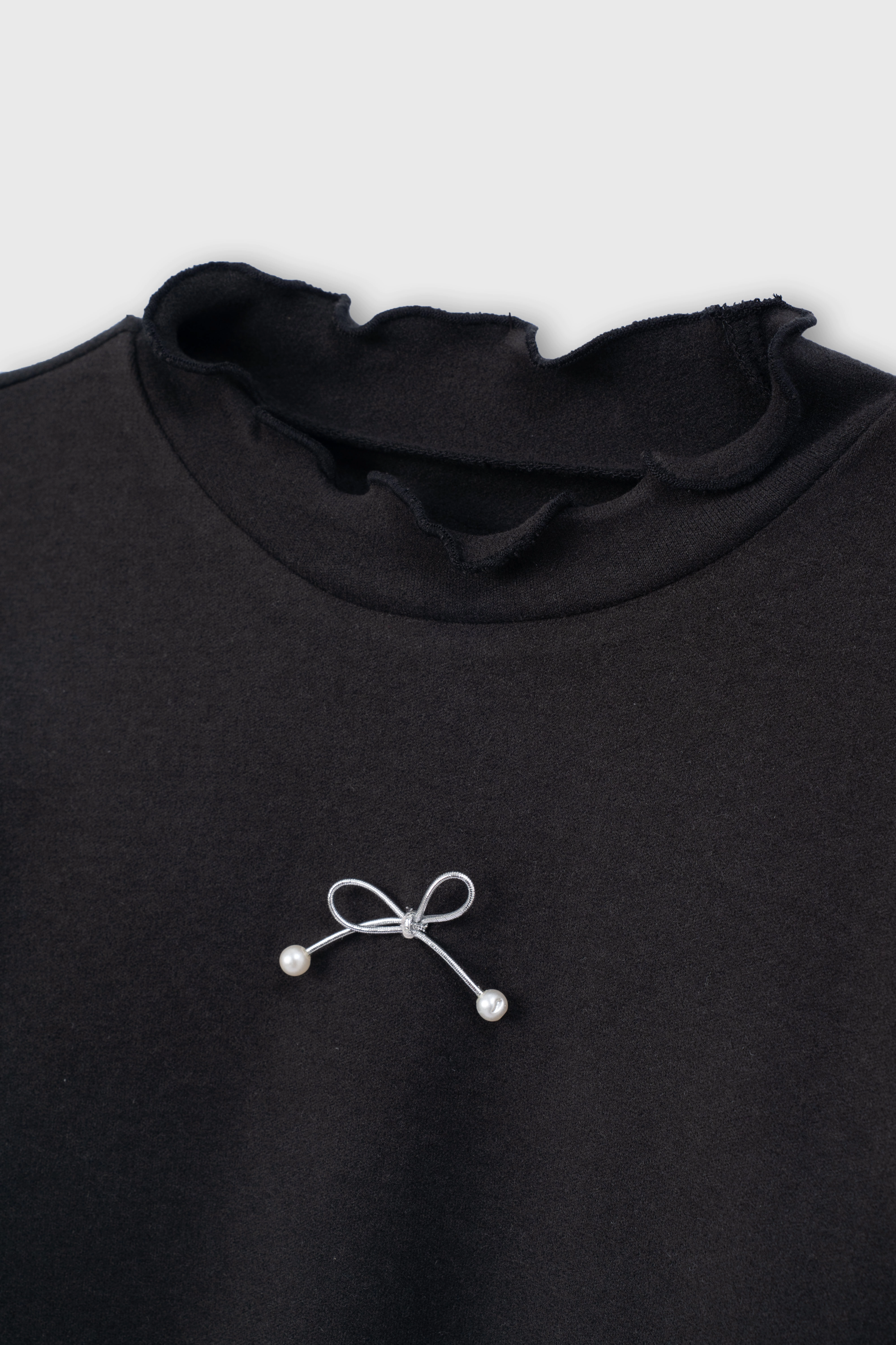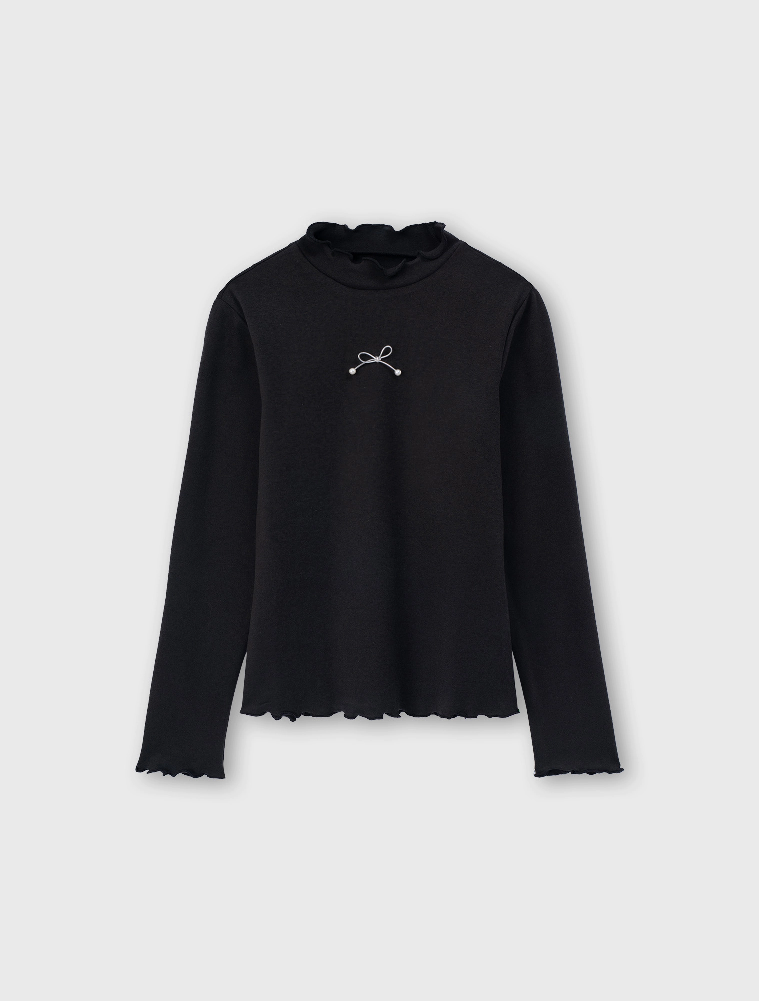 Áo phông dài tay bé gái với thiết kế phom dáng ôm gọn gàng, cổ cao 3cm dễ mặc.