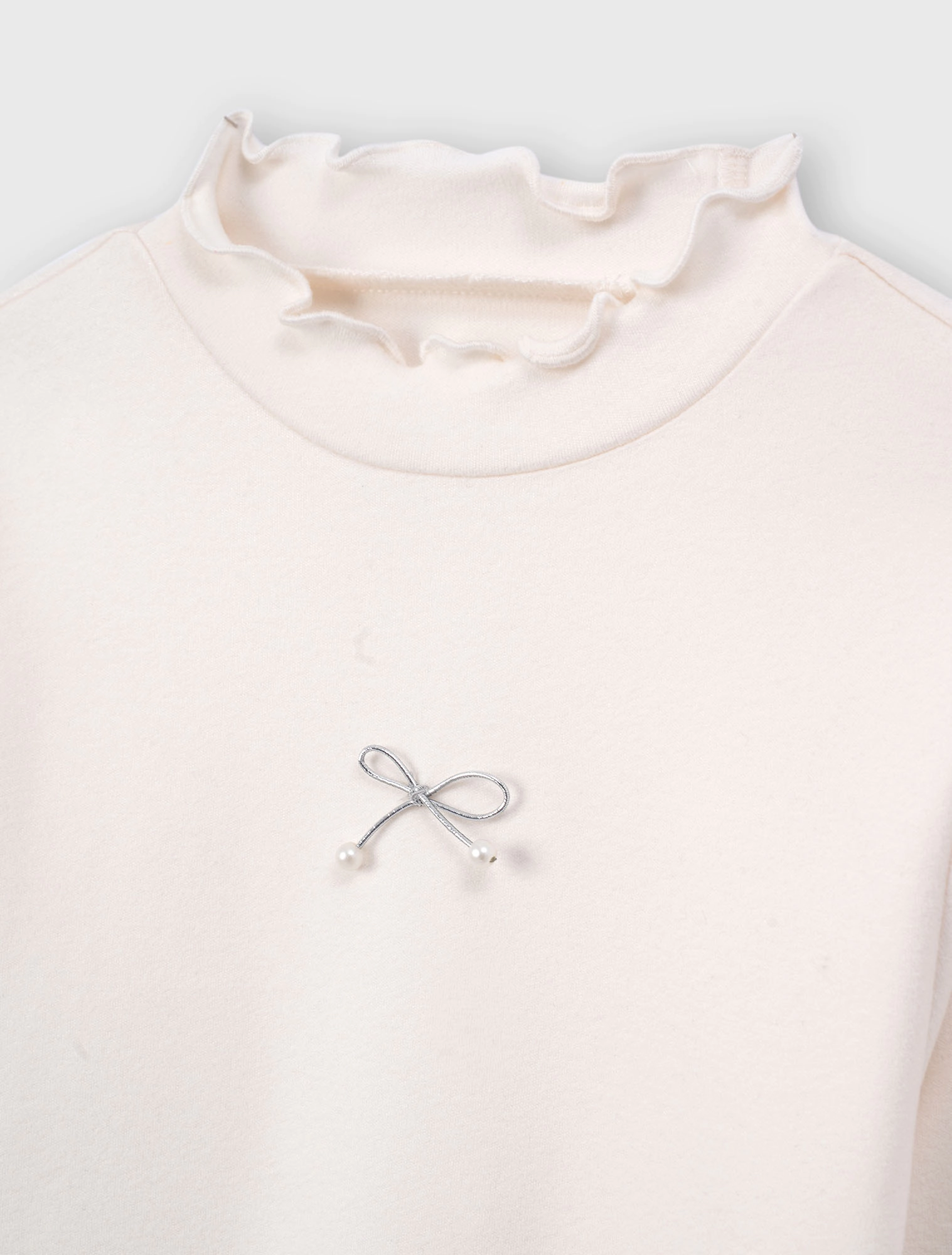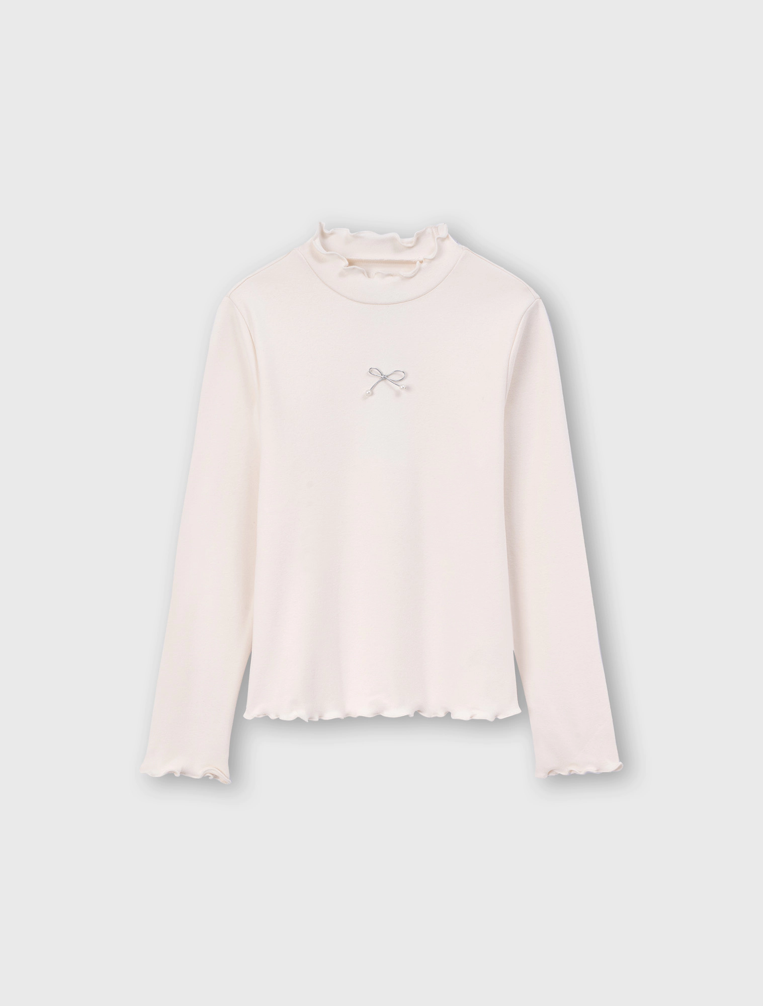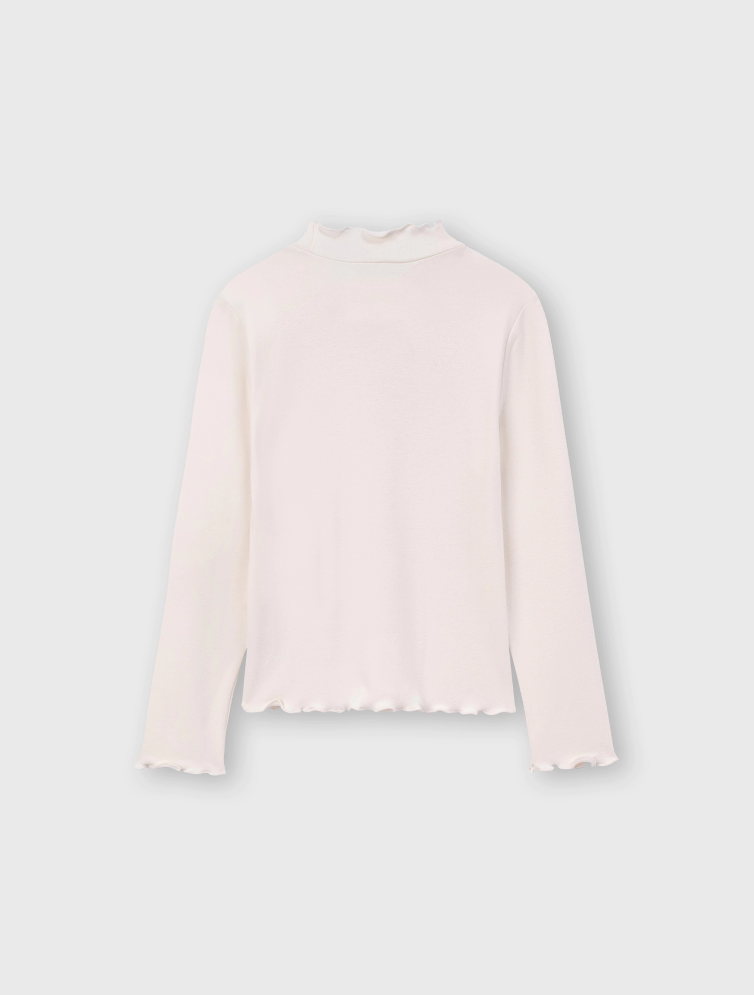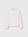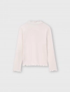 Áo phông dài tay bé gái với thiết kế phom dáng ôm gọn gàng, cổ cao 3cm dễ mặc.