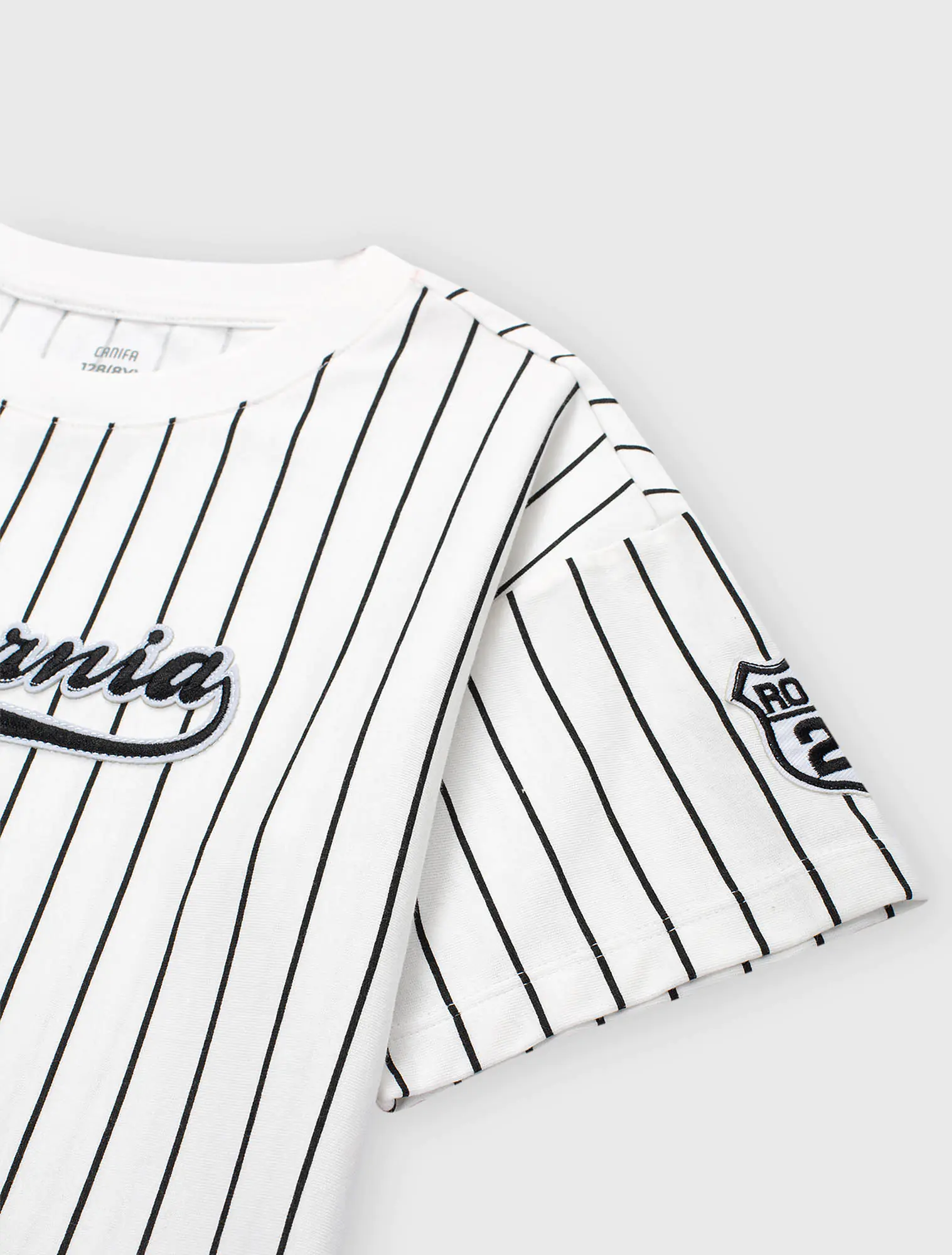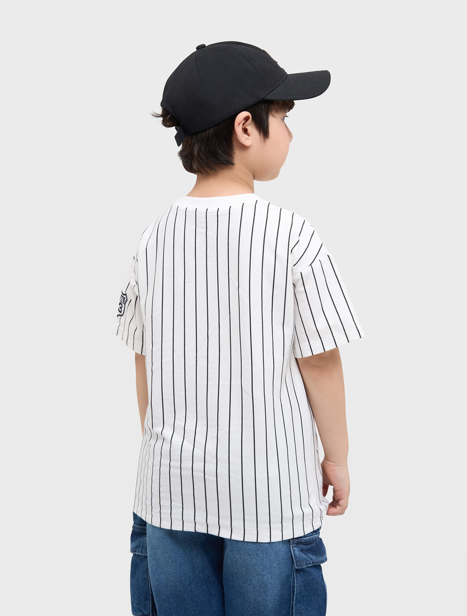 Áo phông bé trai kẻ sọc, chất liệu cotton mềm mại thoáng mát, hình patch khỏe khoắn năng động tạo sự mới mẻ cho các bạn nhỏ sử dụng trong nhiều hoạt động.