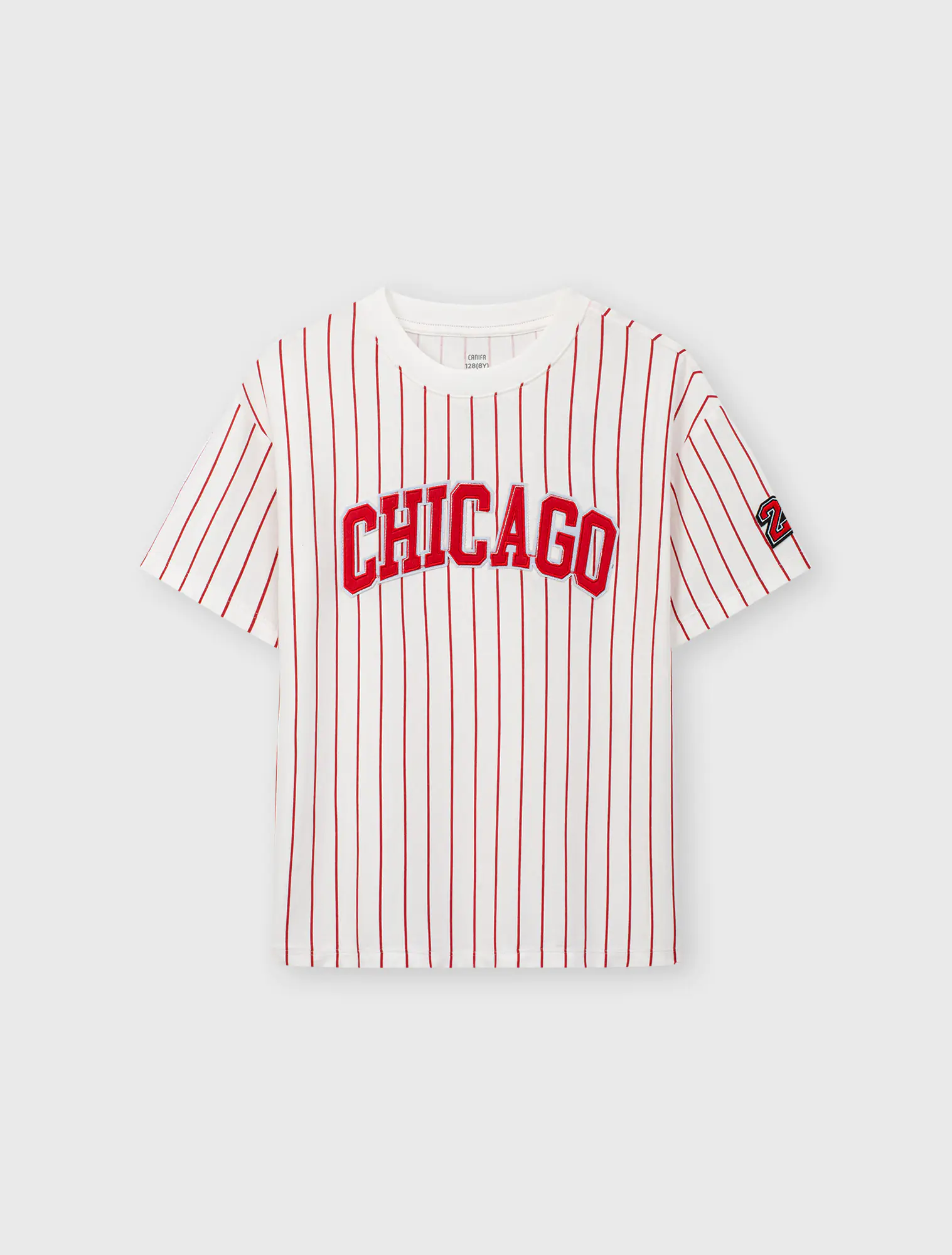 Áo phông bé trai cotton kẻ sọc đính patch trang trí