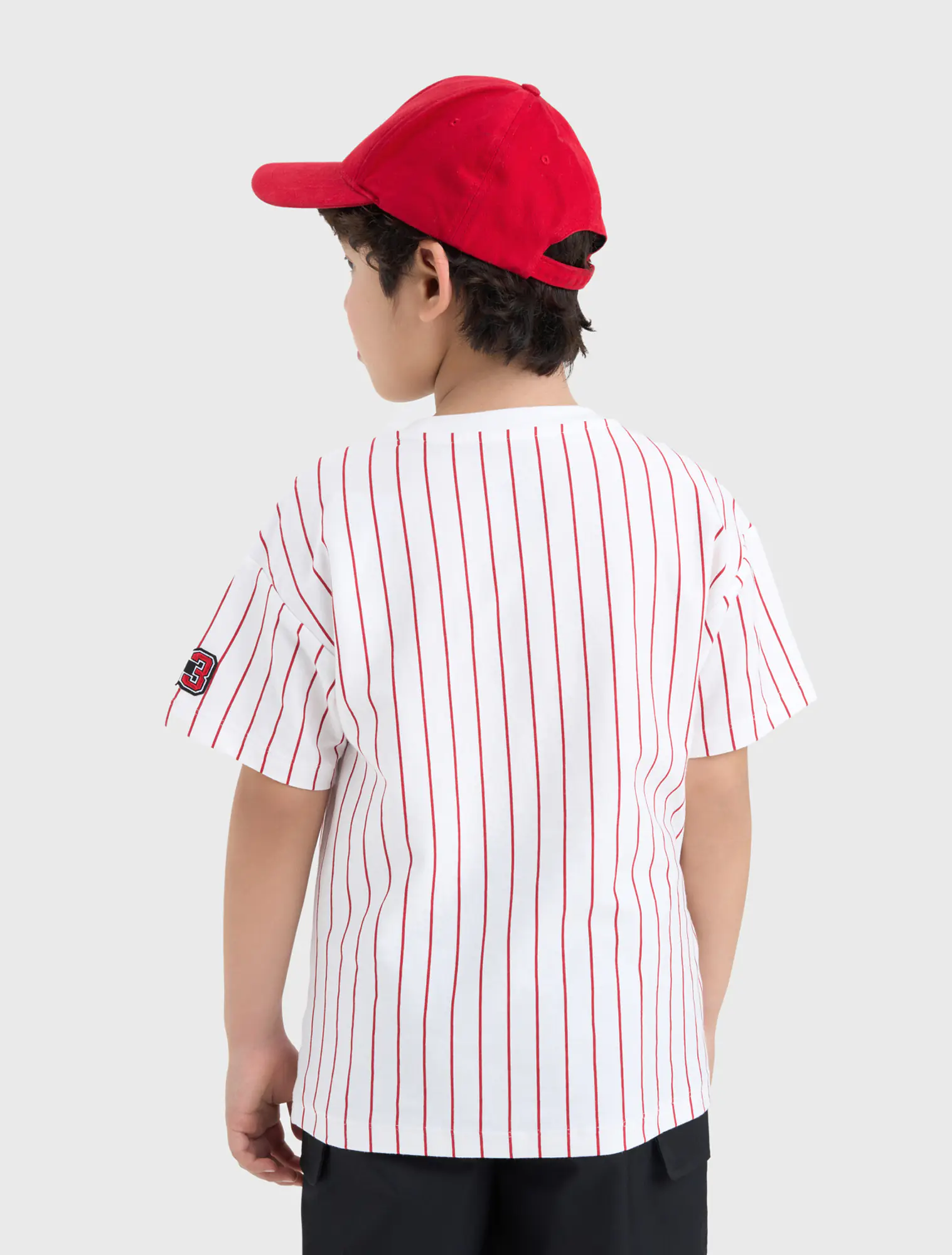 Áo phông bé trai kẻ sọc, chất liệu cotton mềm mại thoáng mát, hình patch khỏe khoắn năng động tạo sự mới mẻ cho các bạn nhỏ sử dụng trong nhiều hoạt động.
