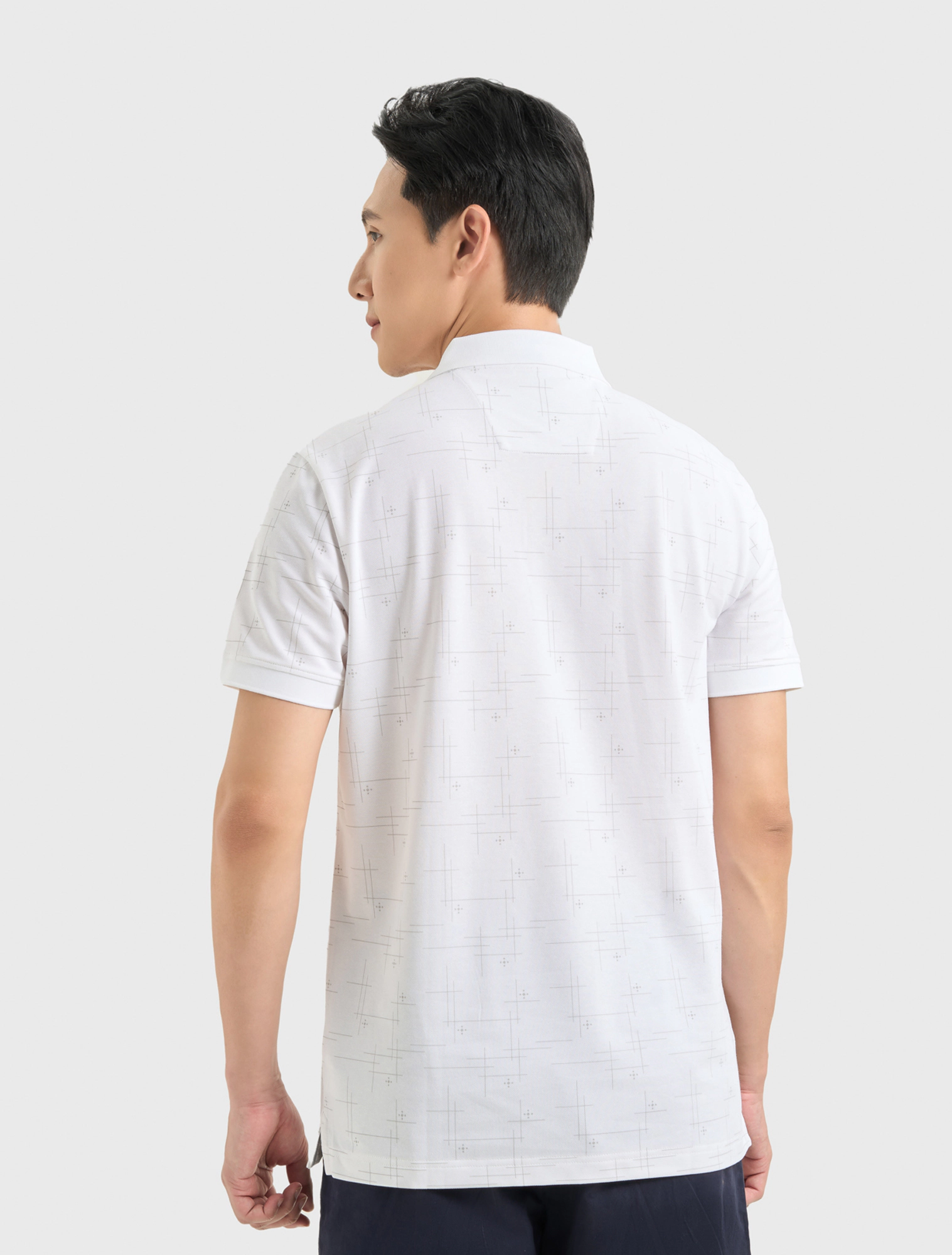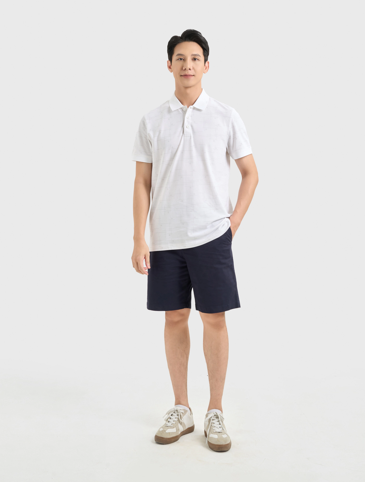 Áo polo nam basic có cổ bẻ, nẹp cài cúc, bề mặt vải có họa tiết in tạo điểm nhấn mới cho sản phẩm.