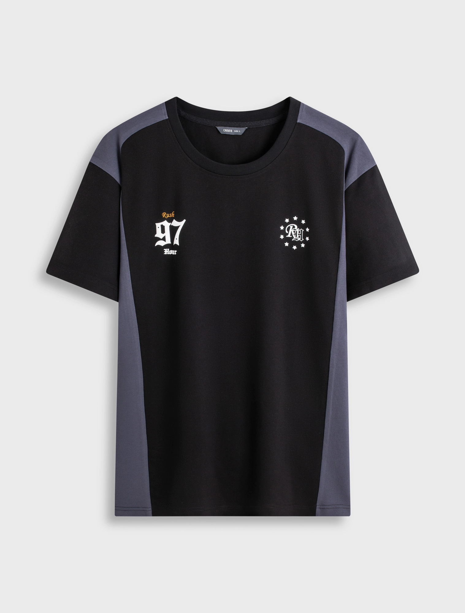 Áo phông nam phom relax với điểm nhấn phối thân trẻ trung, đồ họa nổi bật. Phù hợp sử dụng trong nhiều hoàn cảnh khác nhau