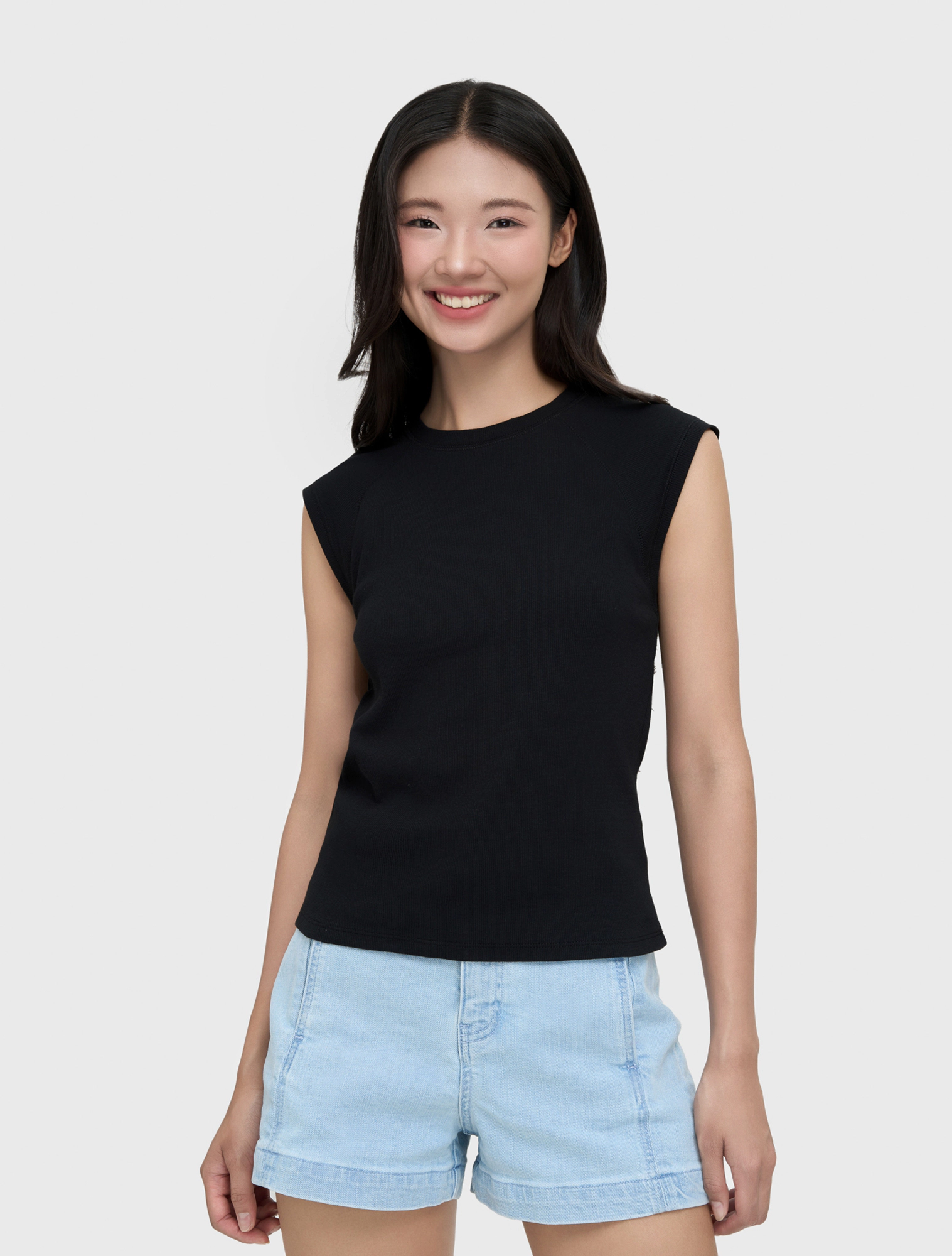 Áo phông nữ dáng ôm vai chờm bắt trend, với chất liệu vải dệt rib tạo sự thoải mái tối đa cho nhg sản phẩm dáng ôm.