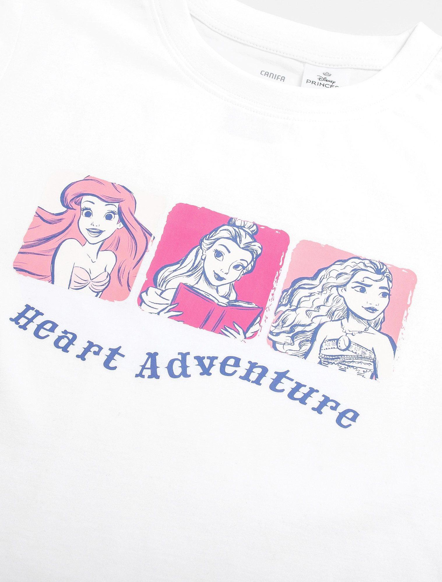 Áo phông ngắn tay nữ in hình Princess Disney. Phom áo baby tee thời trang. Màu sắc tươi sáng, hình in nữ tính. Chất liệu dệt kim 100% Cotton mềm mại, thoáng mát.