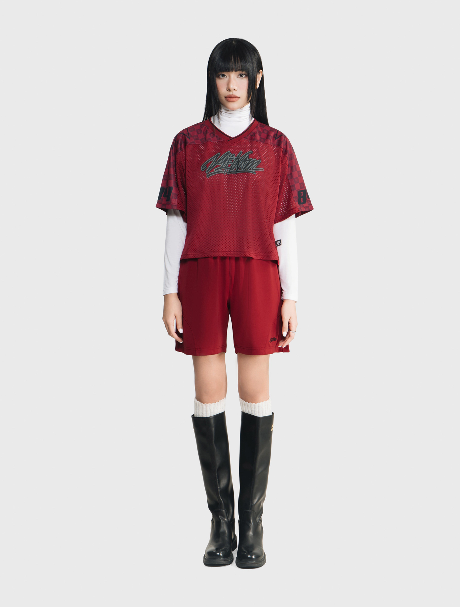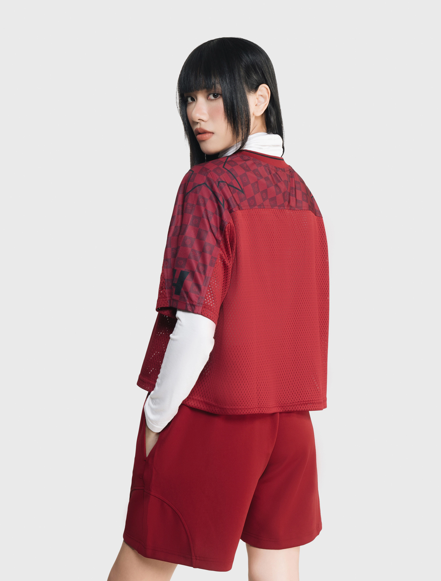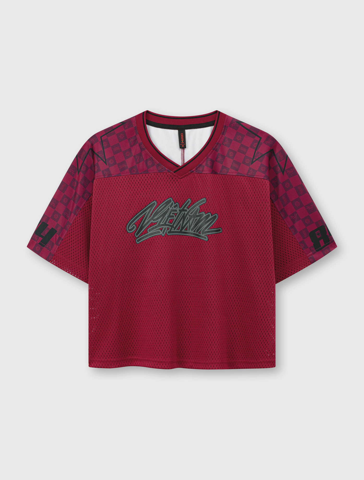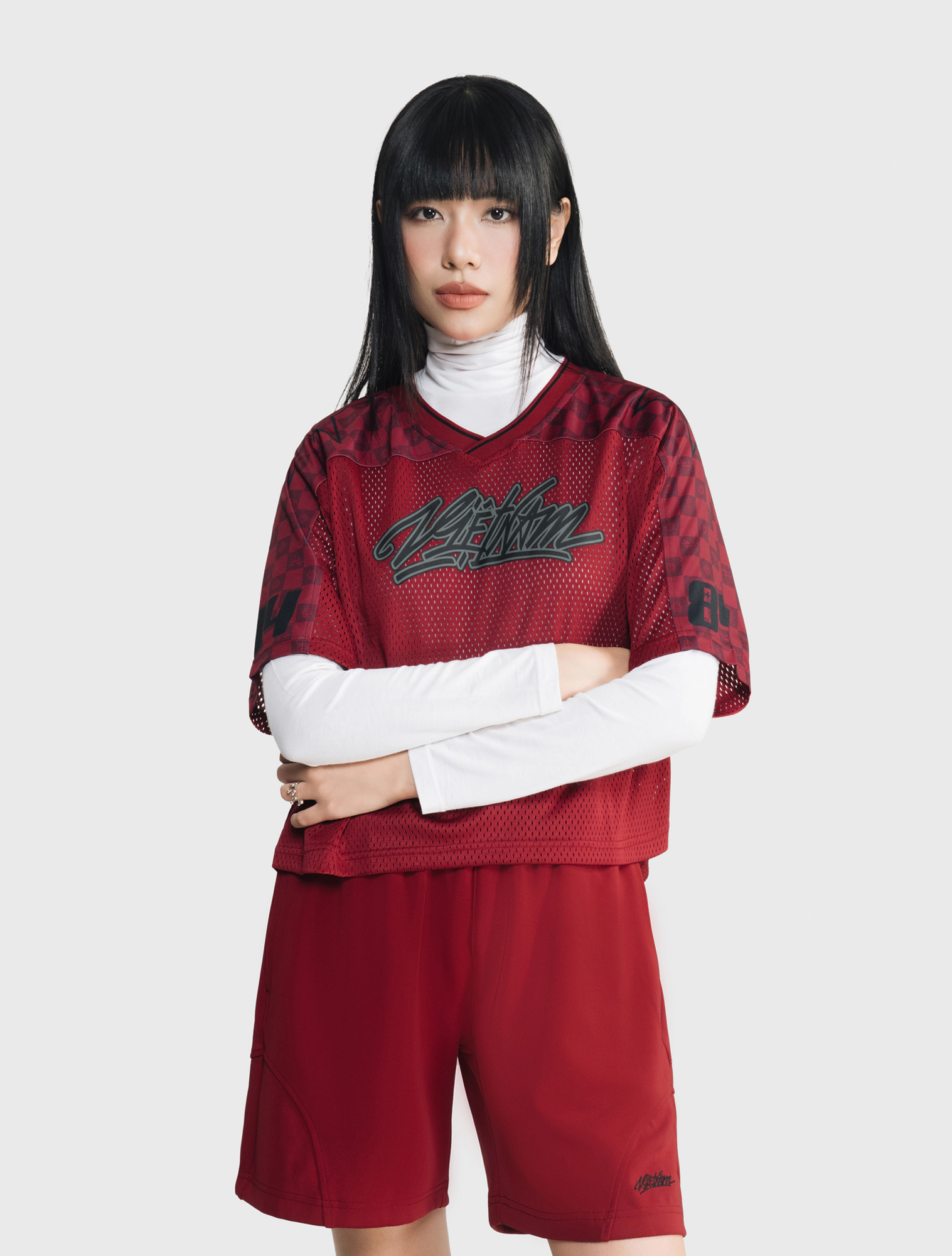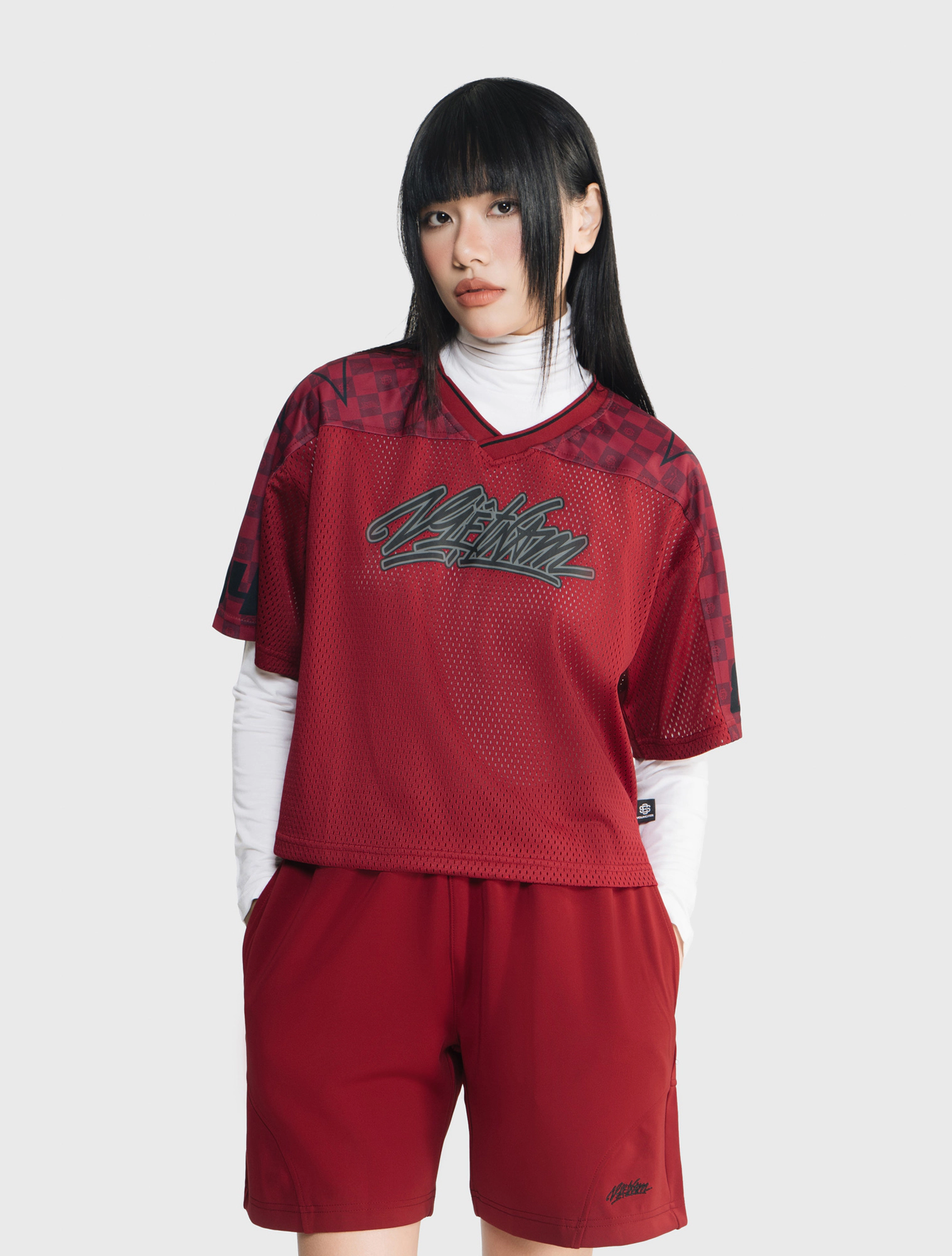 Áo phông lưới form rộng mang dấu ấn street culture với graphic “Vietnam Youngster” nổi bật, phối lưới thể thao và các chi tiết số – sao ở tay áo. Màu đen, đỏ sẫm và xám cho vibe hiphop mạnh mẽ, tạo nên một item đầy cá tính và chuyển động của giới trẻ đô thị.