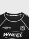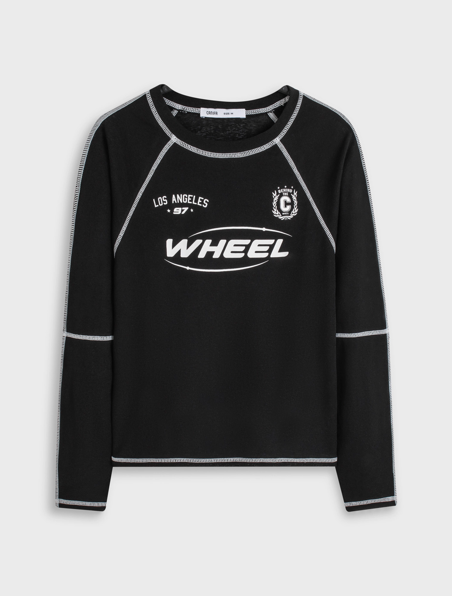 Áo phông nữ dài tay có hình in, dáng ngắn, chất liệu vải dệt kiểu kết hợp với chi tiết phối chỉ ấn tượng tạo nên 1 sản phẩm có style năng động, trẻ trung và thời trang.