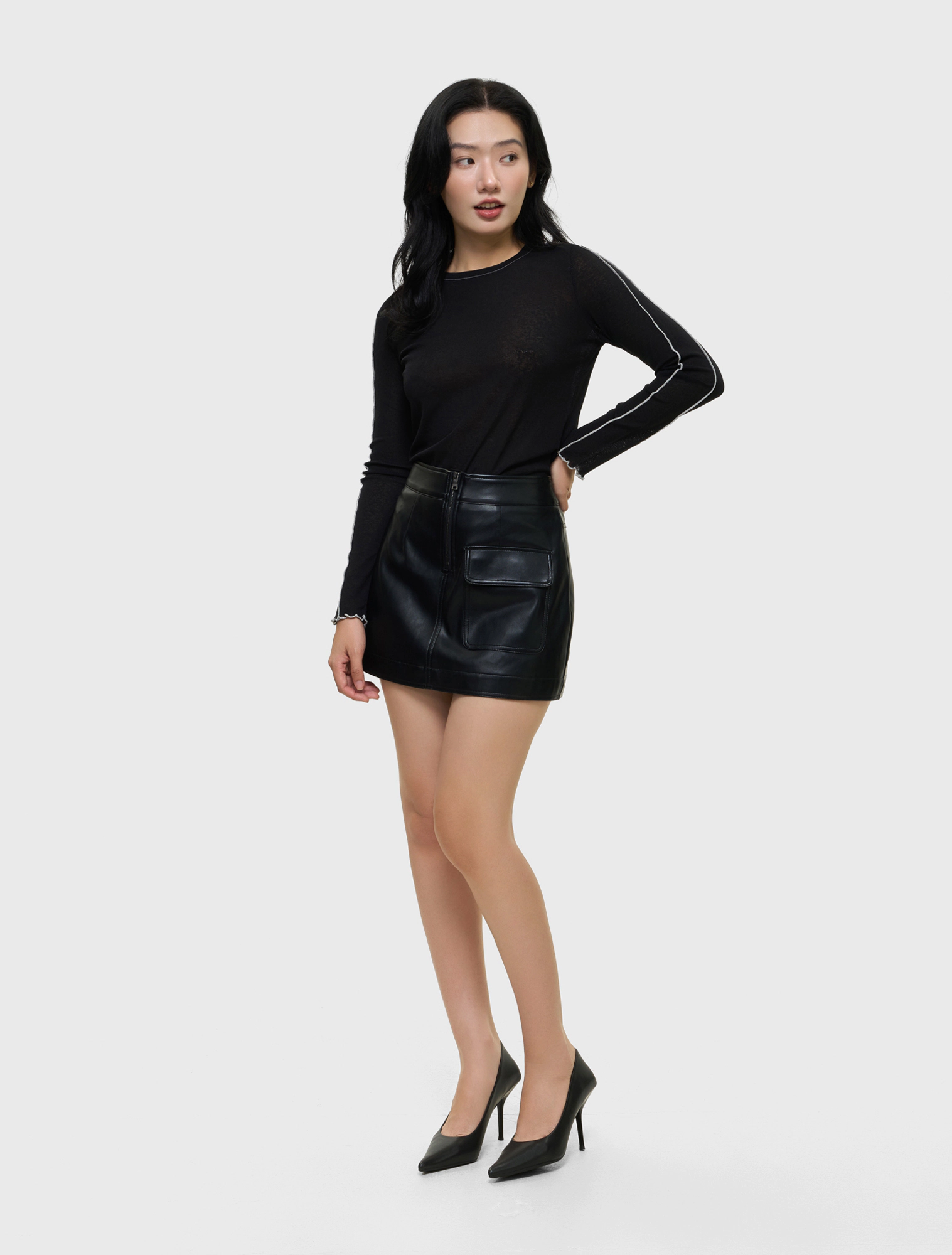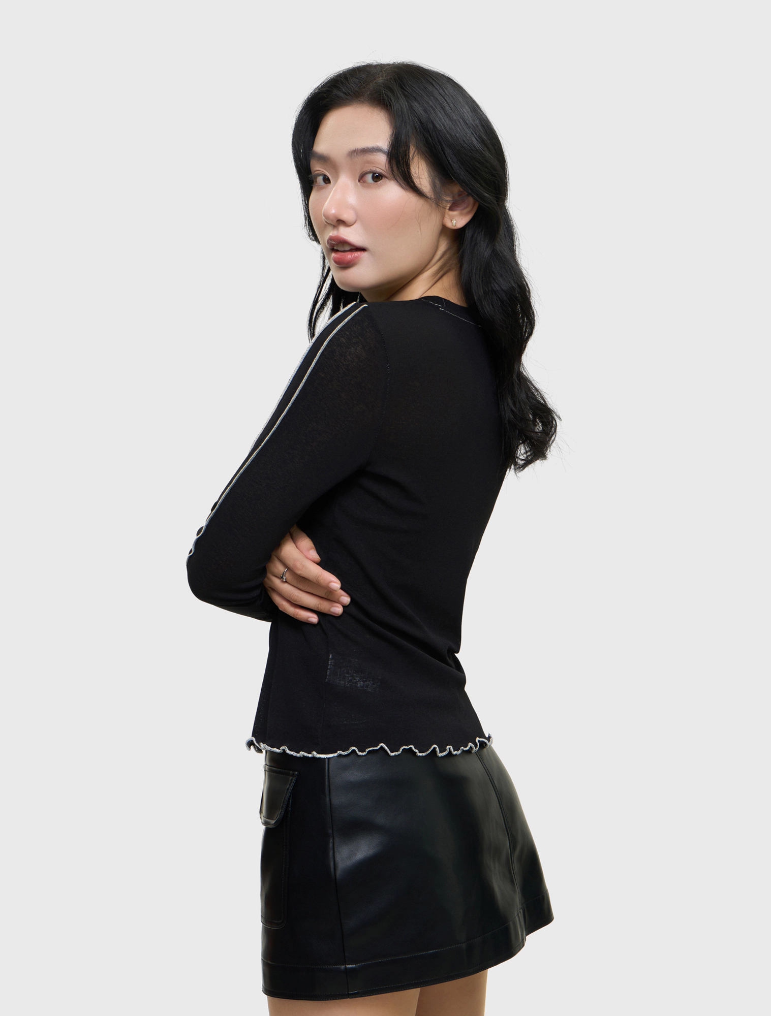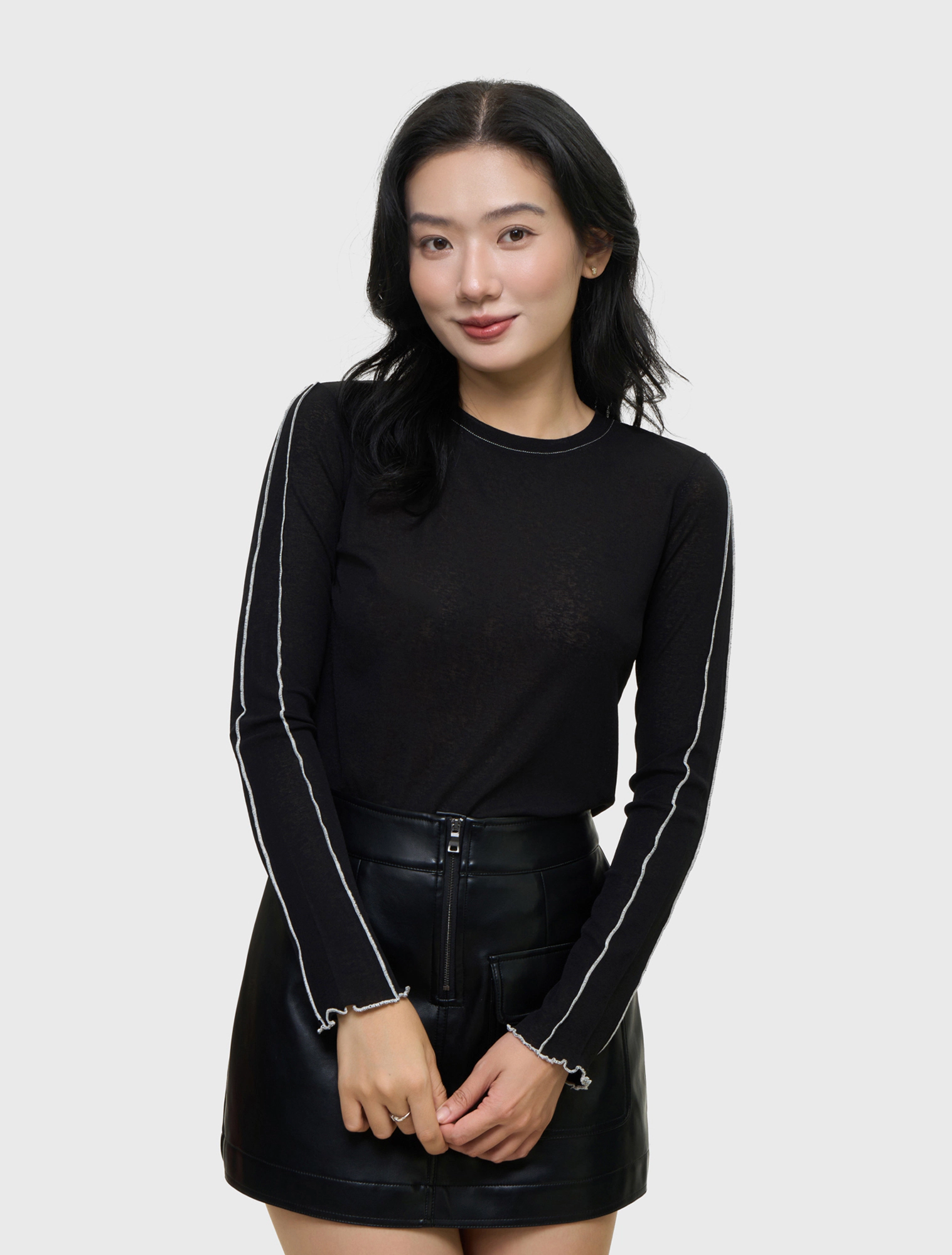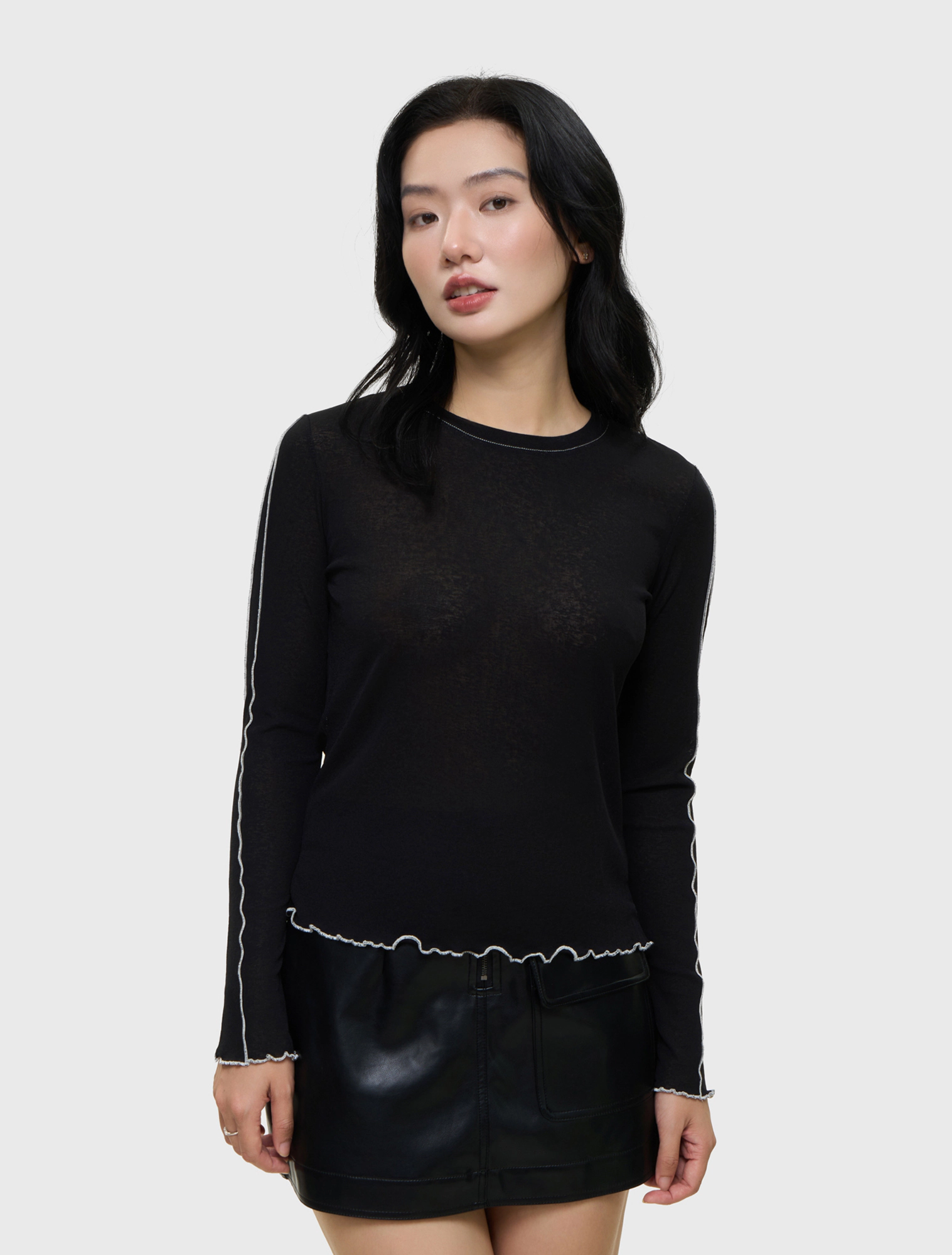 Áo phông nữ cổ tròn thiết kế cách điệu với các đường gân nổi, chất liệu vải khô thoáng, kiểu cách thời trang.